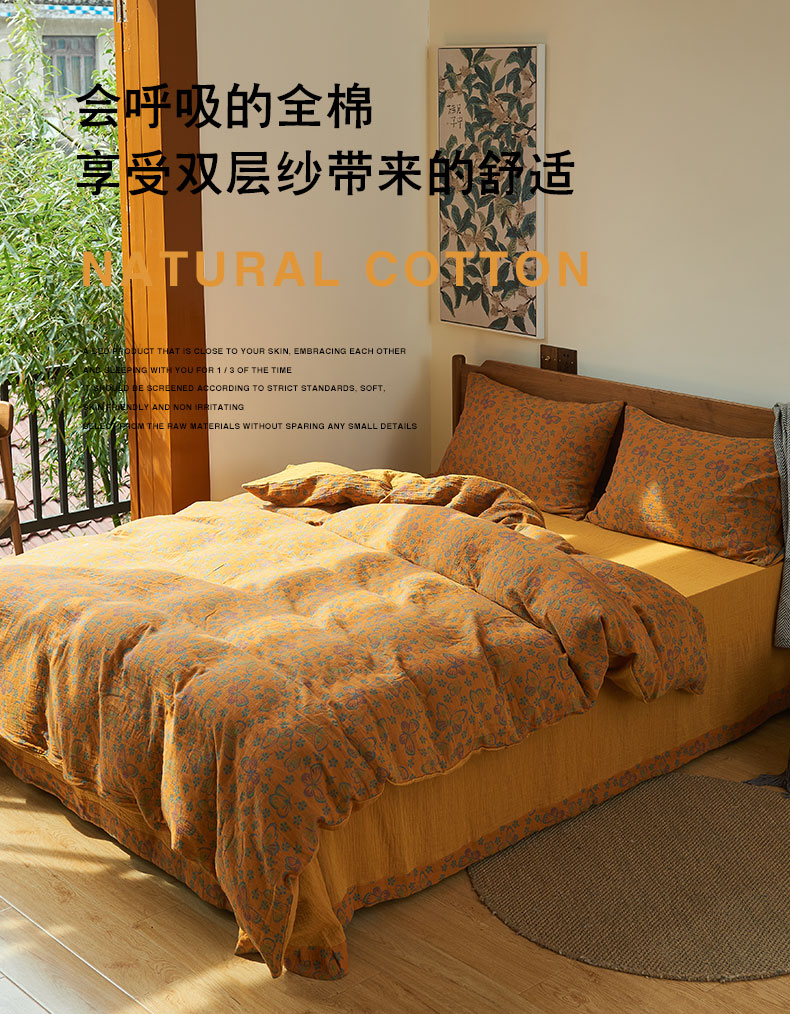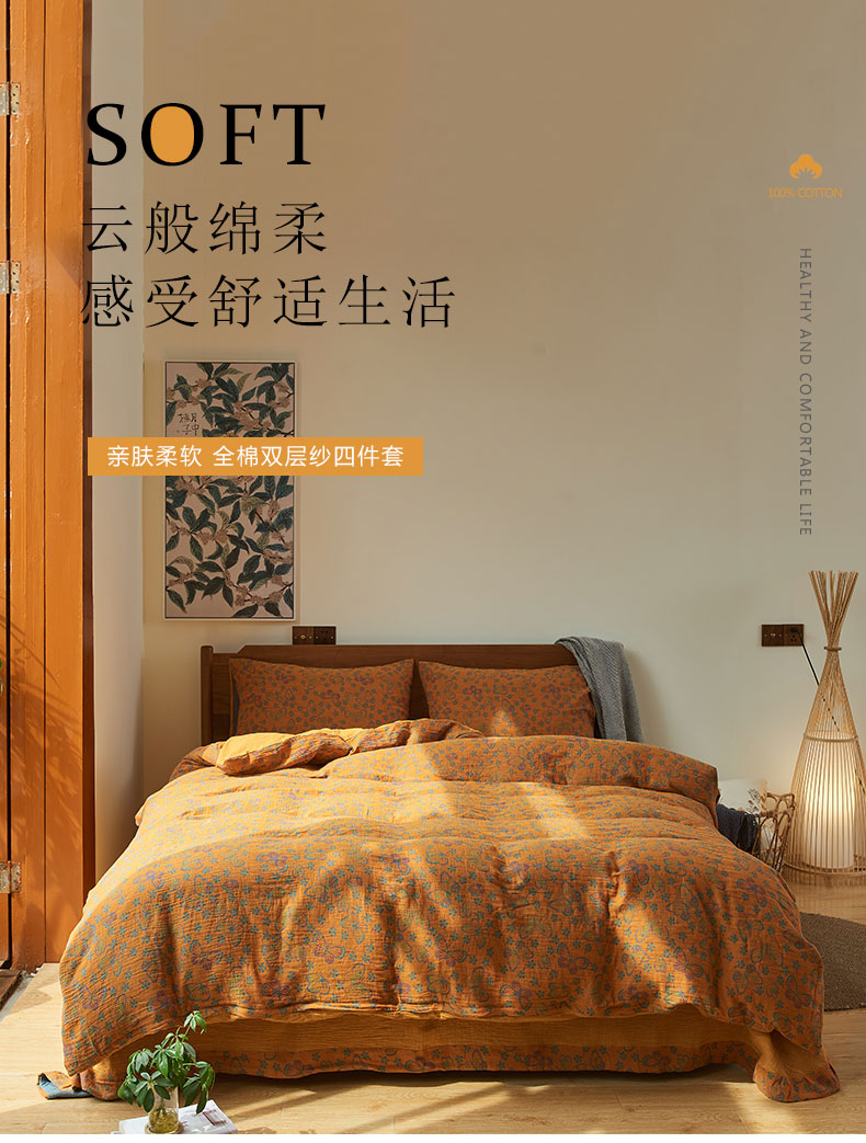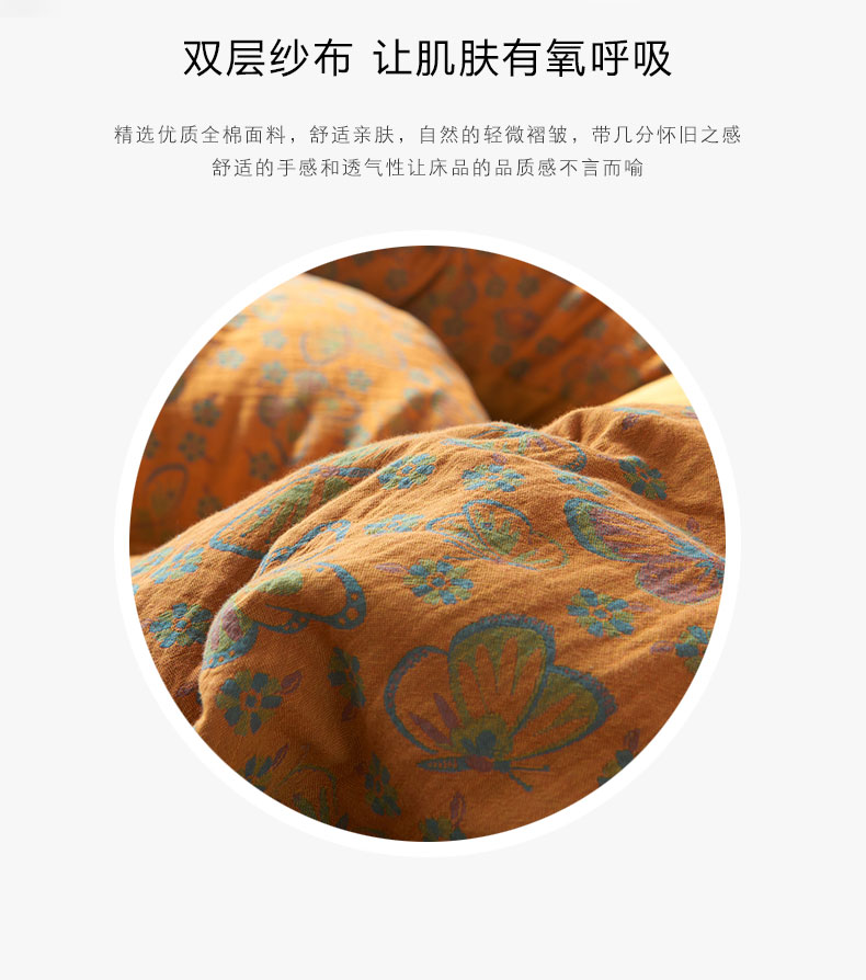 总 安莱2022新款色织提花全棉双层纱四件套-福蝶(拉链款)