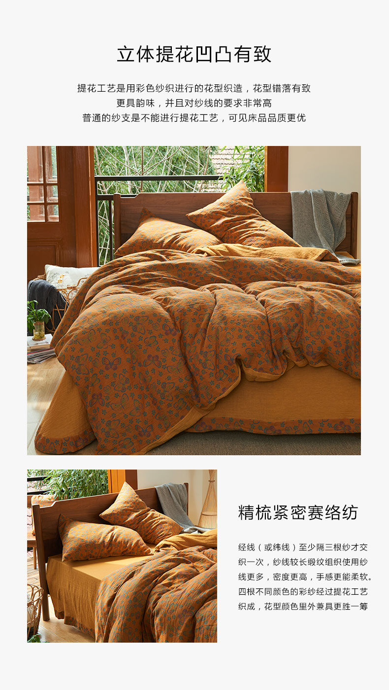 商品名称:总 安莱2022新款色织提花全棉双层纱四件套-福蝶(拉链款)