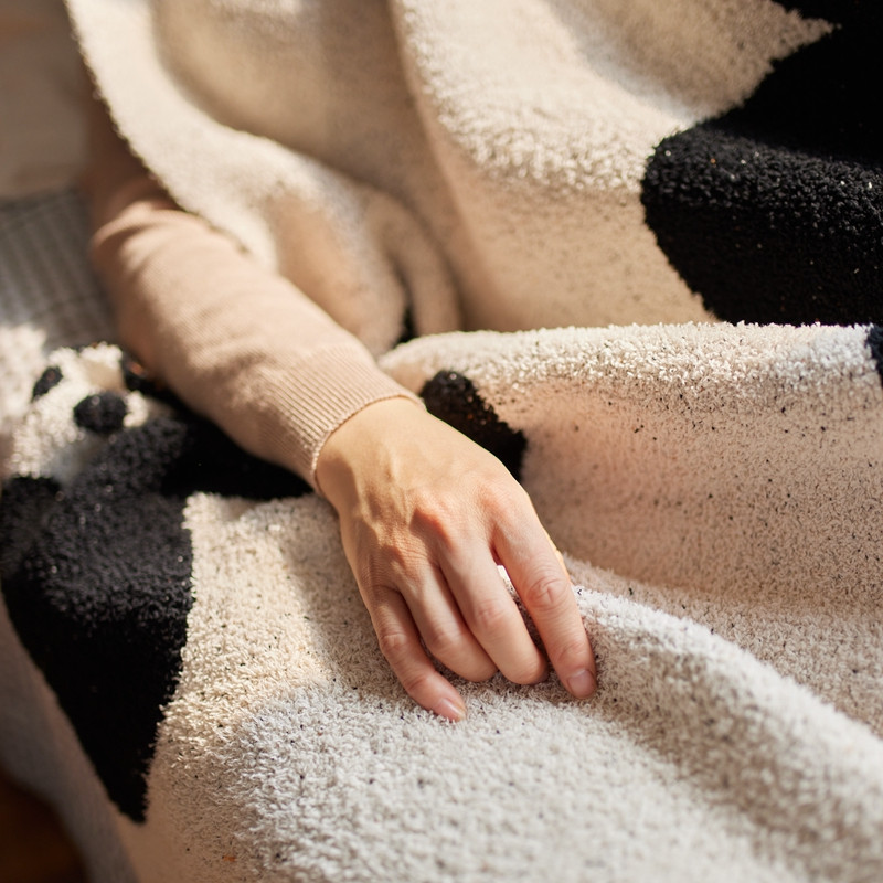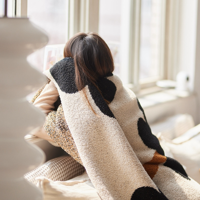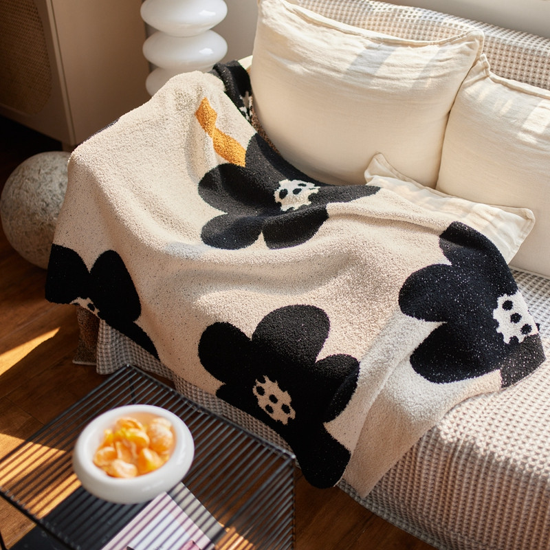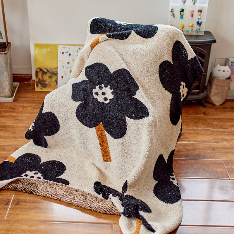 总 安莱2022新款设计师太阳花A类半边绒针织毯子午睡毯秋冬