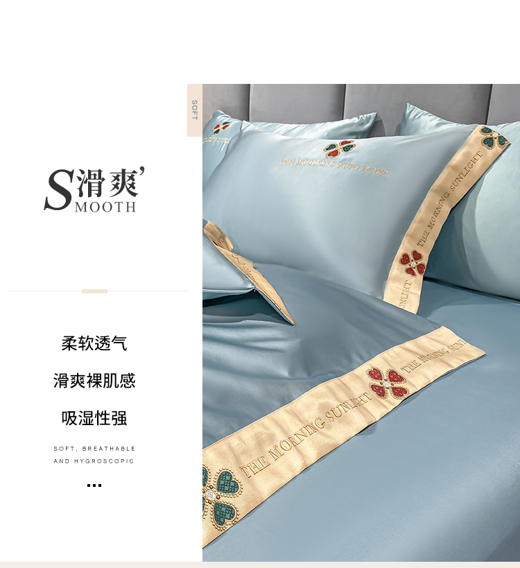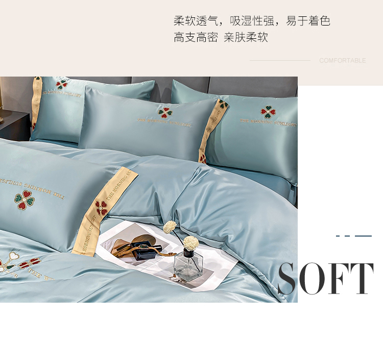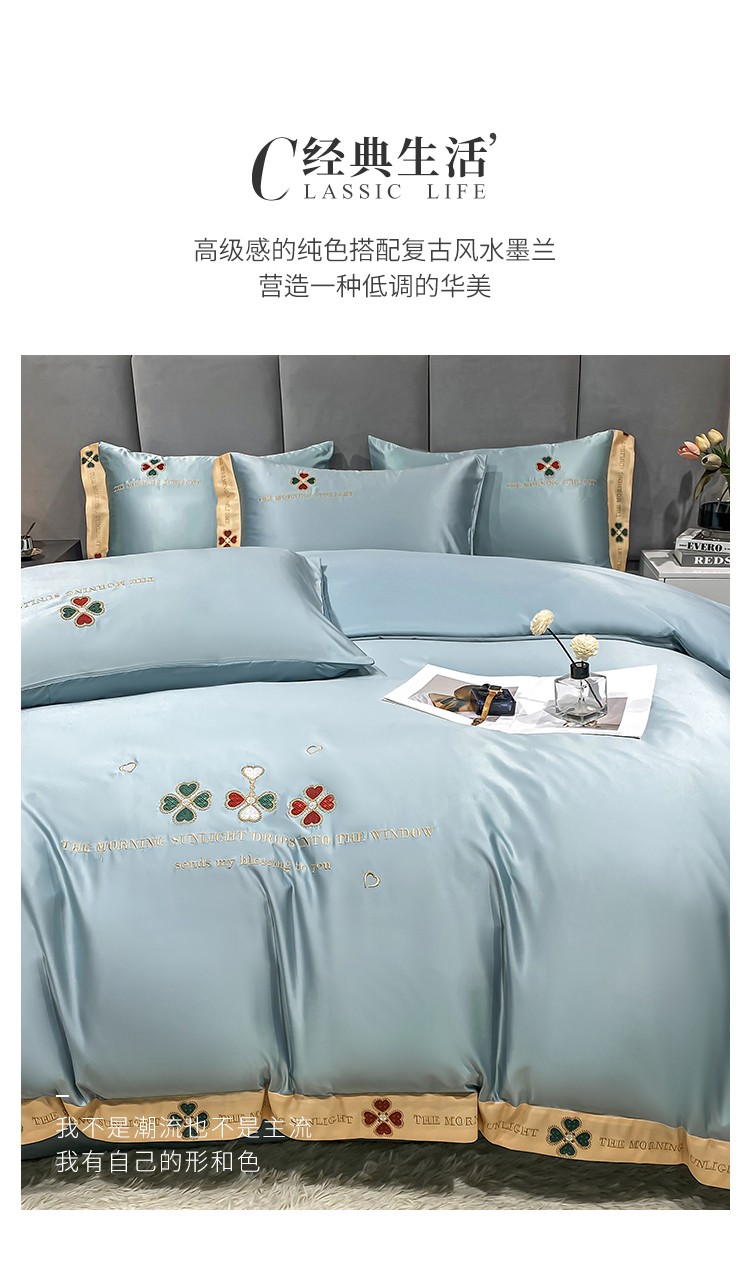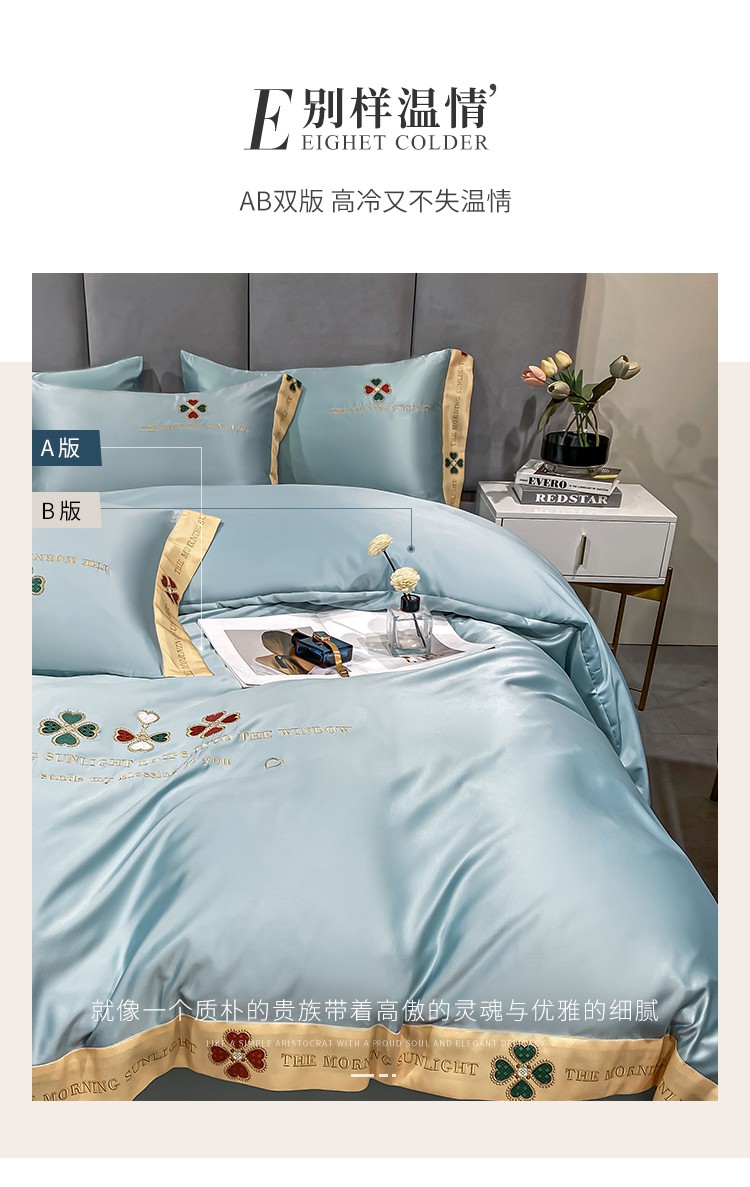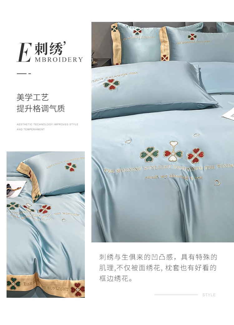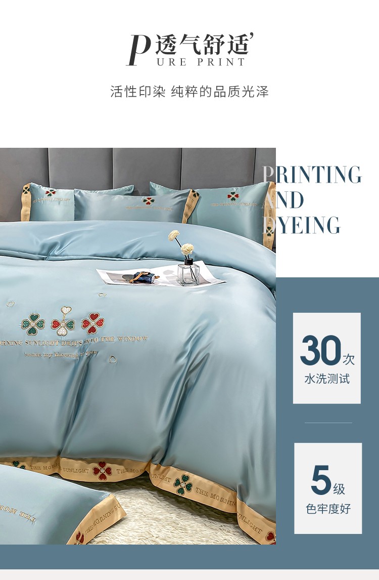 2023爆款春夏新款水洗真丝四叶草系列四件套 空蓝昼