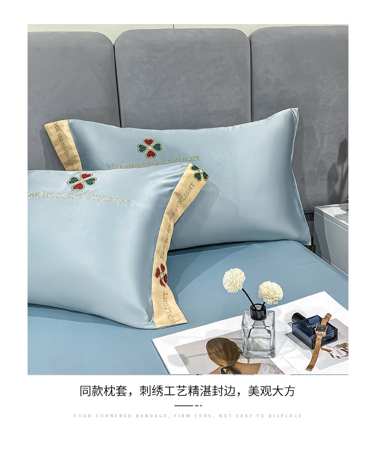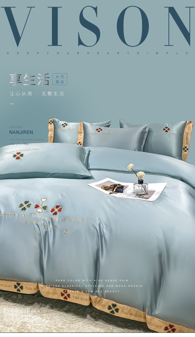 商品名称:2023爆款春夏新款水洗真丝四叶草系列四件套 空蓝昼
