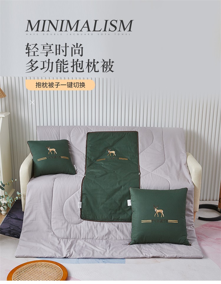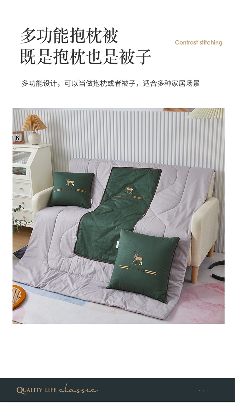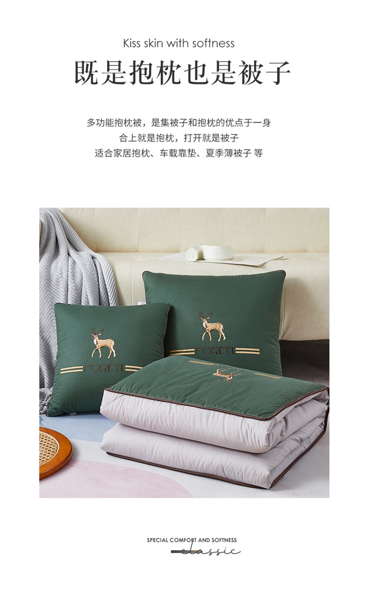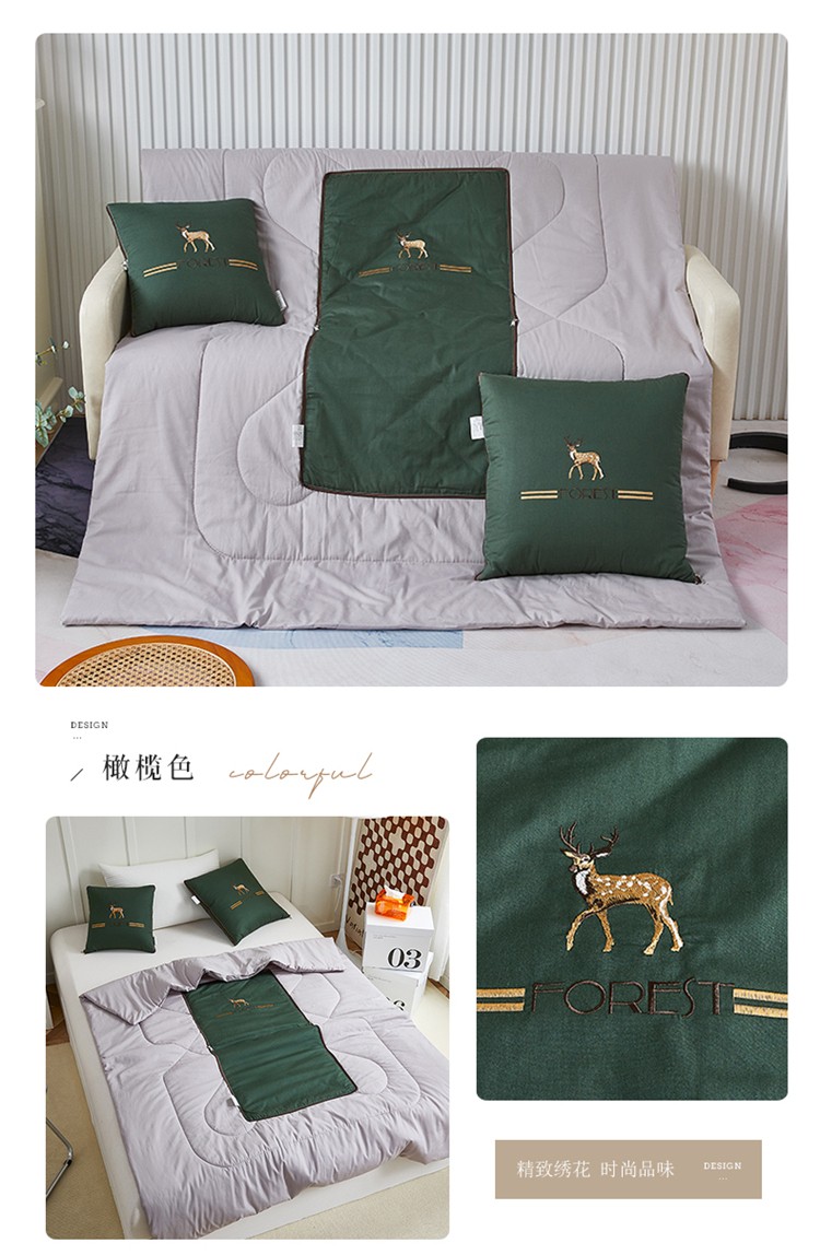 商品名称:翰轩 2022新款全棉绣花抱枕被-一鹿有你 橄榄色