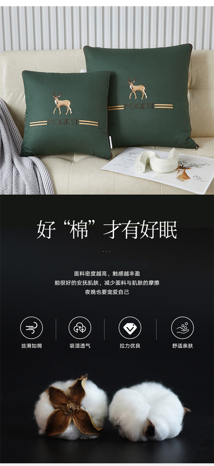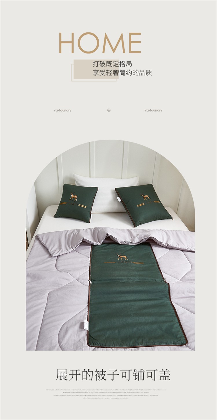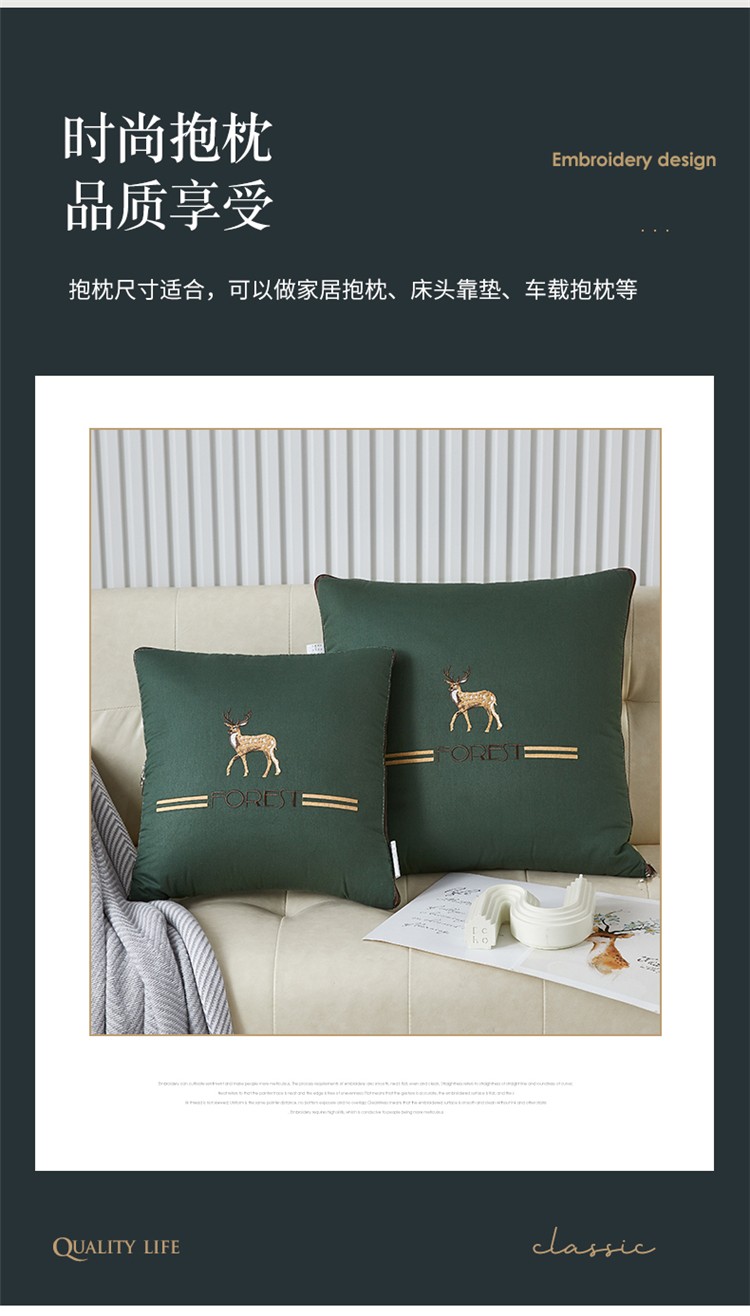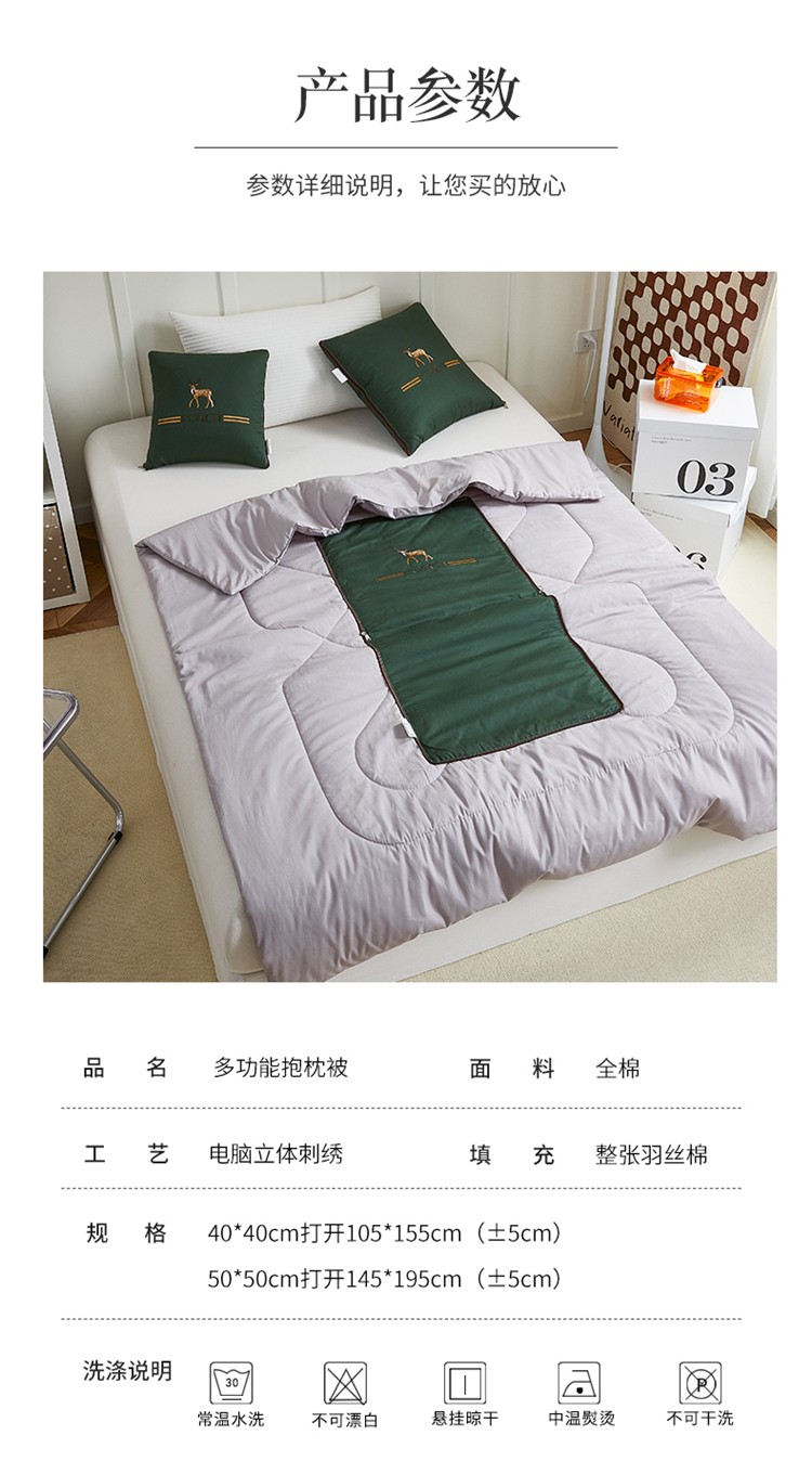 商品名称:翰轩 2022新款全棉绣花抱枕被-一鹿有你 橄榄色