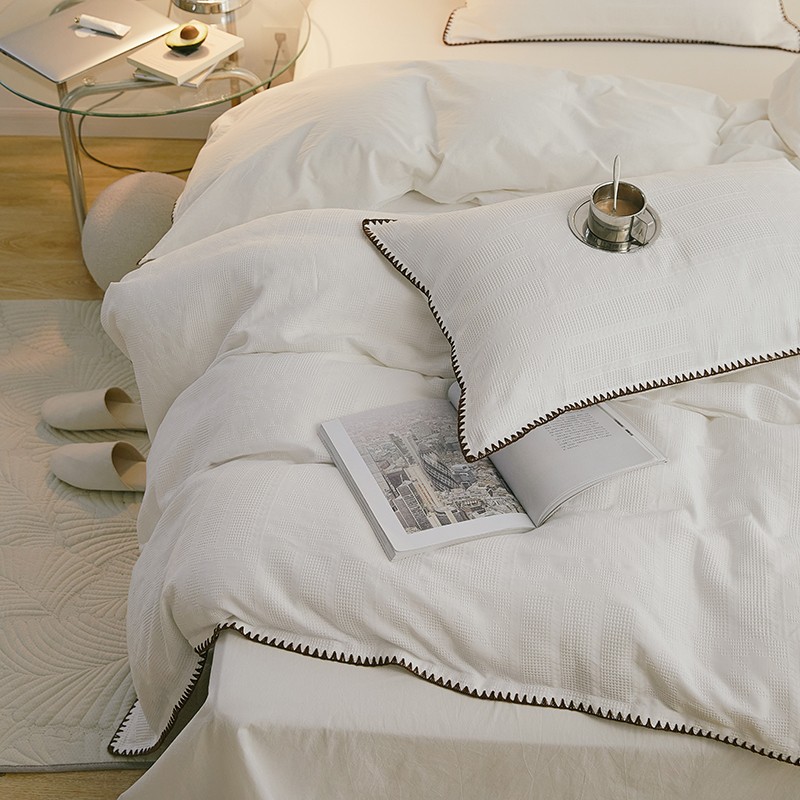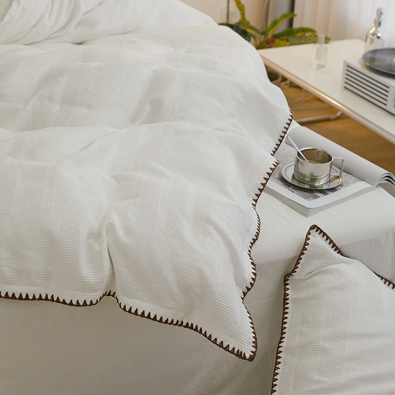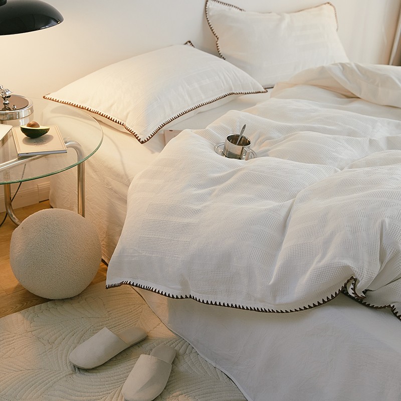 商品名称:简家居 2022新款千鸟华夫格四件套 本白