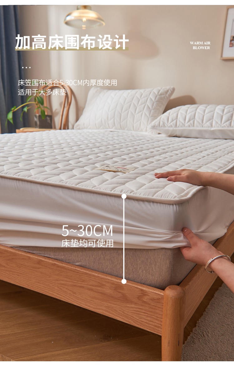 (总)卡伦 2025新款原棉抗菌大豆纤维防水夹棉床笠,白色,淡粉,果绿,卡其,水蓝,星灰