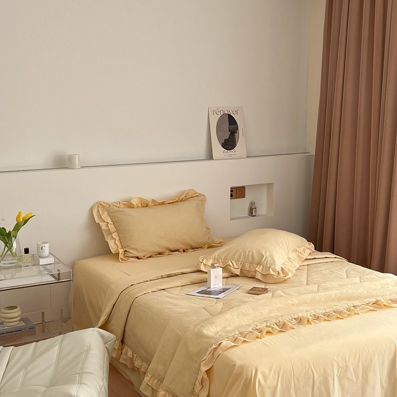昔可 2022新款60支水洗棉华夫格夏被 山茶嫩黄