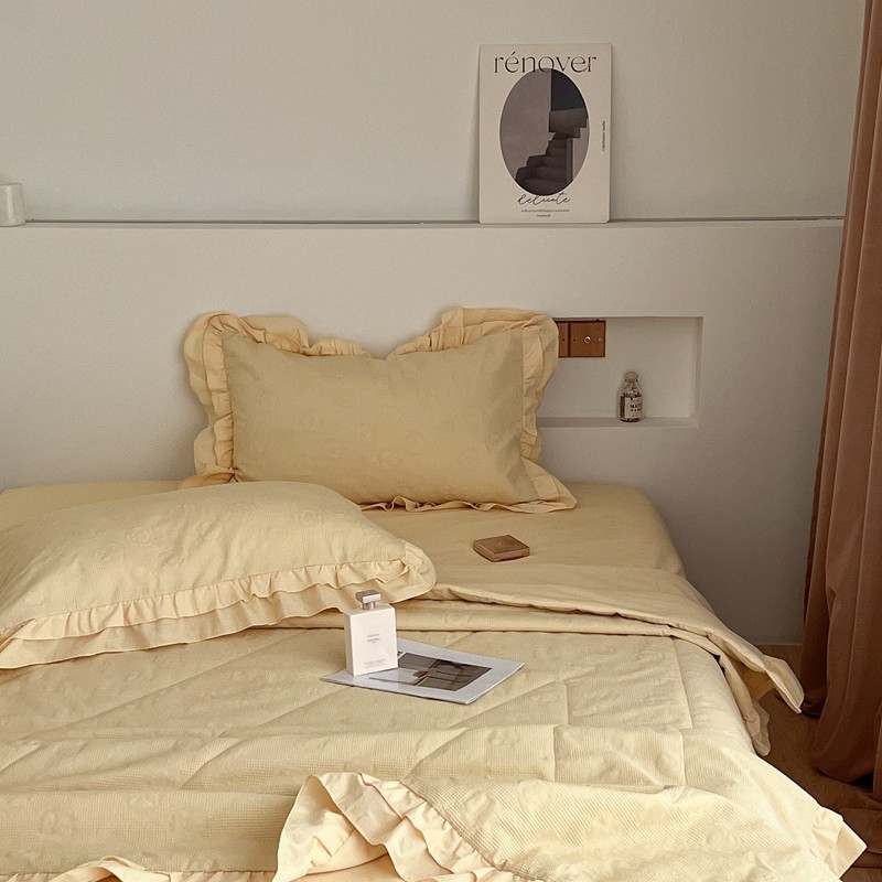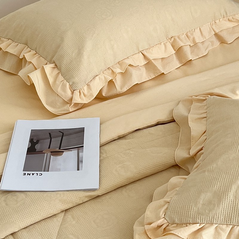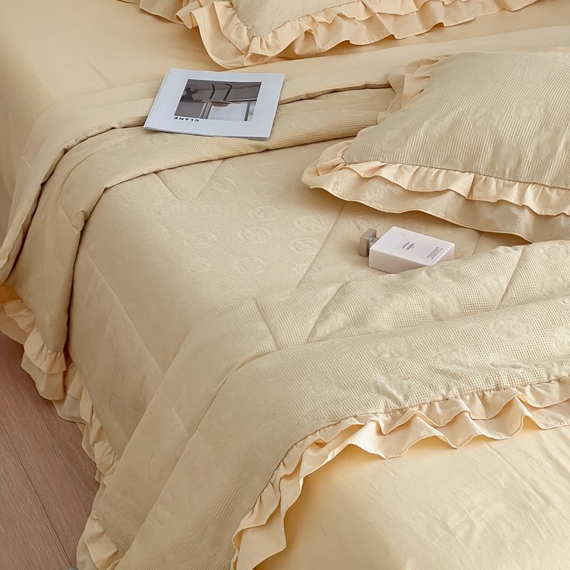 商品名称:昔可 2022新款60支水洗棉华夫格夏被 山茶嫩黄