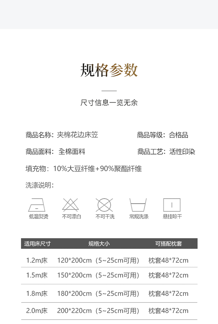 180x220cm夹棉花边单床笠 | ¥110.00 |
