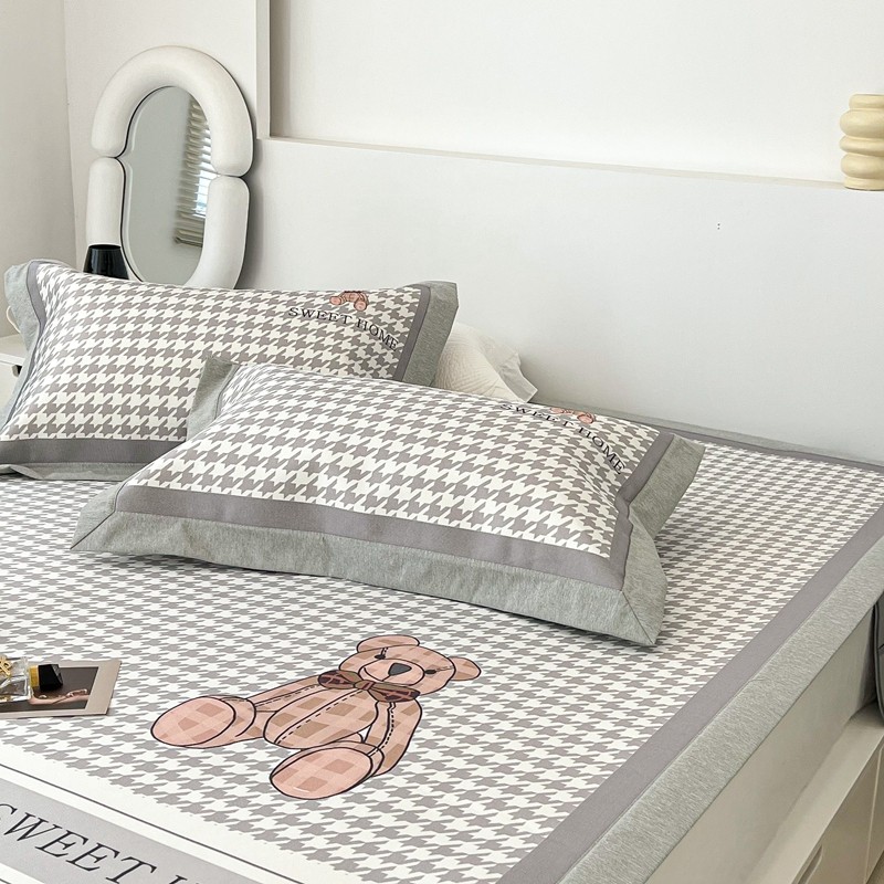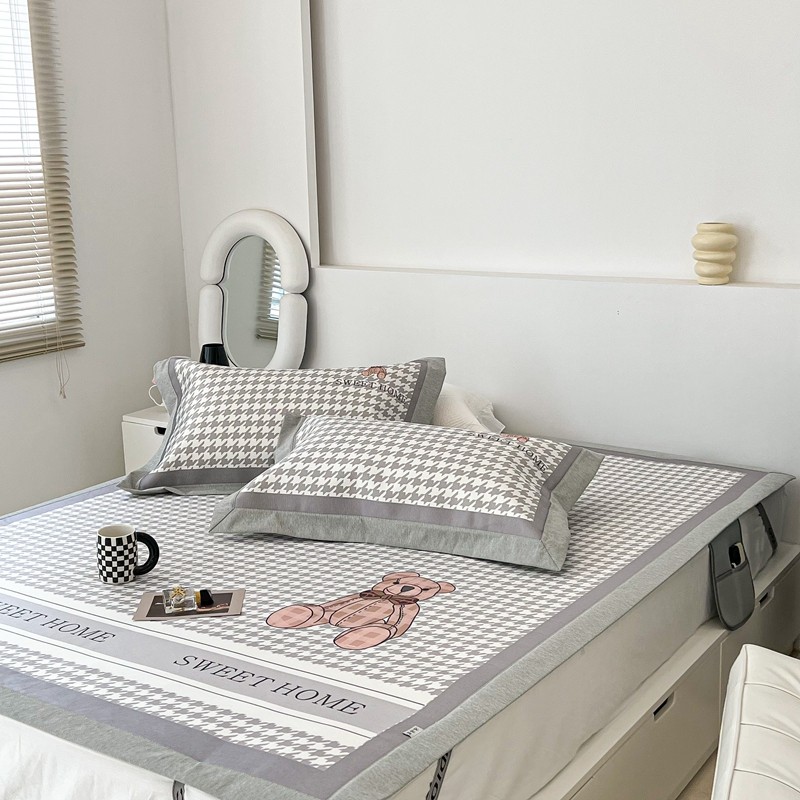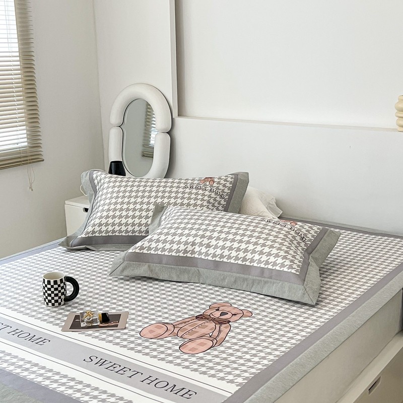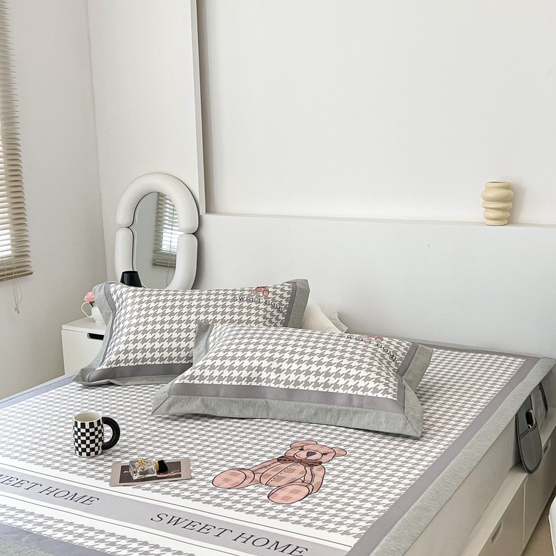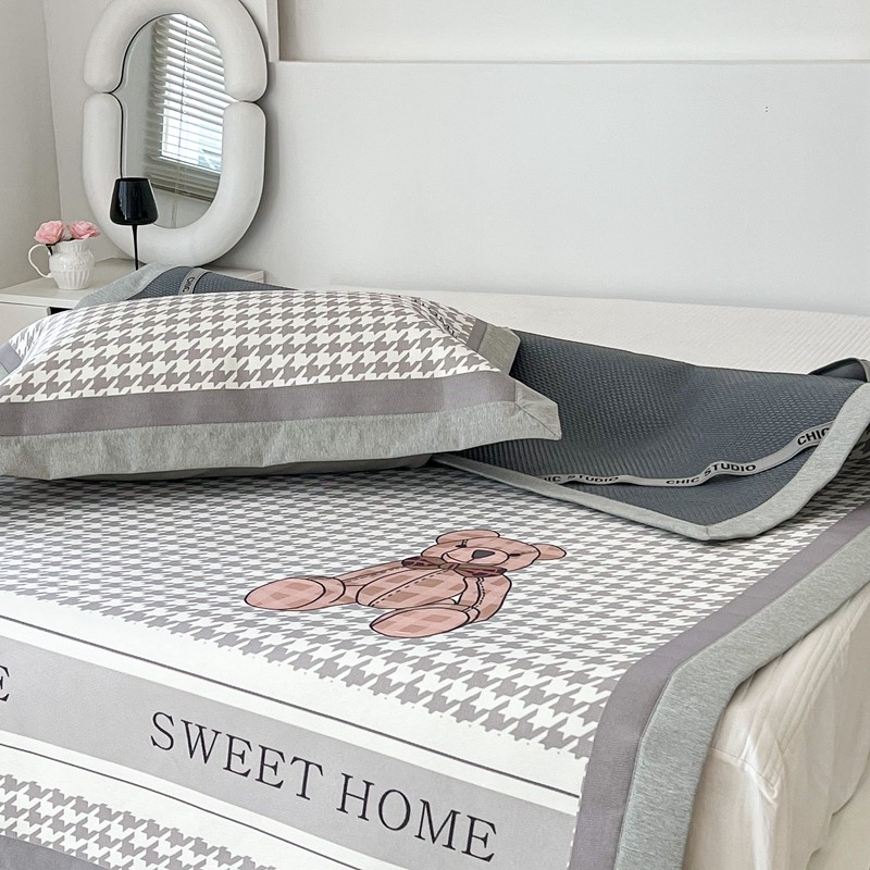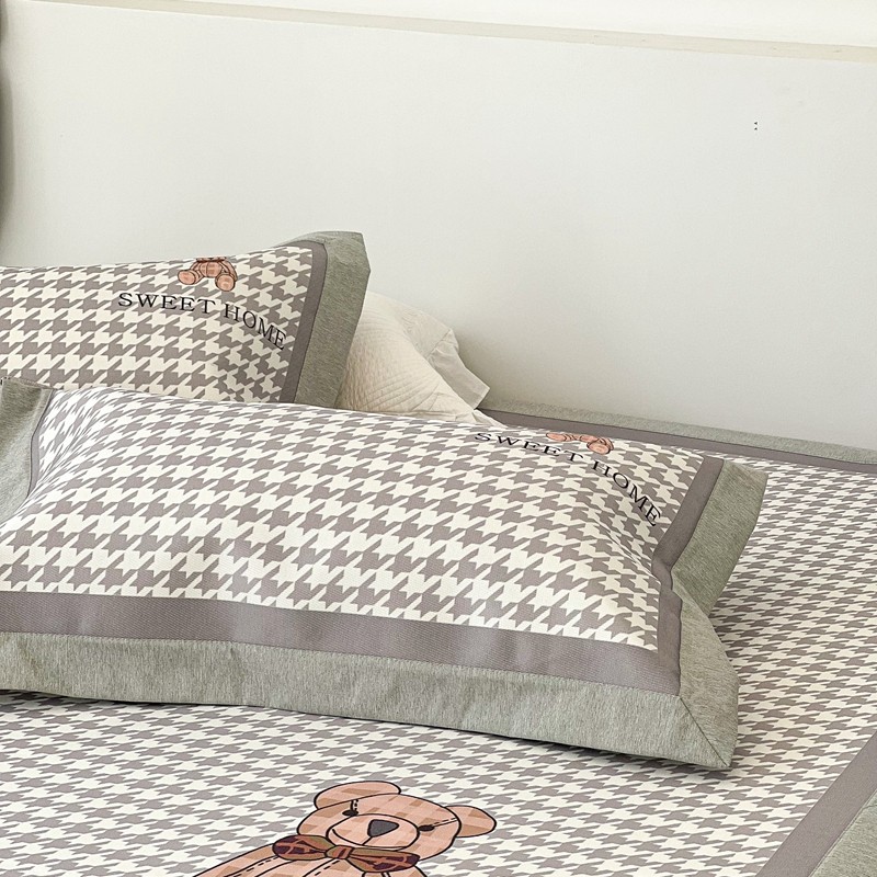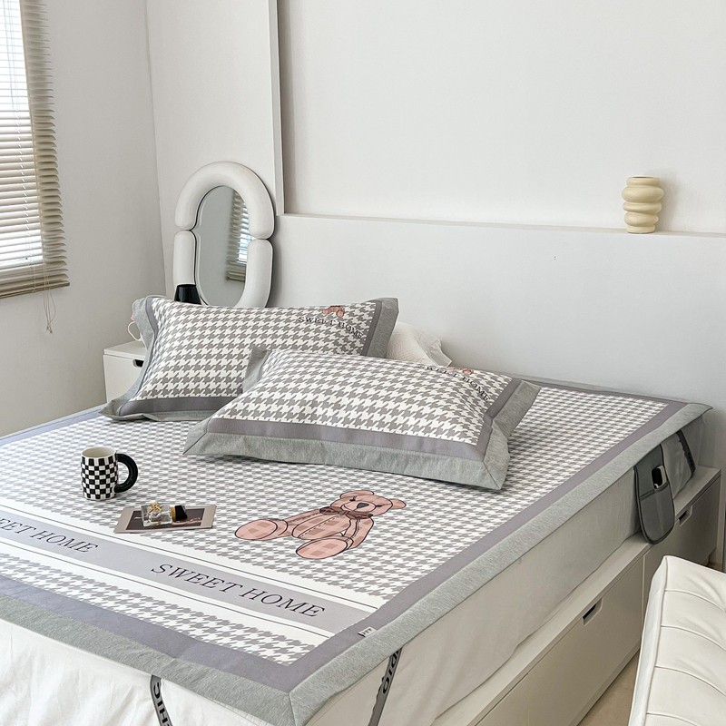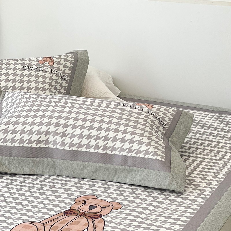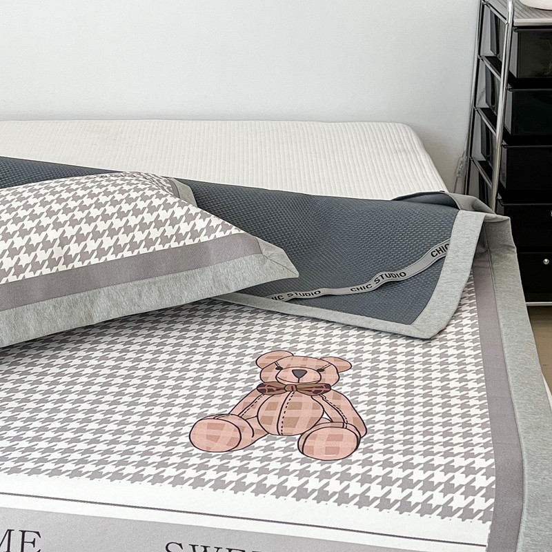 昔可 2022新款大版数码水洗冰沐丝凉席 酷酷千鸟格纹熊