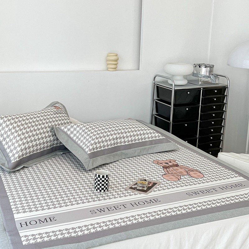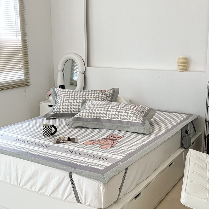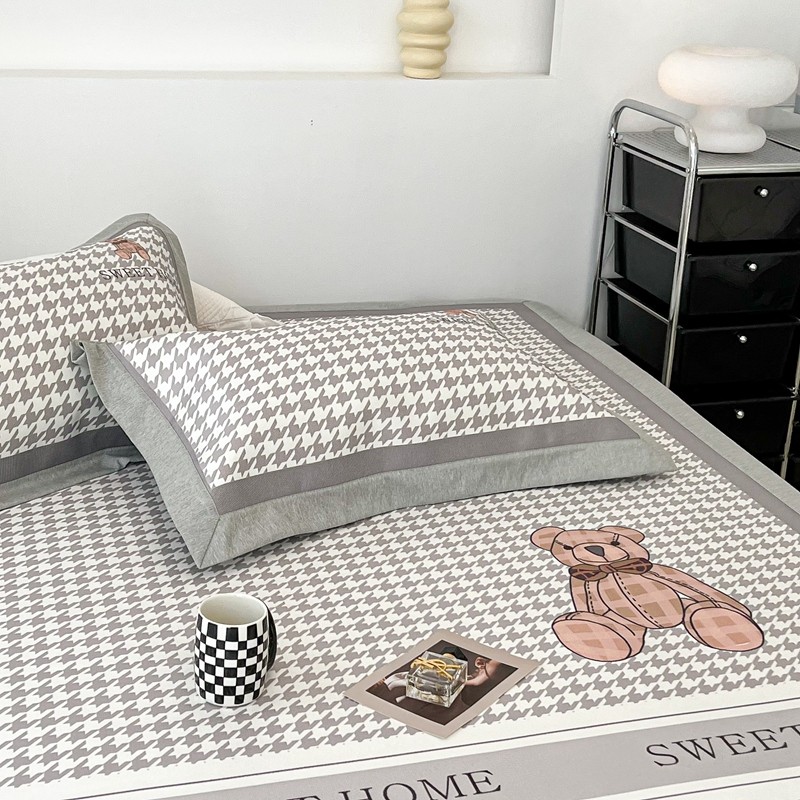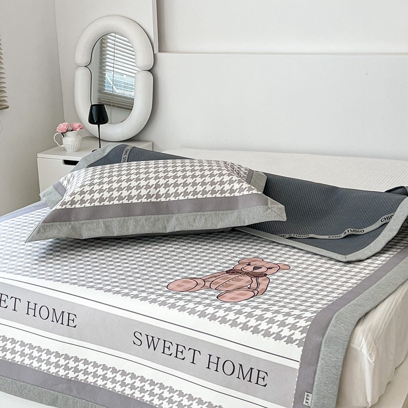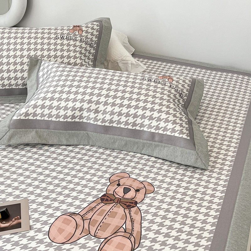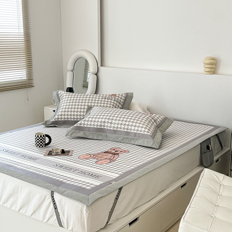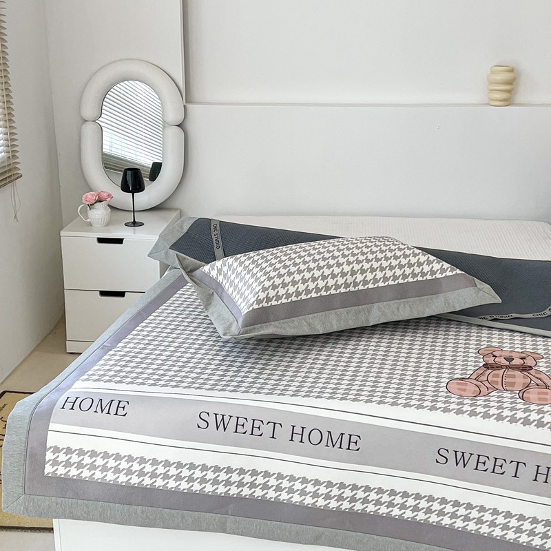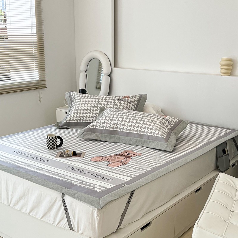 昔可 2022新款大版数码水洗冰沐丝凉席 酷酷千鸟格纹熊
