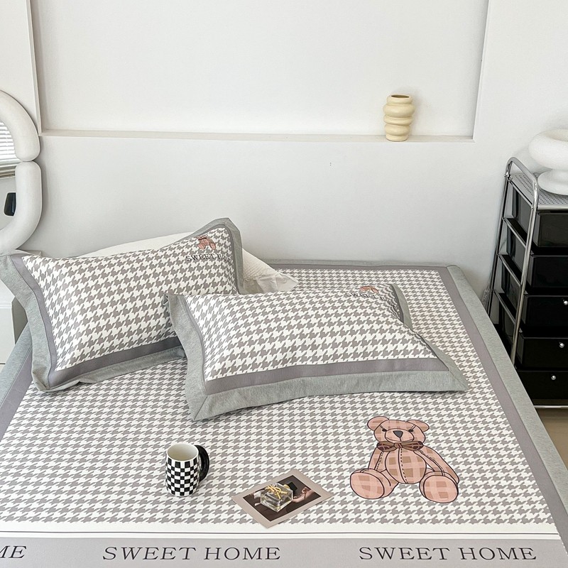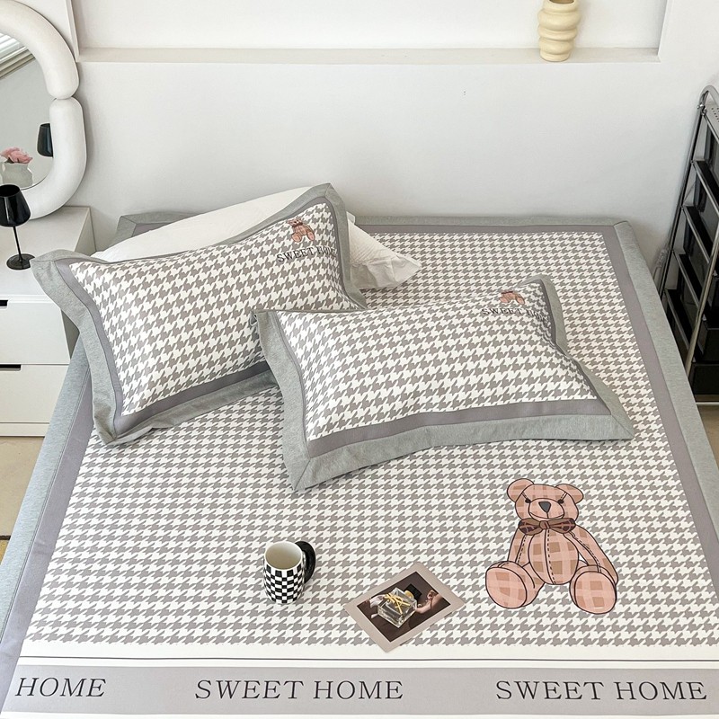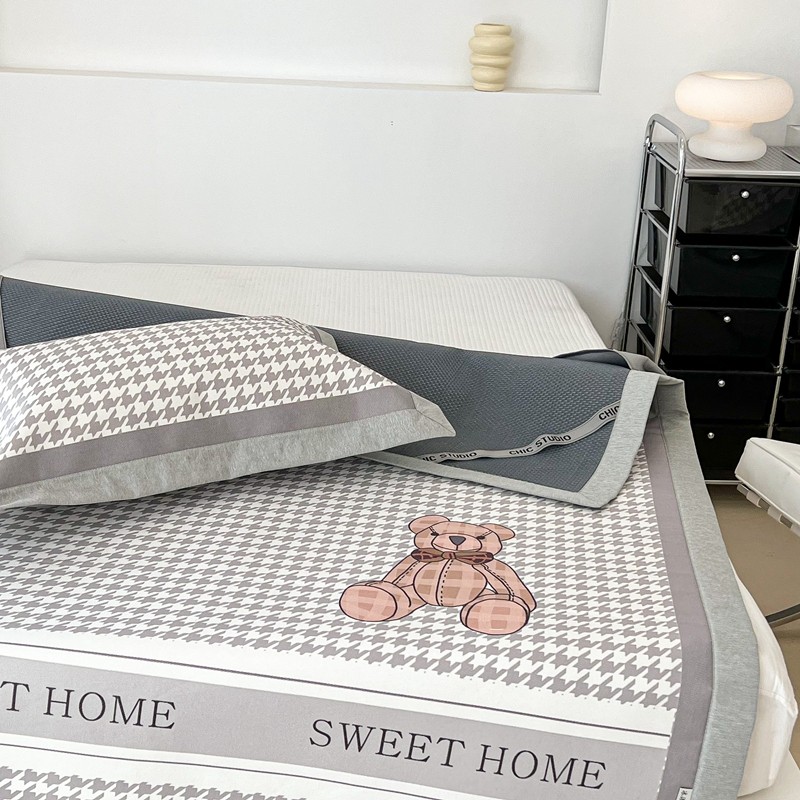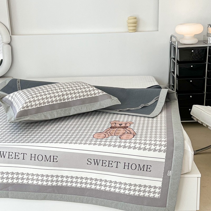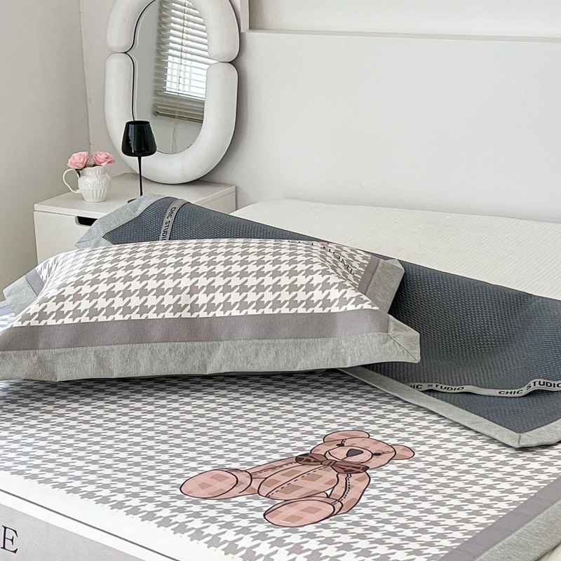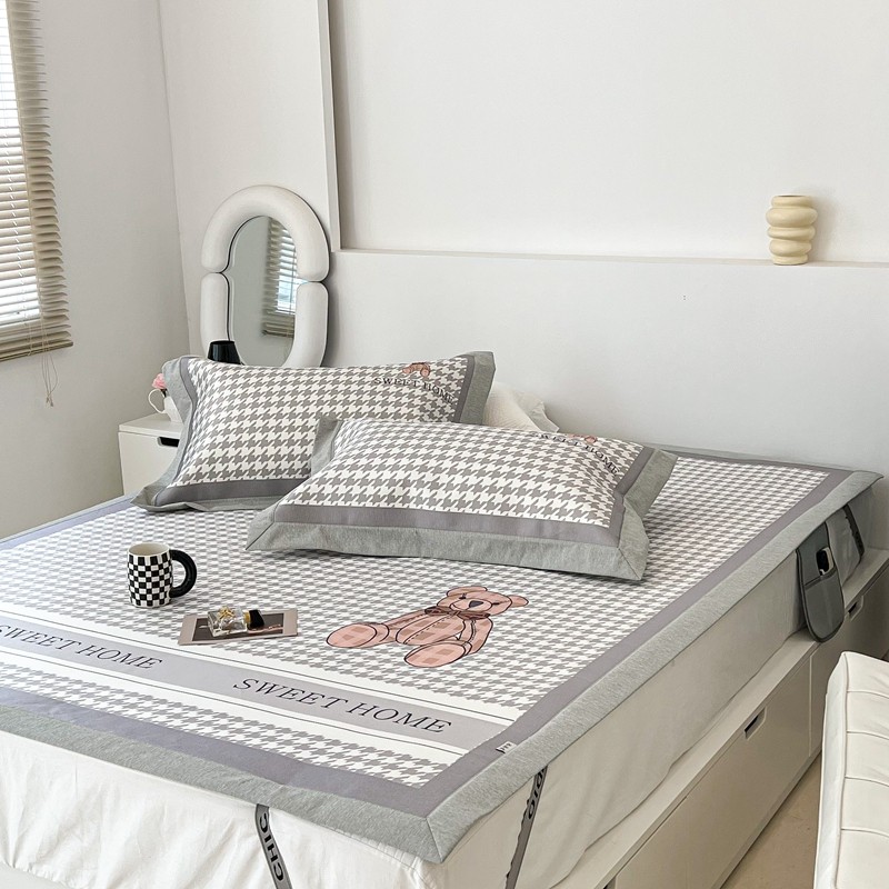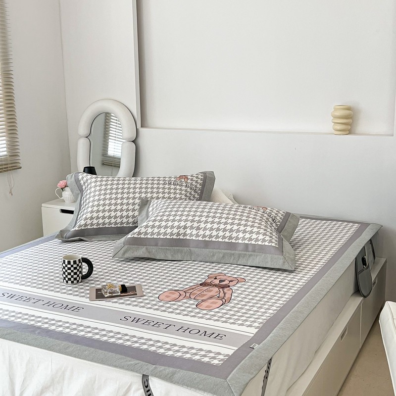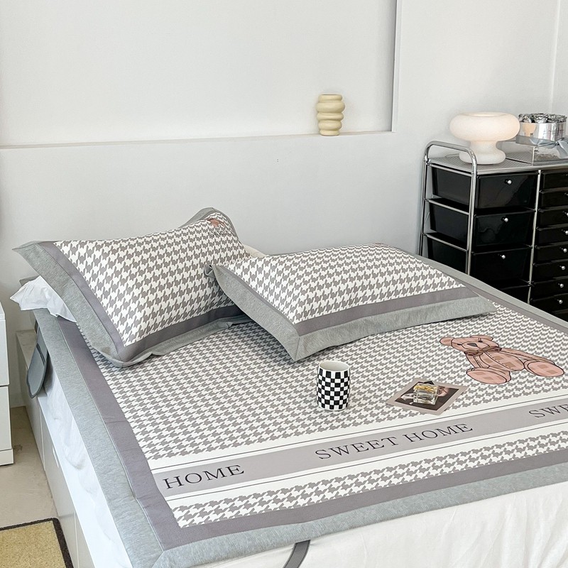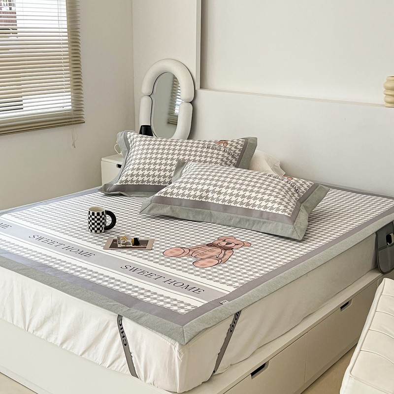 昔可 2022新款大版数码水洗冰沐丝凉席 酷酷千鸟格纹熊