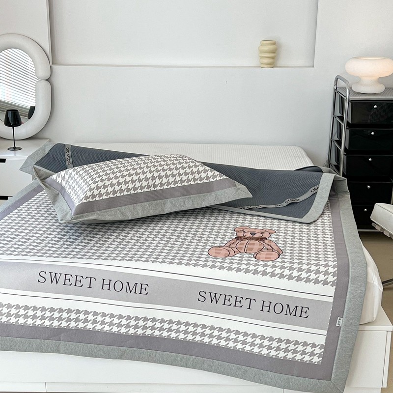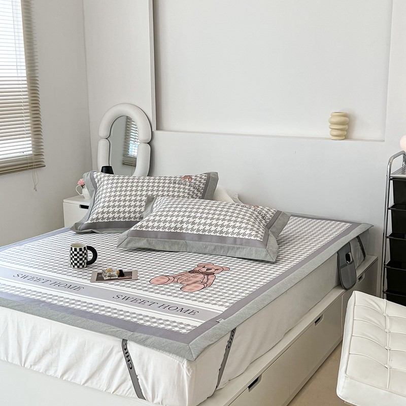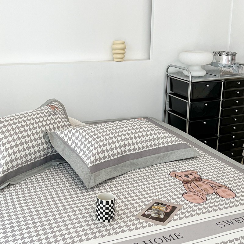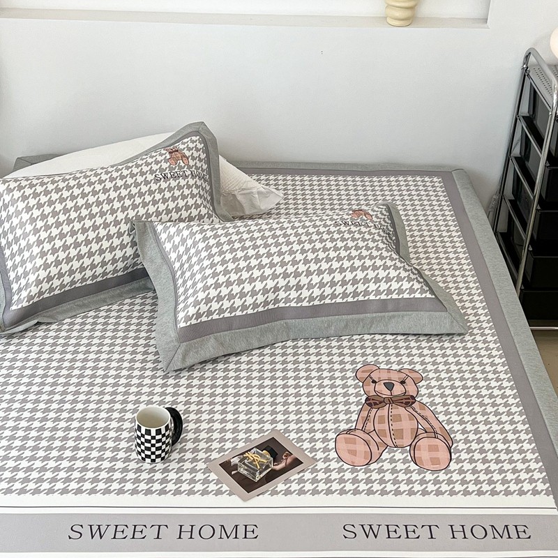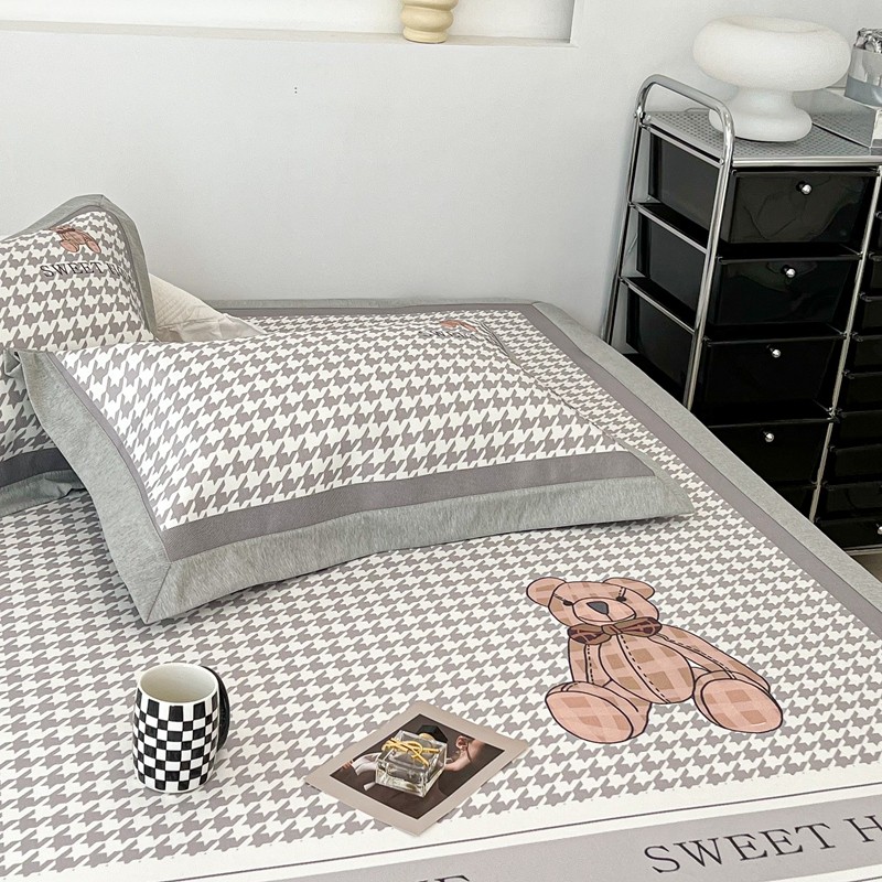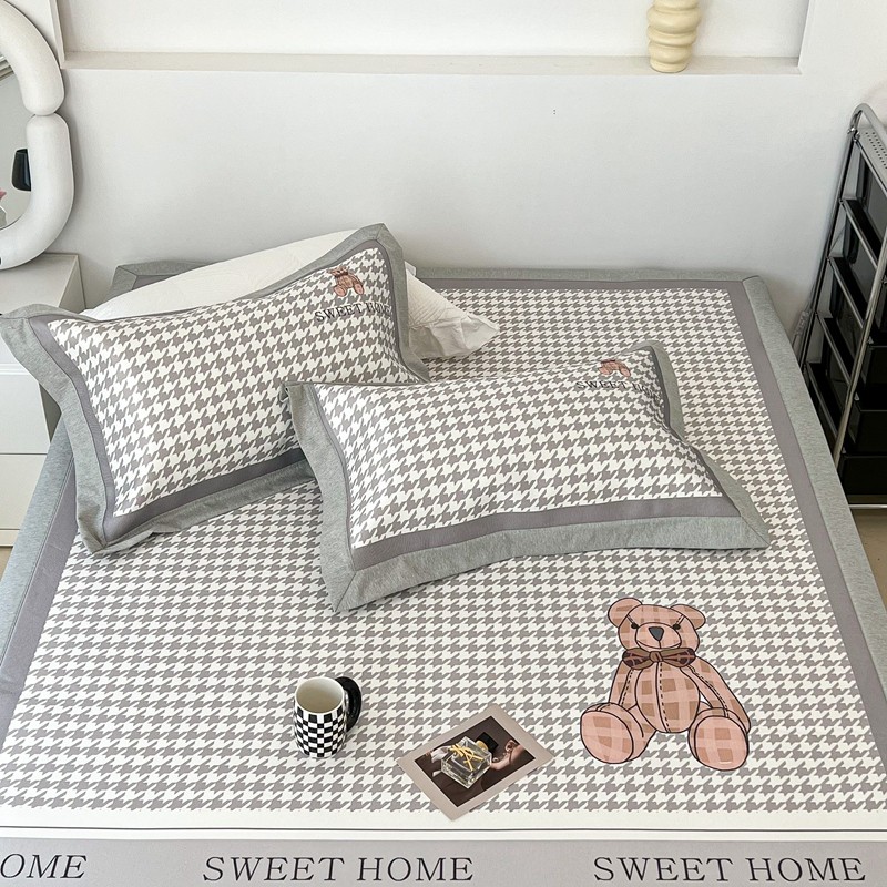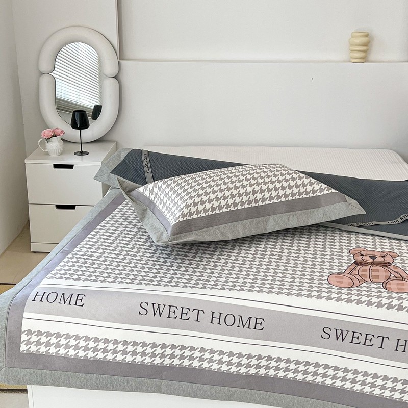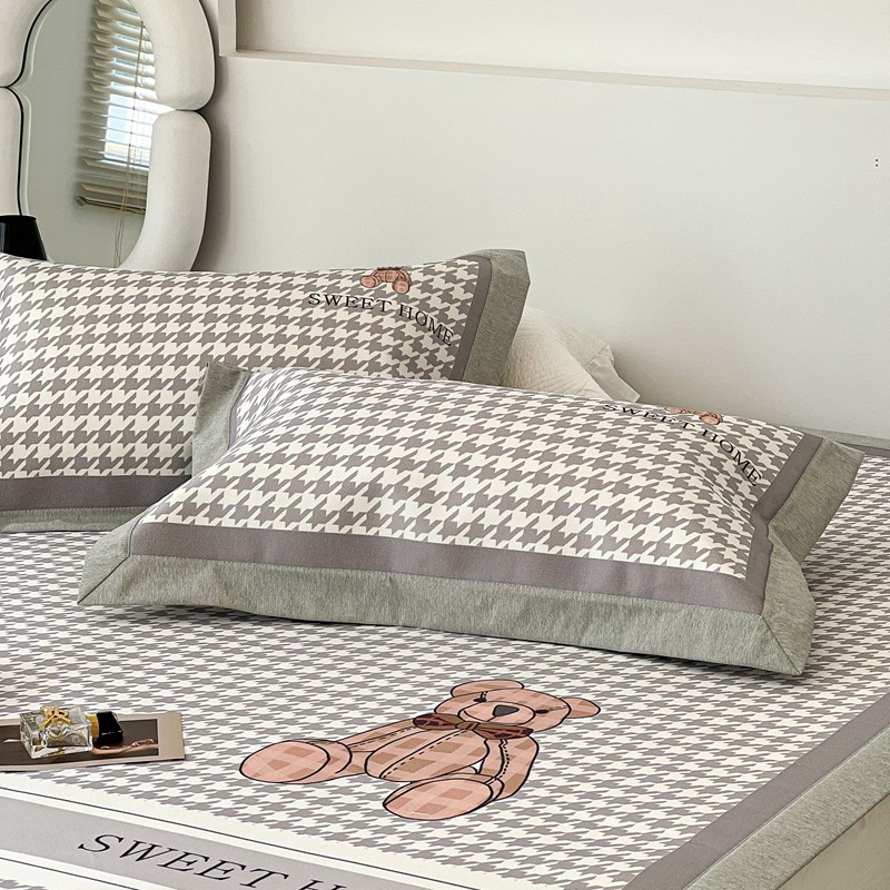 昔可 2022新款大版数码水洗冰沐丝凉席 酷酷千鸟格纹熊