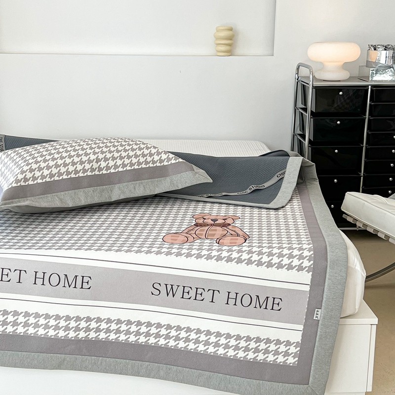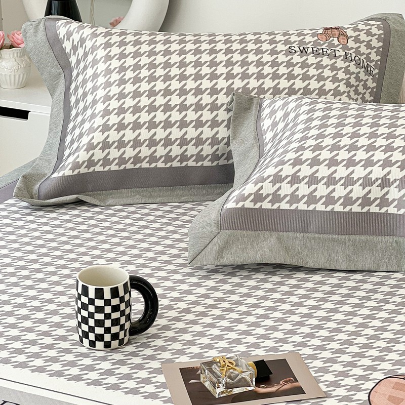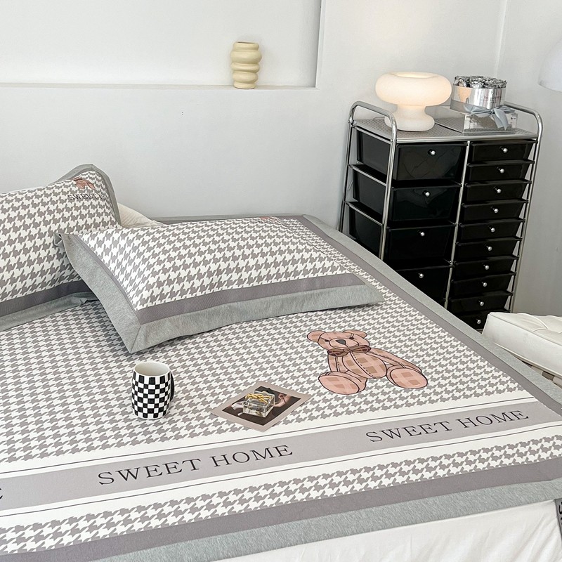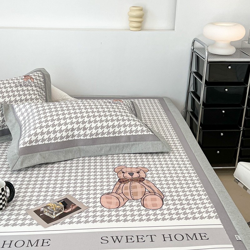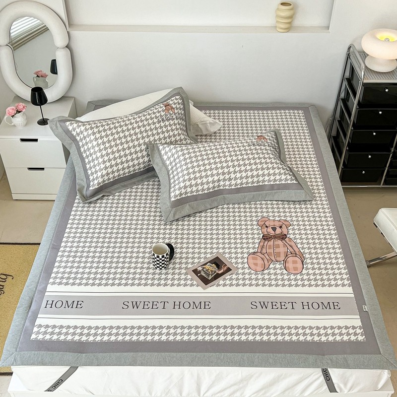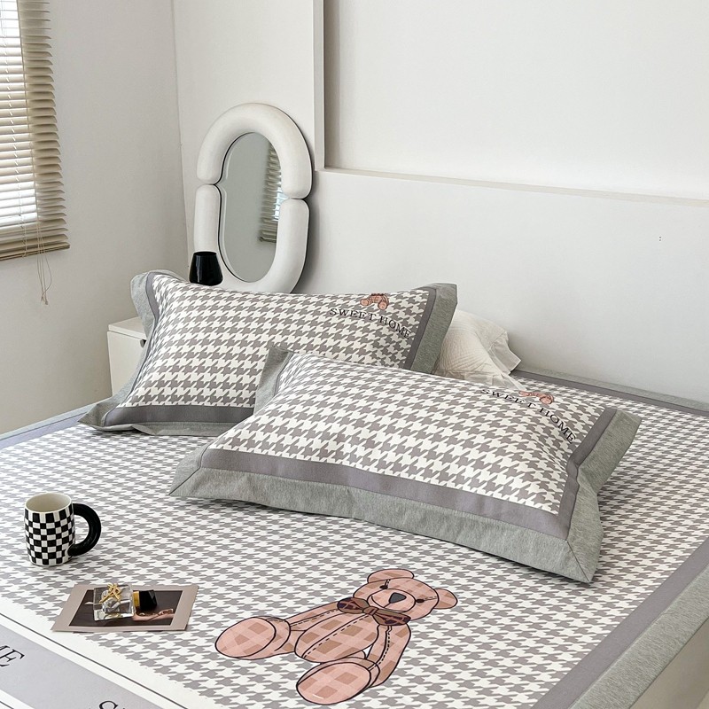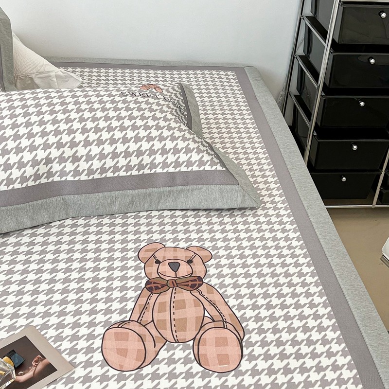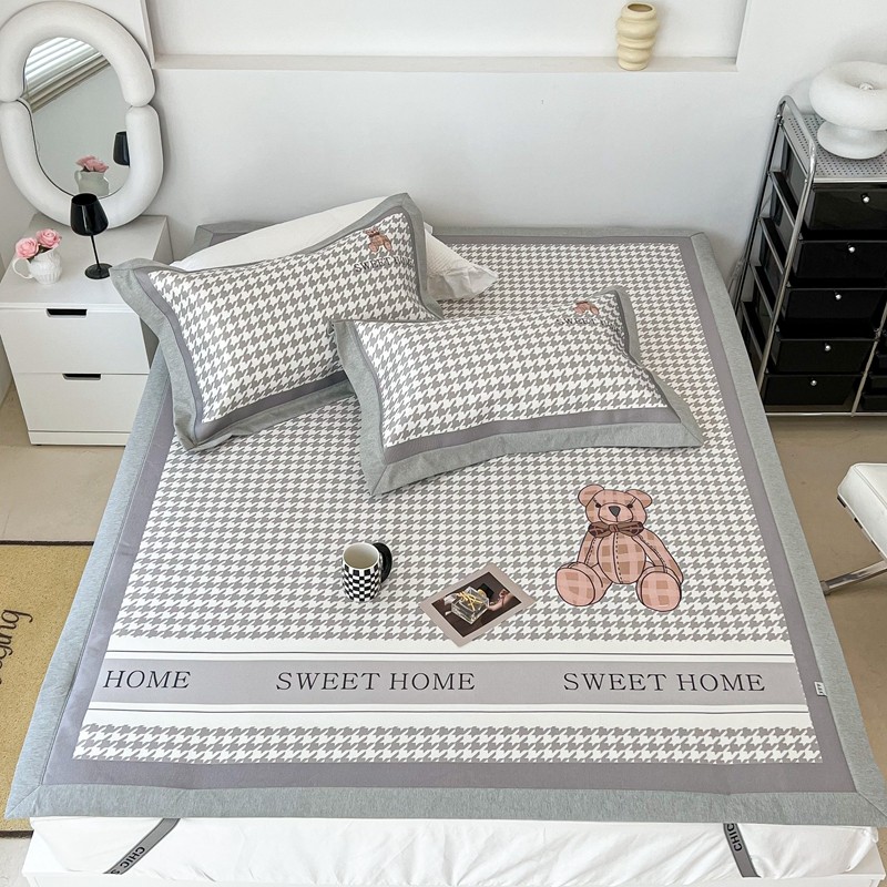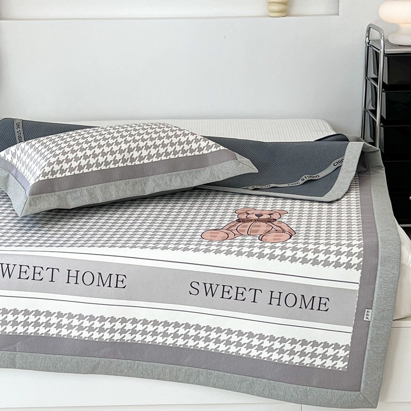 昔可 2022新款大版数码水洗冰沐丝凉席 酷酷千鸟格纹熊