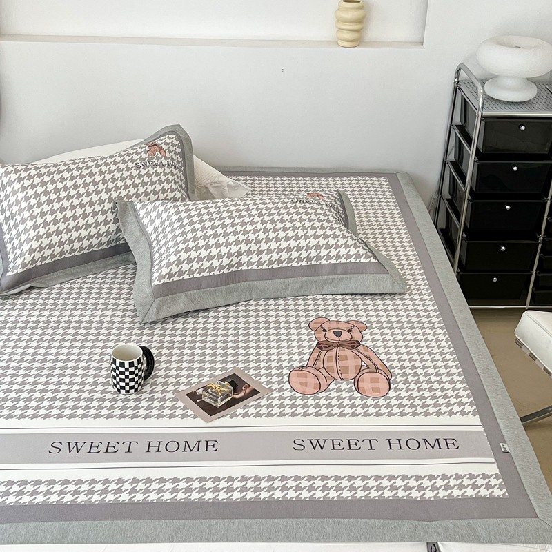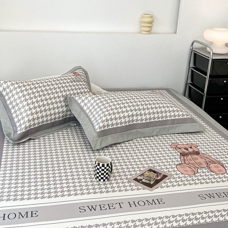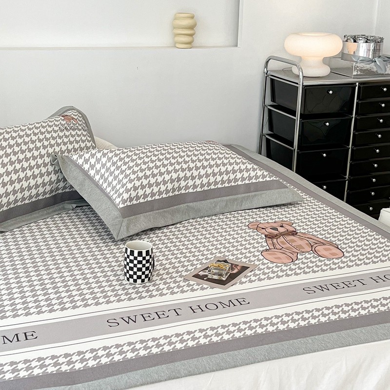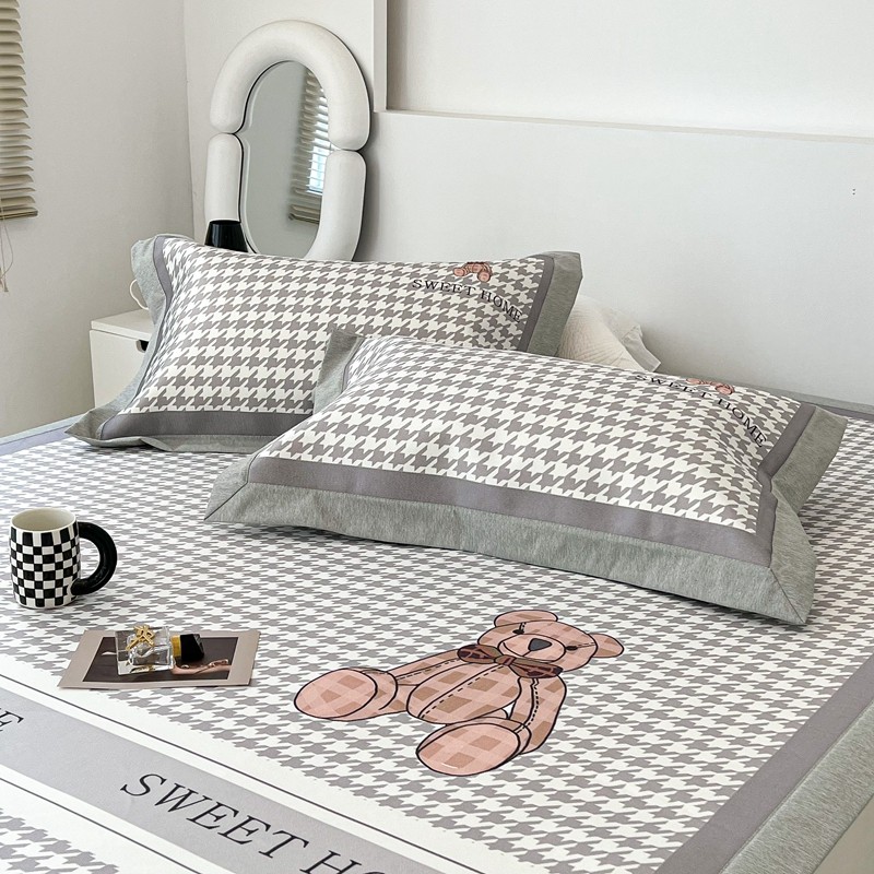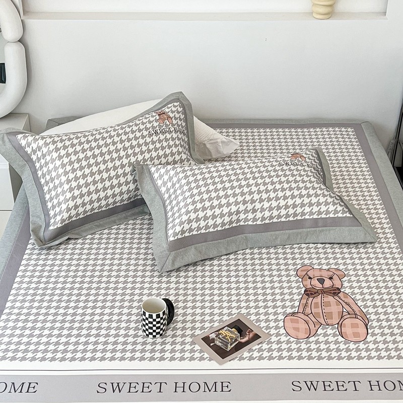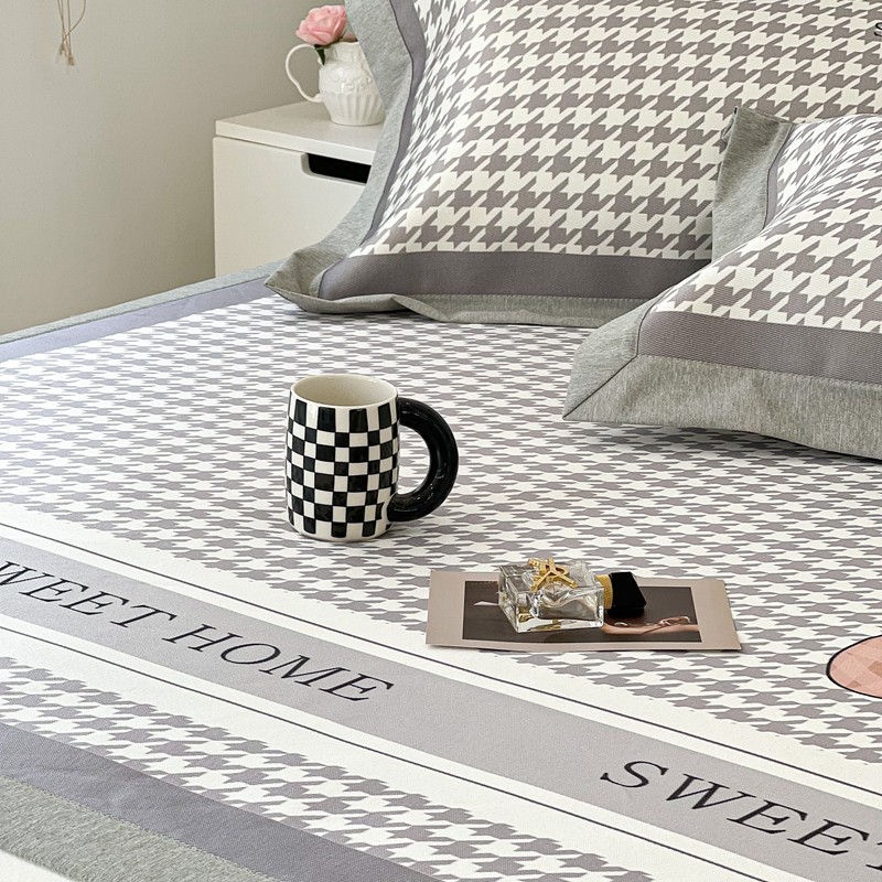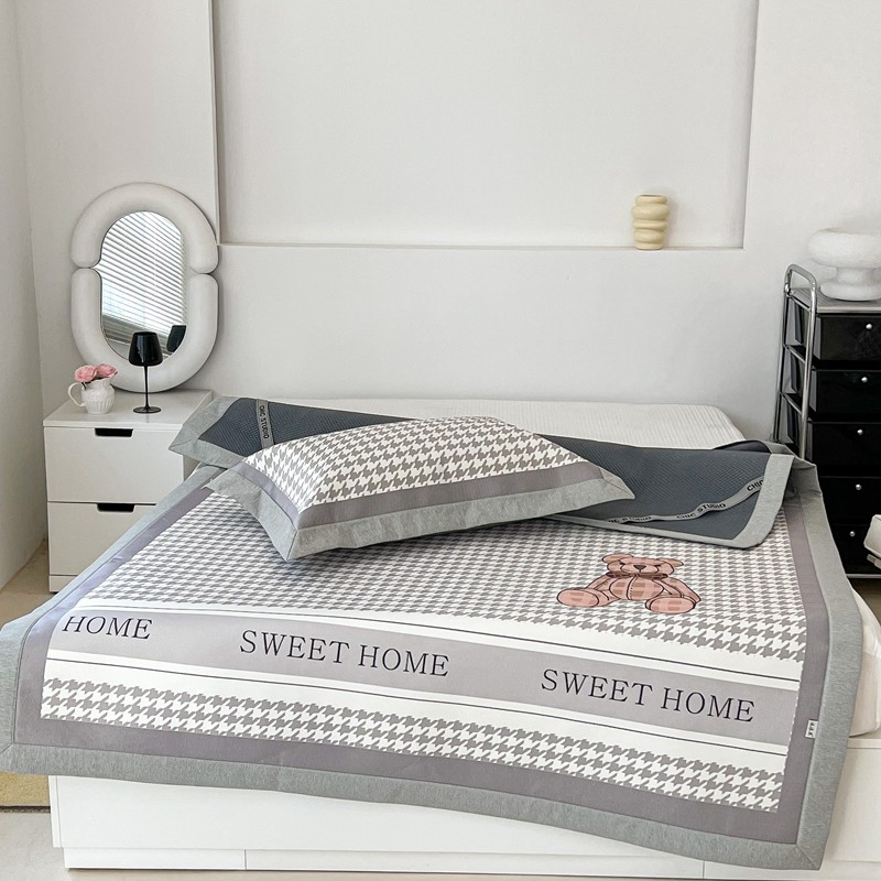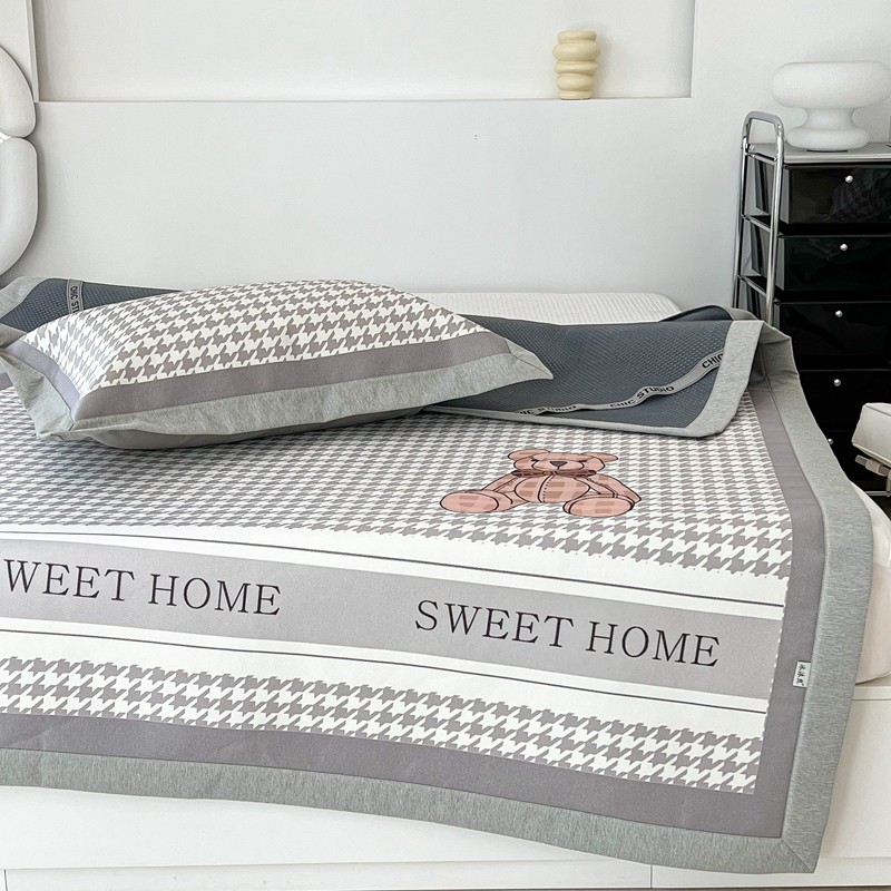 昔可 2022新款大版数码水洗冰沐丝凉席 酷酷千鸟格纹熊