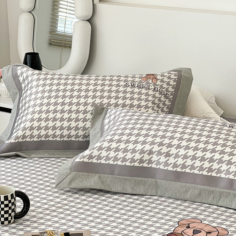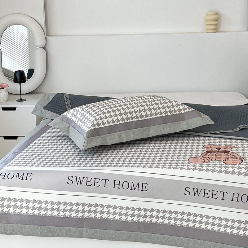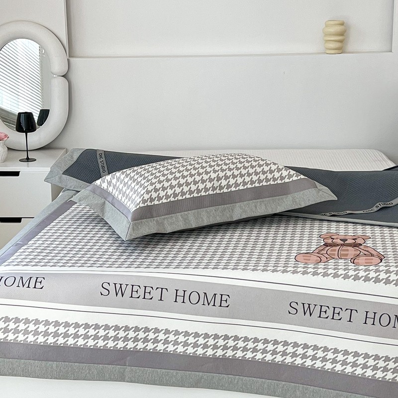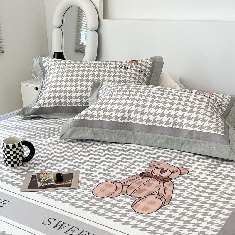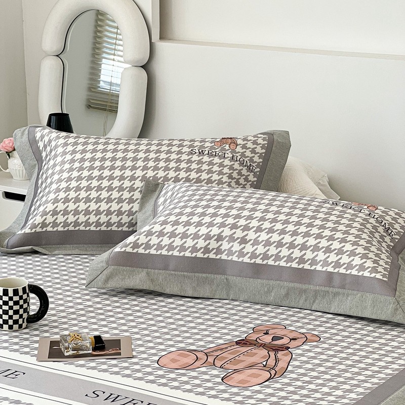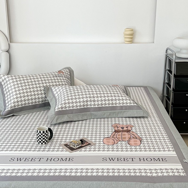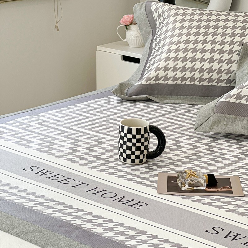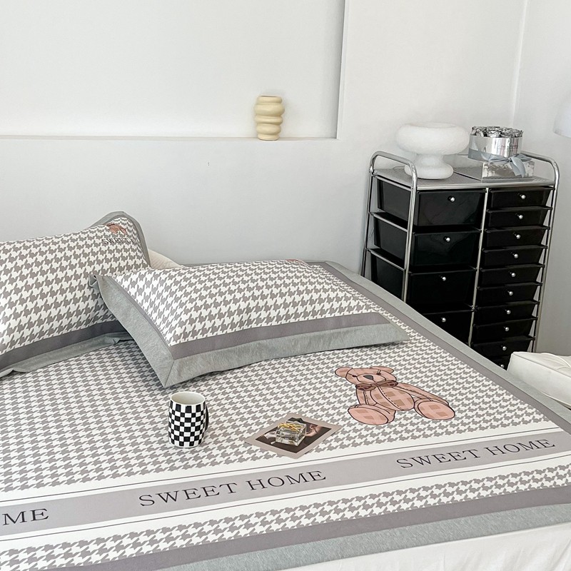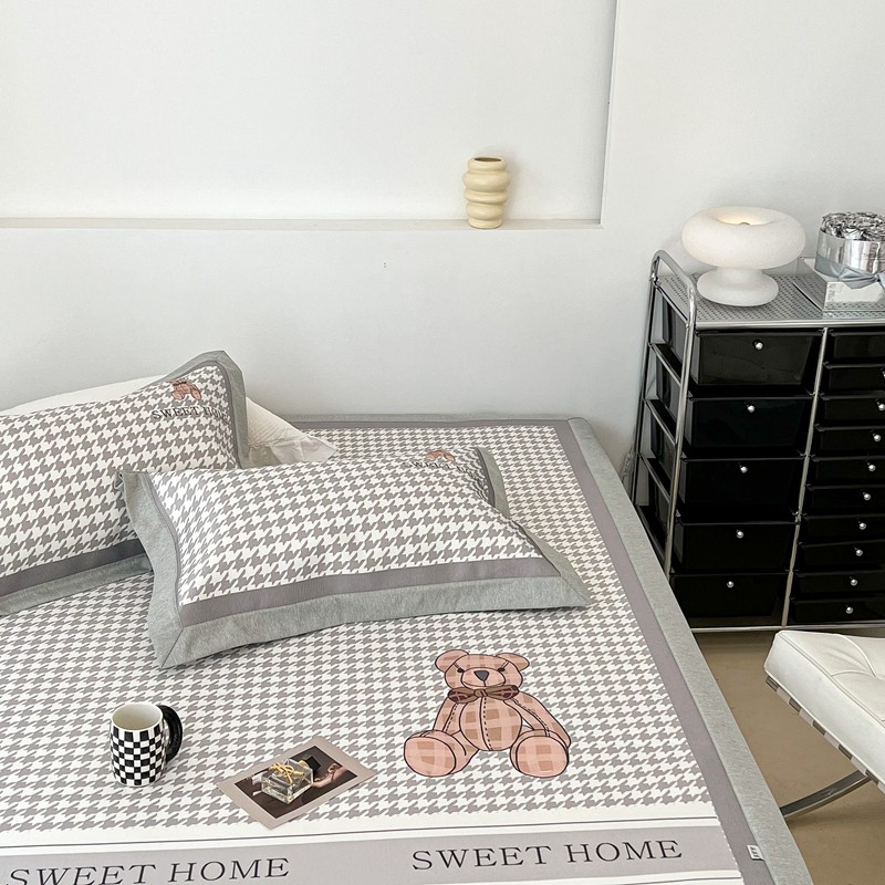 昔可 2022新款大版数码水洗冰沐丝凉席 酷酷千鸟格纹熊
