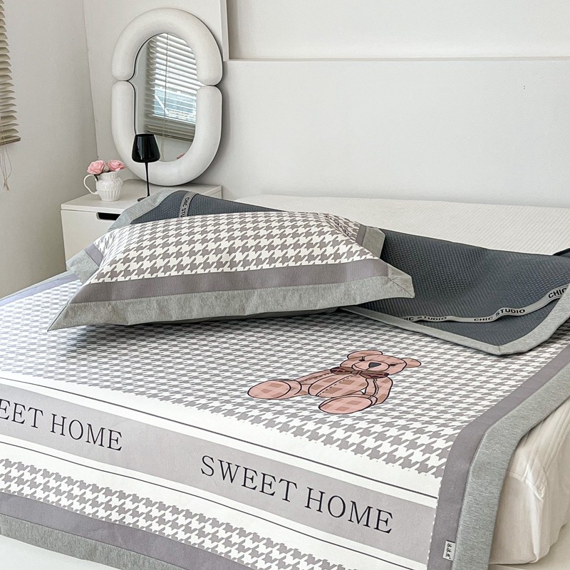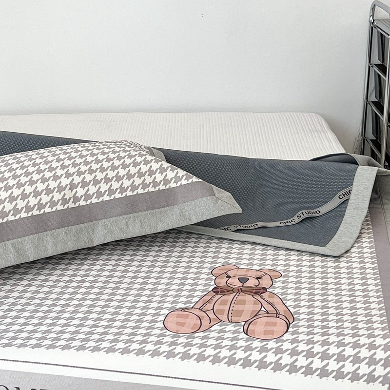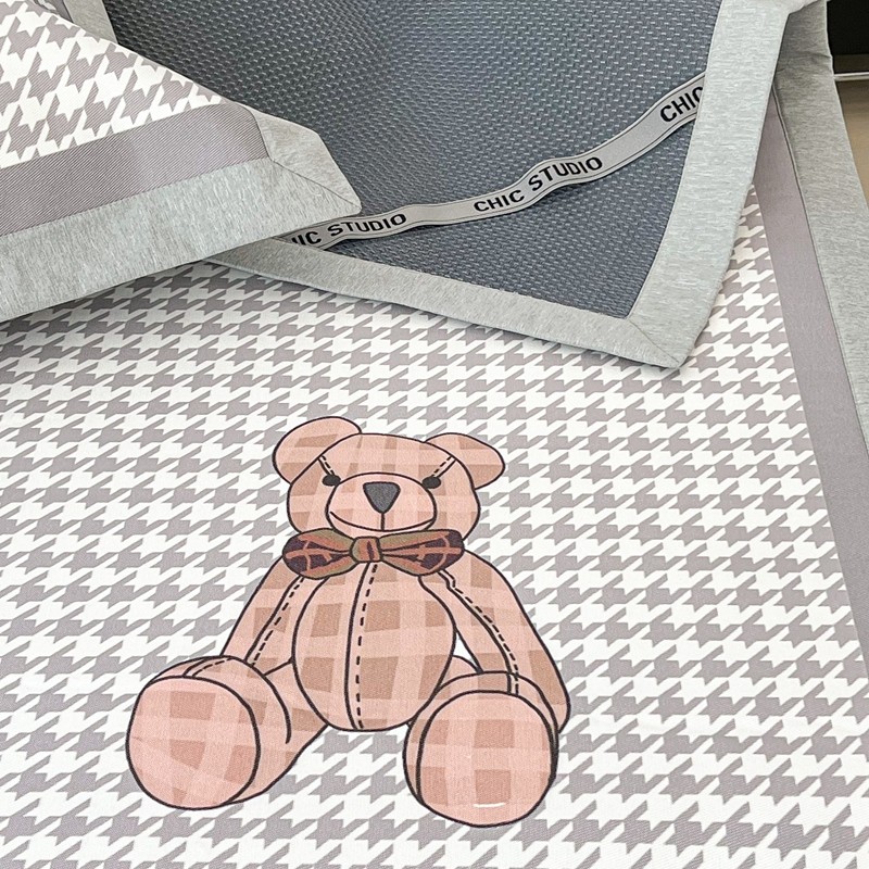 商品名称:昔可 2022新款大版数码水洗冰沐丝凉席 酷酷千鸟格纹熊