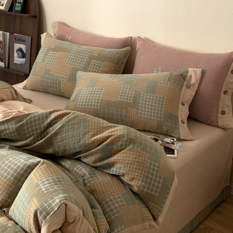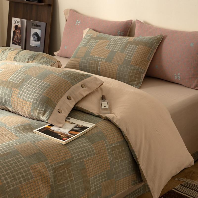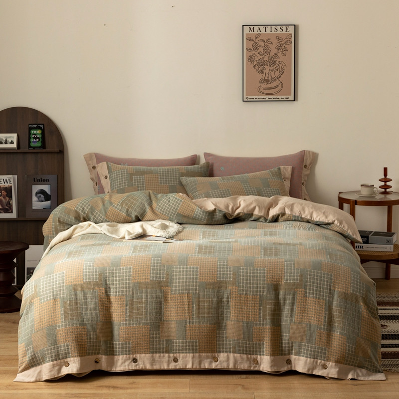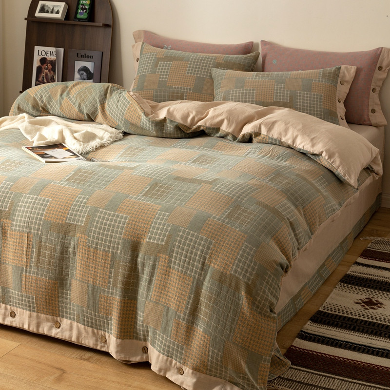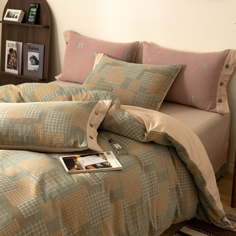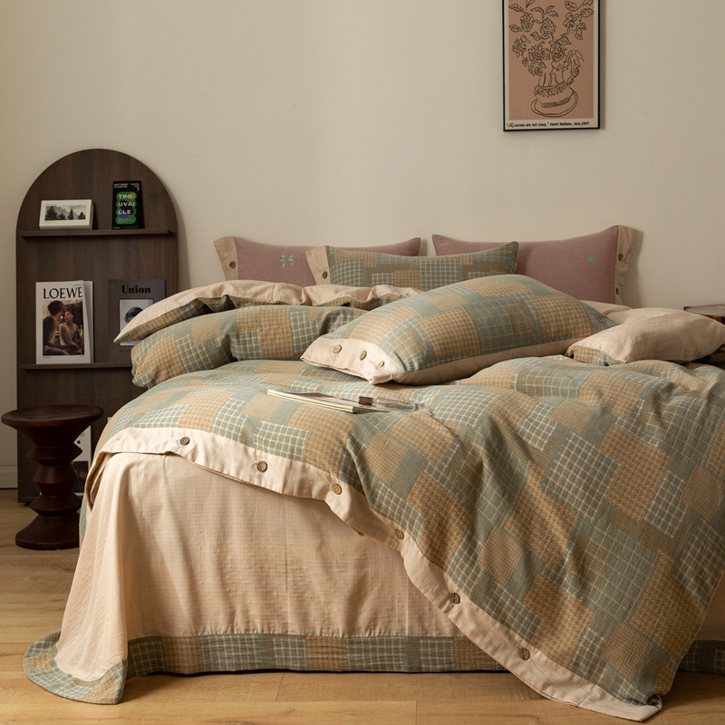 凡客 2022新款全棉A类色织双层纱纽扣款四件套 丽斯拉