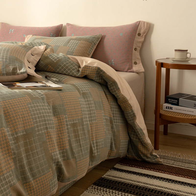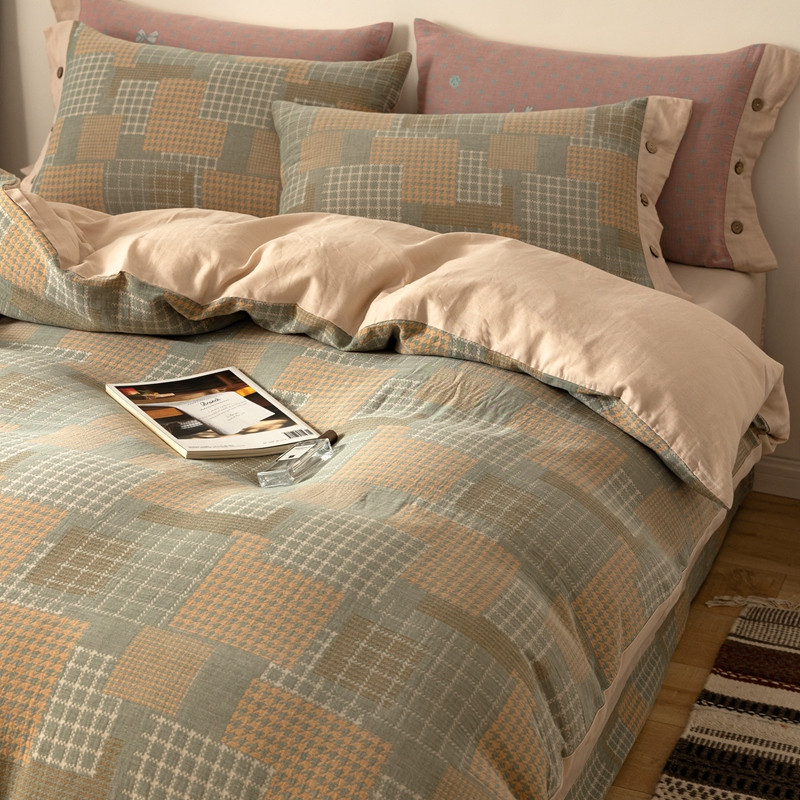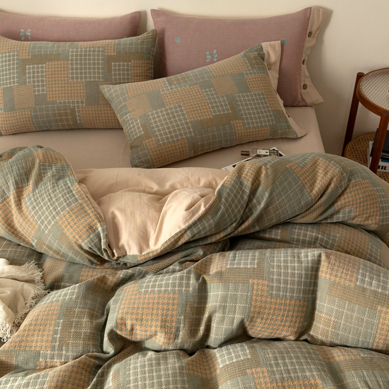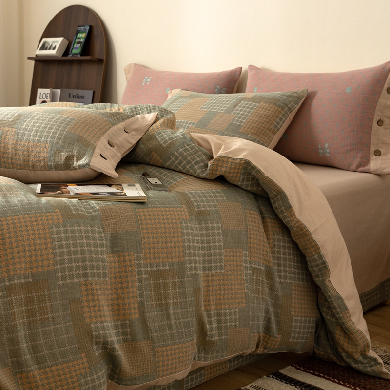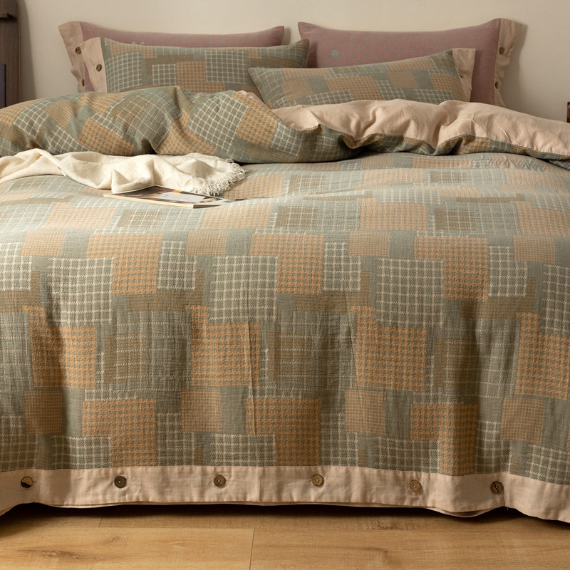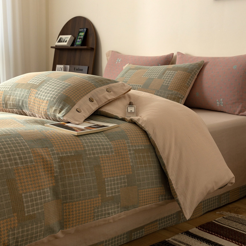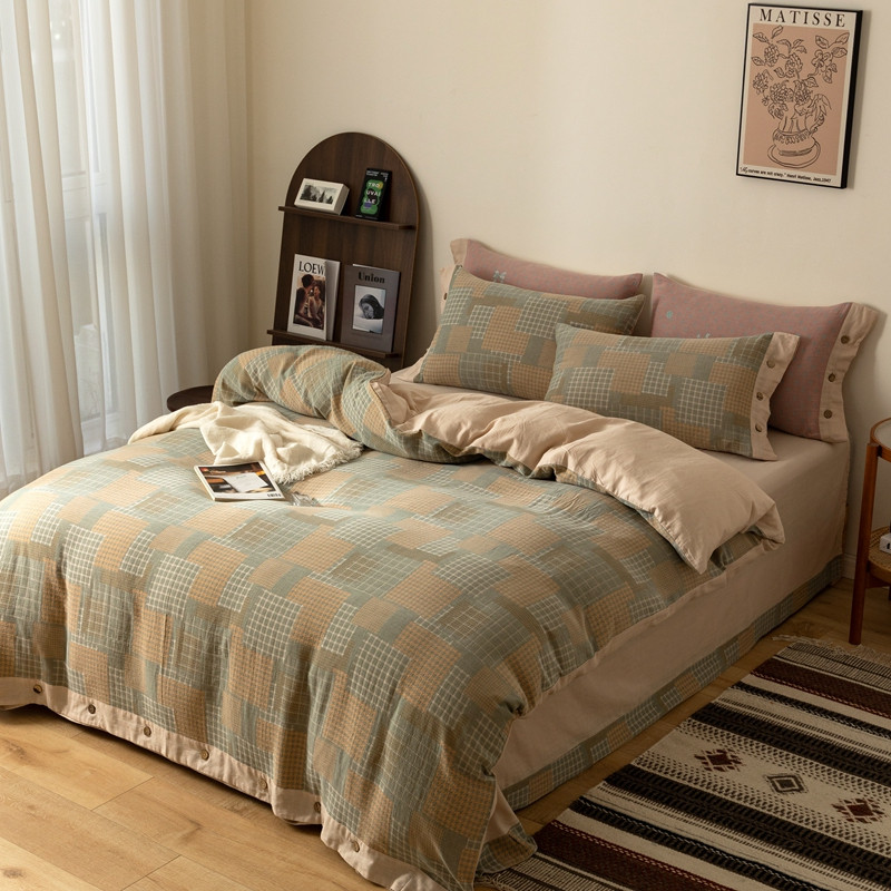 凡客 2022新款全棉A类色织双层纱纽扣款四件套 丽斯拉