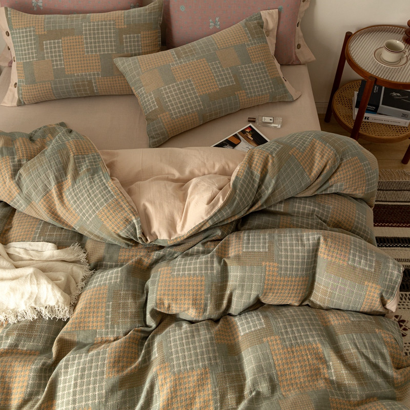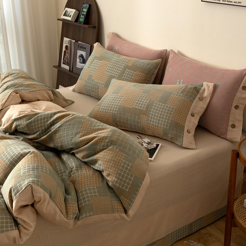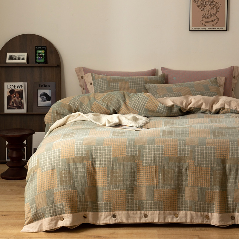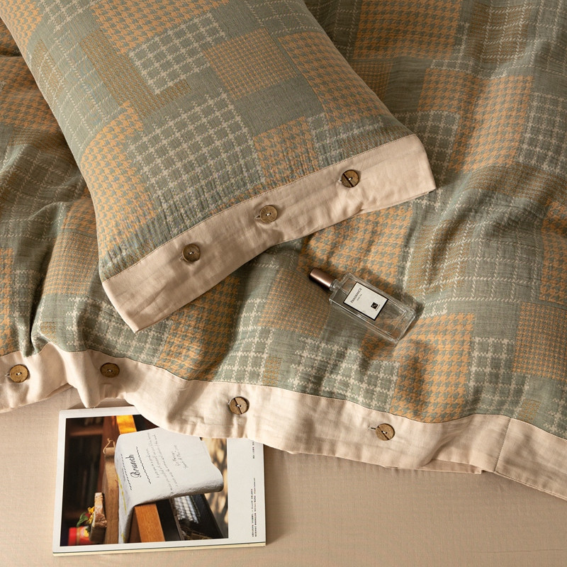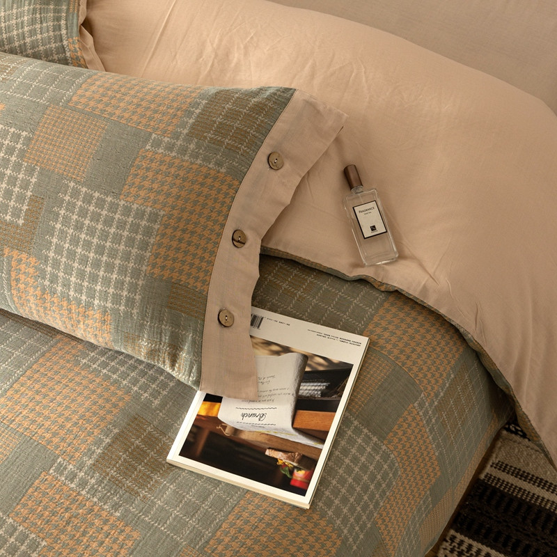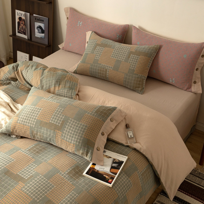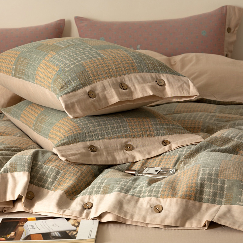 商品名称:凡客 2022新款全棉A类色织双层纱纽扣款四件套 丽斯拉