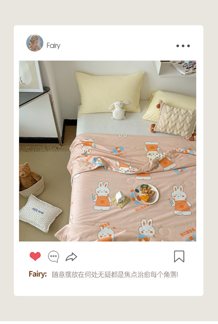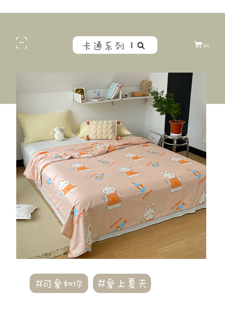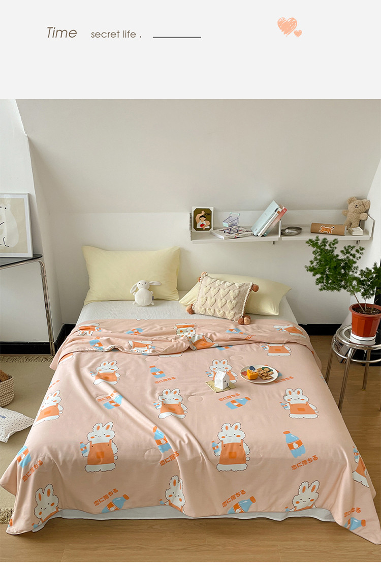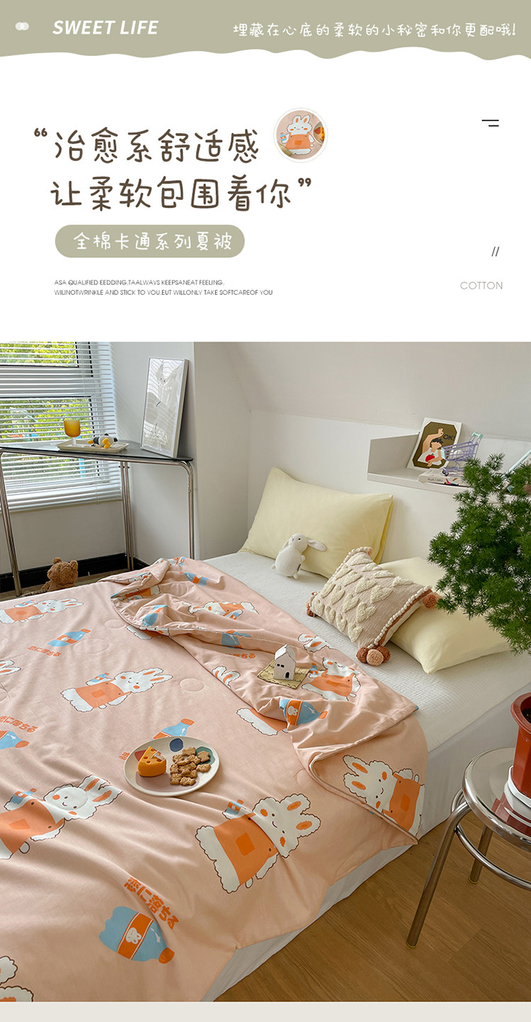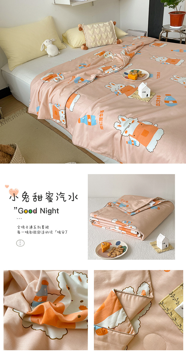 棉眠 2022新款13070全棉卡通系列夏被 小兔甜蜜汽水