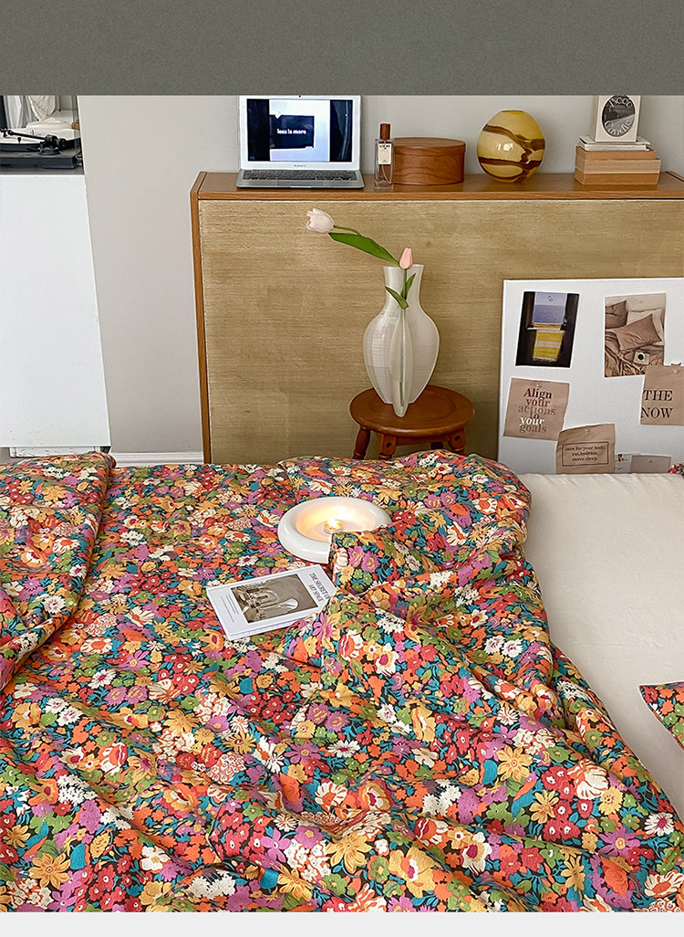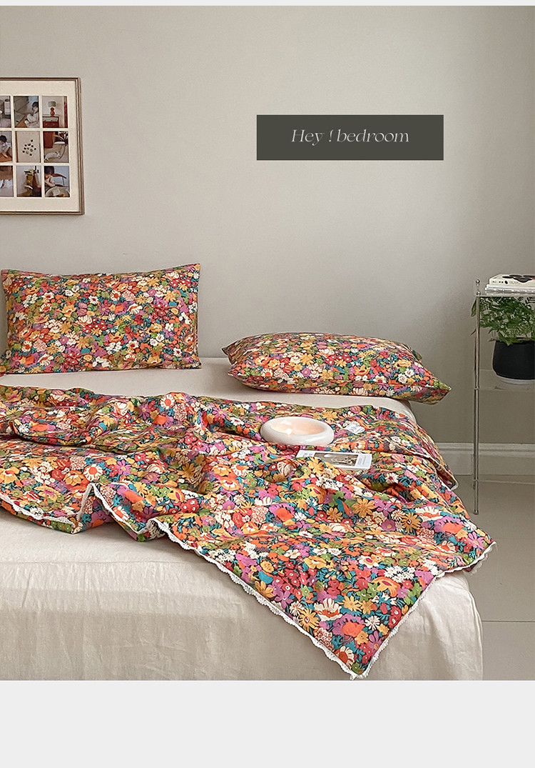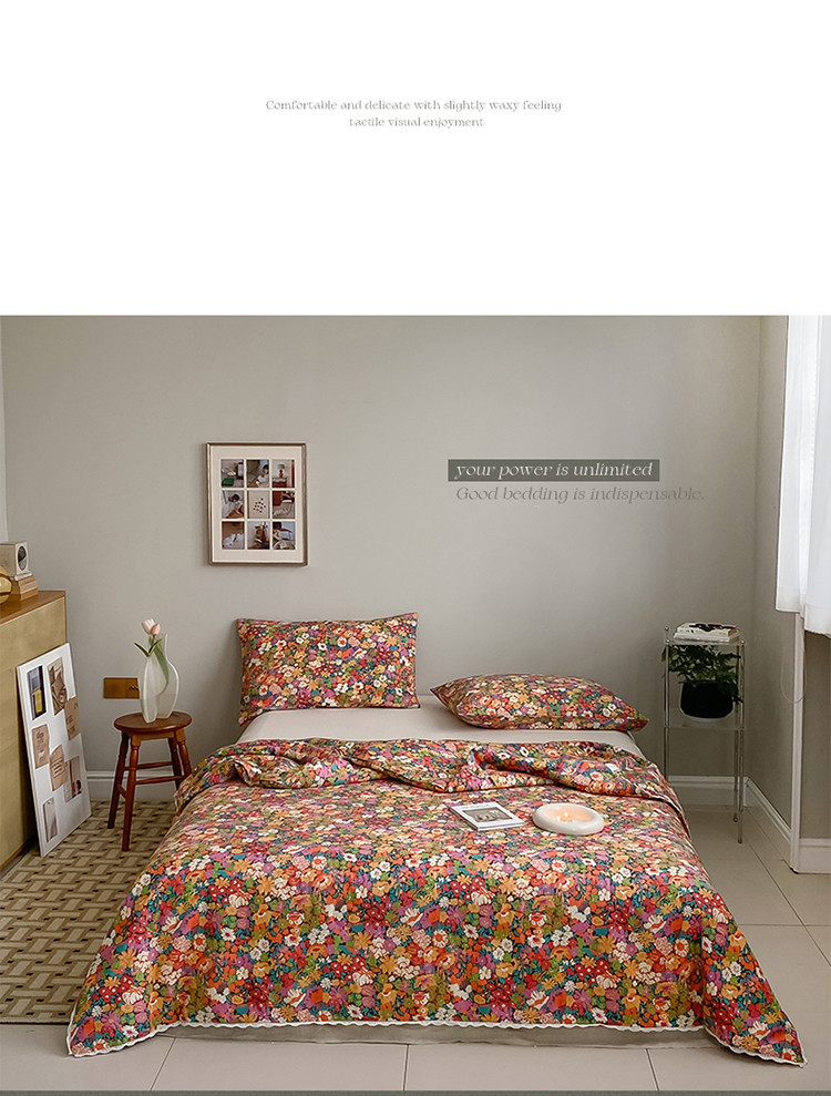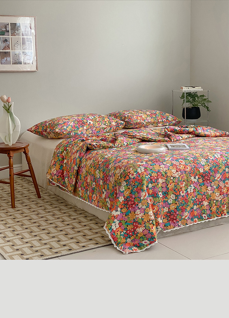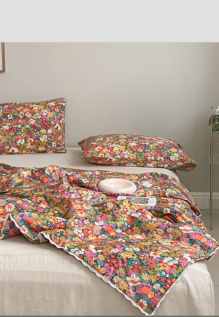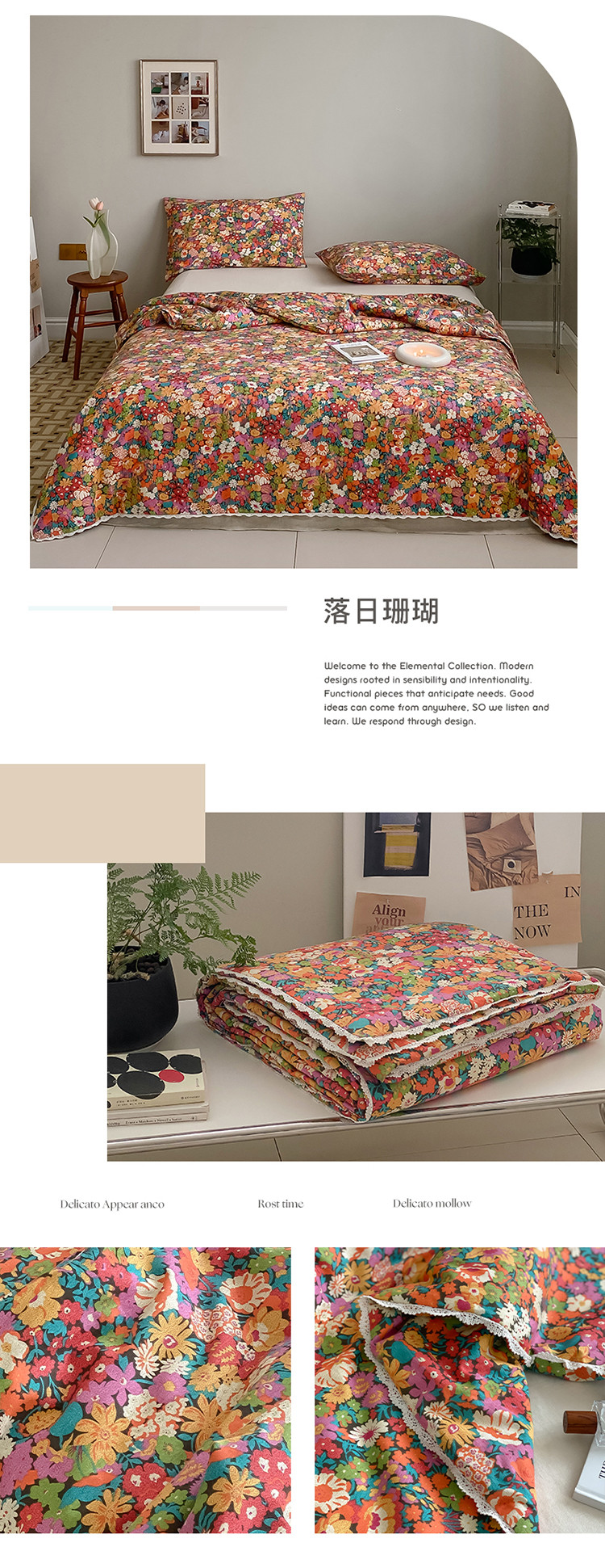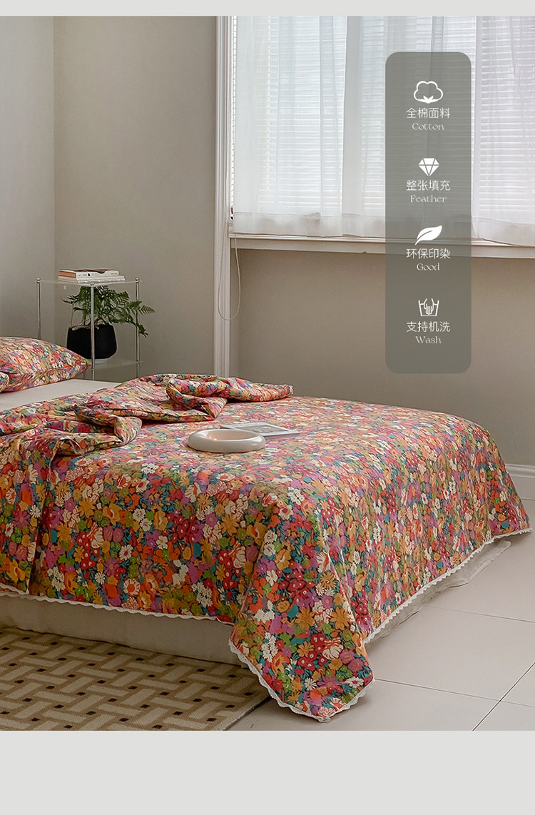 棉眠 2022新款13070全棉碎花系列夏被 落日珊瑚