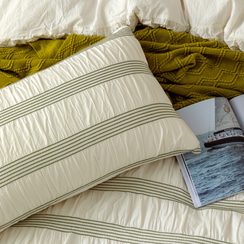 (总)简家居 2025新款亲肤舒适棉麻床盖三件套,棉麻提花