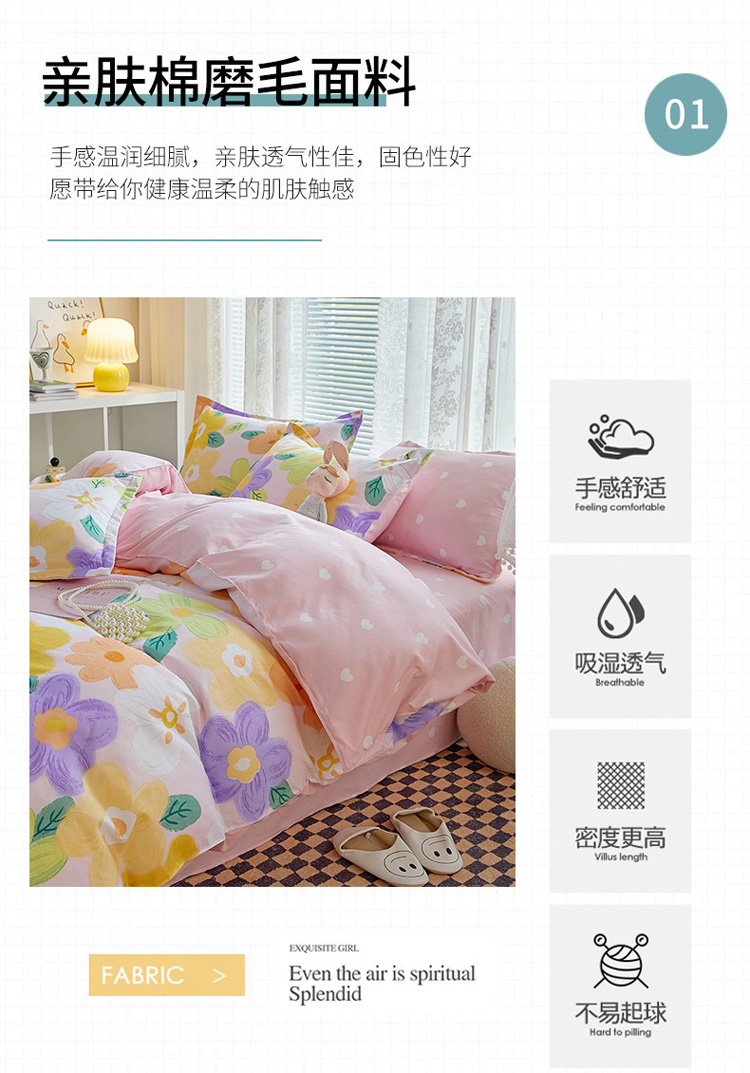 商品名称:世爵 2023新款加厚磨毛印花四件套 花香半语粉