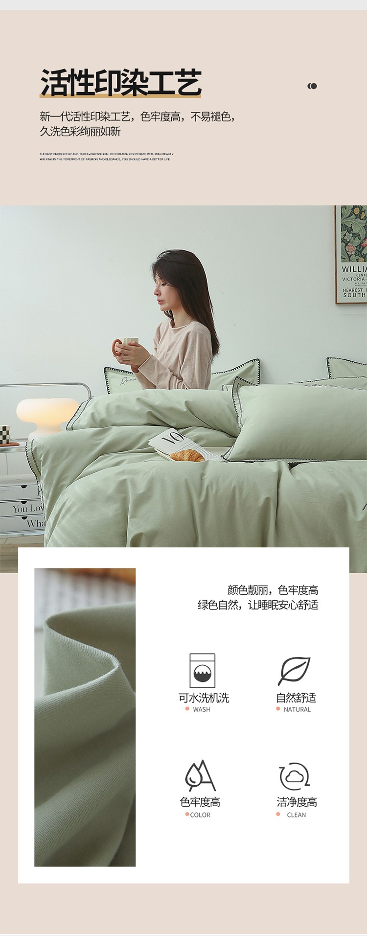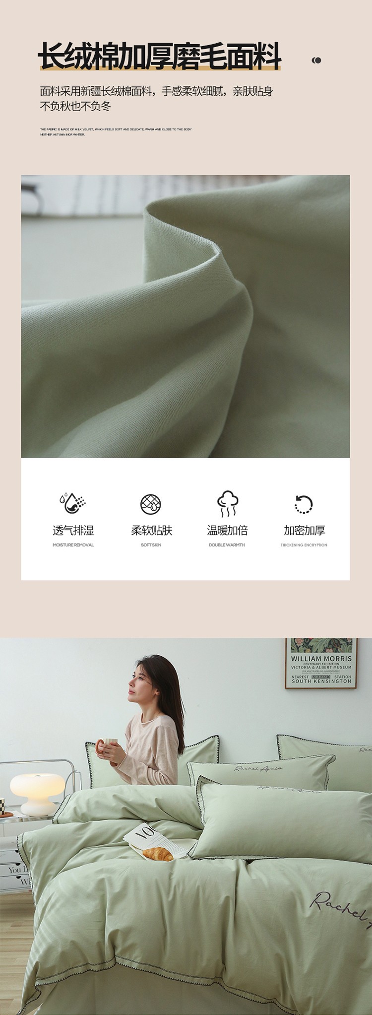 商品名称:艾莱2023新款A类新疆长绒棉加厚柔顺磨毛四件套瑞秋-青绿