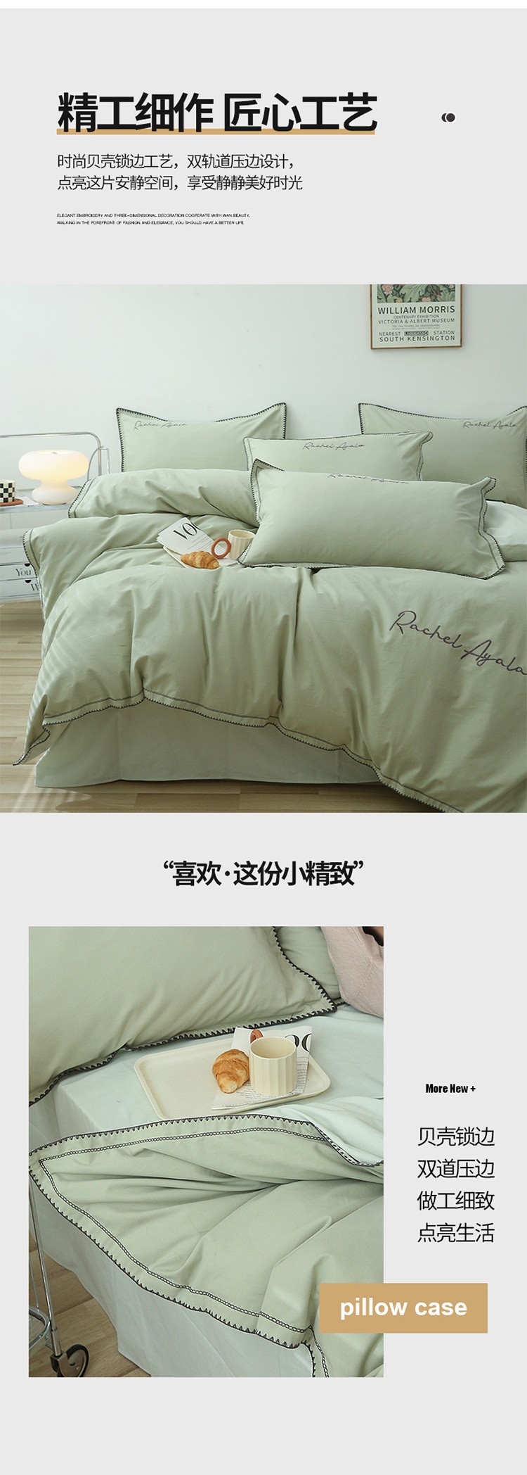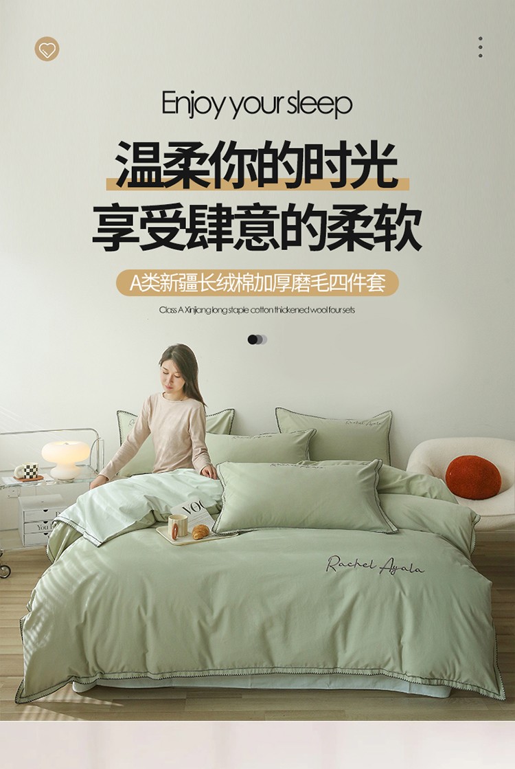 艾莱2023新款A类新疆长绒棉加厚柔顺磨毛四件套瑞秋-青绿