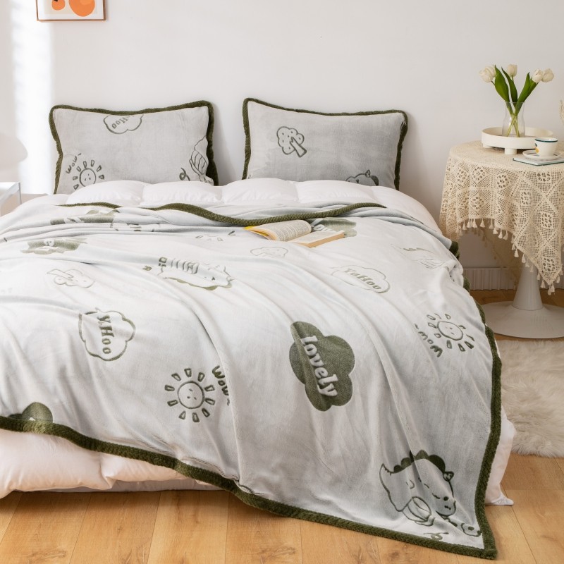 当前位置: 91家纺网 > 商品网购 > 毛毯休闲毯绒毯 > 毛毯 > 来菲毛毯 2025新款背印剪花牛奶绒毛毯加厚毯子不掉毛高端毯子绿恐龙