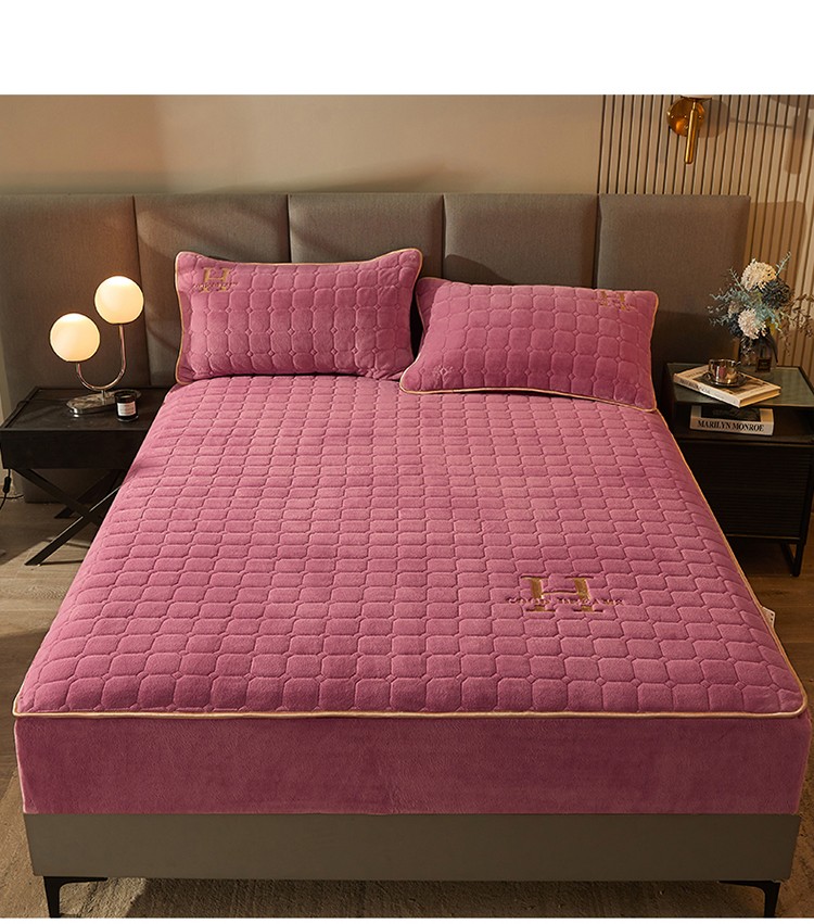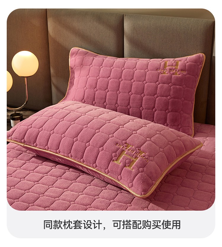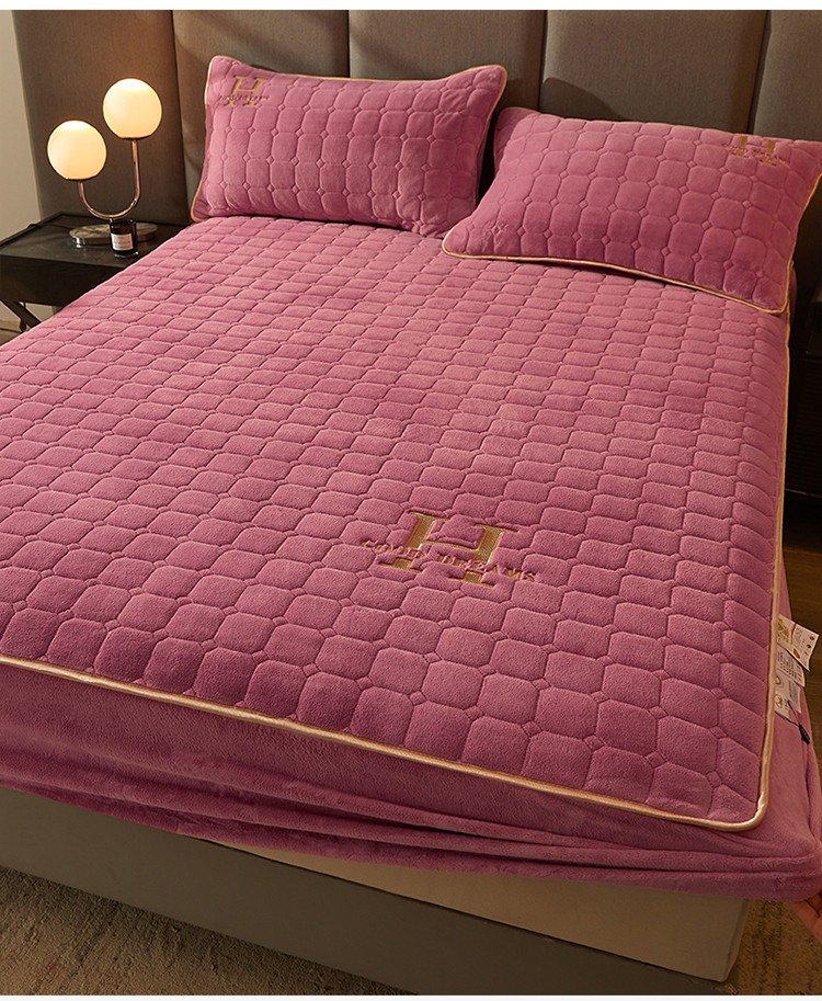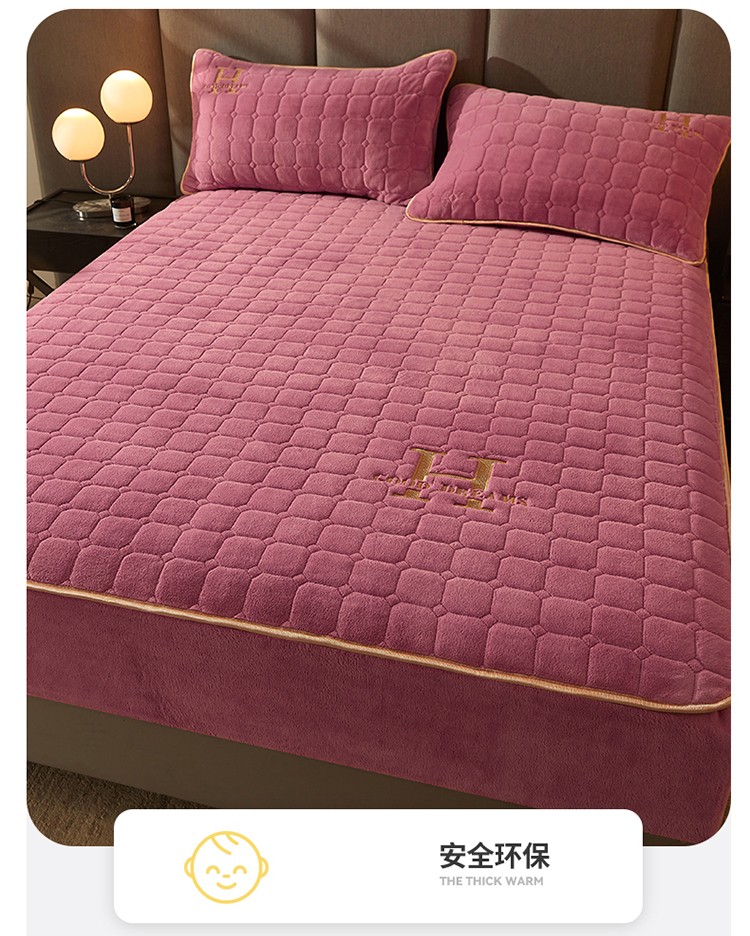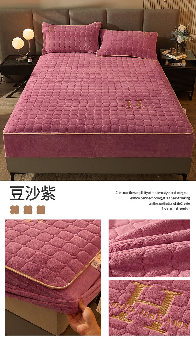 恒爱2022秋冬新款A类牛奶绒刺绣夹棉单床笠--H系列豆沙紫