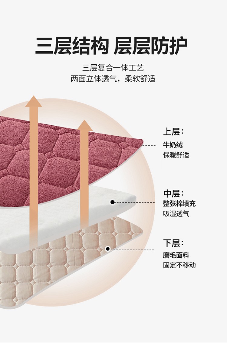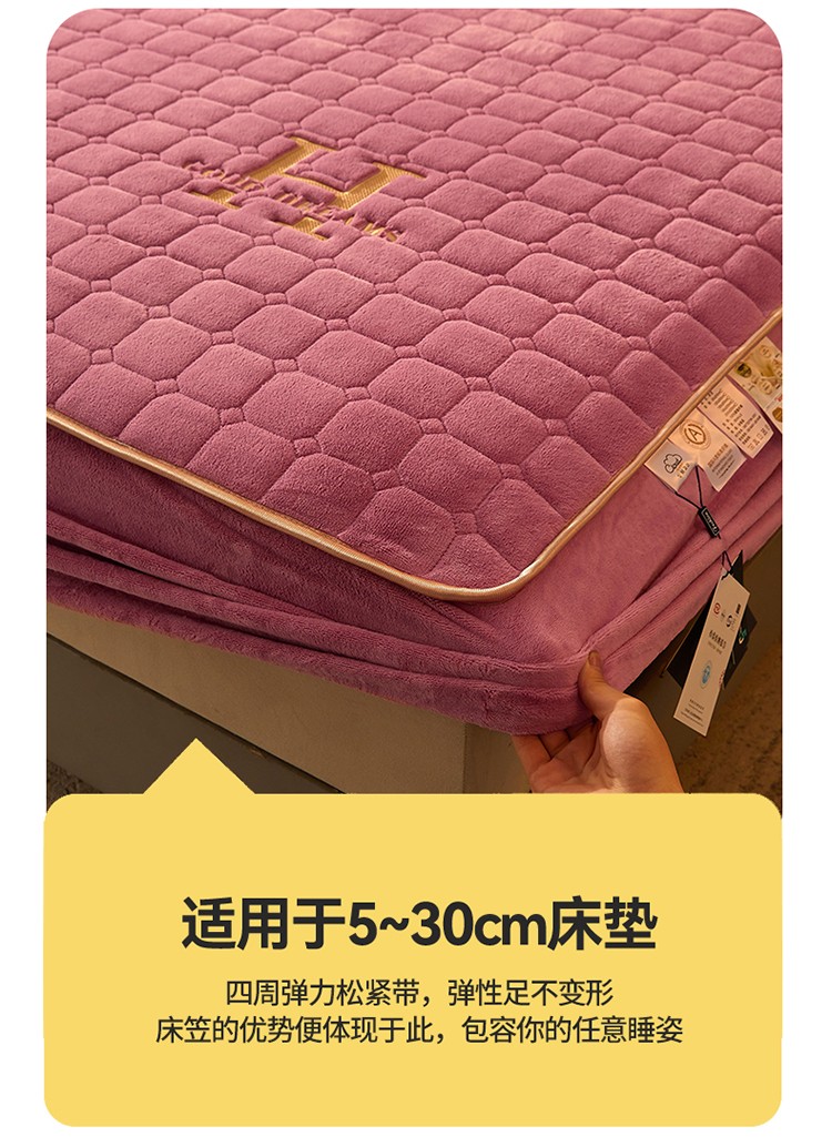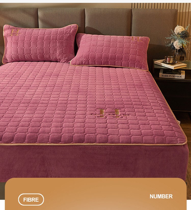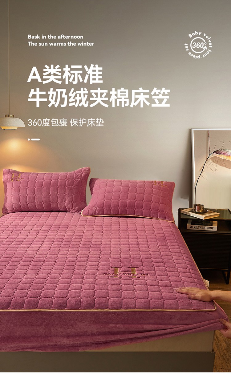 恒爱2022秋冬新款A类牛奶绒刺绣夹棉单床笠--H系列豆沙紫