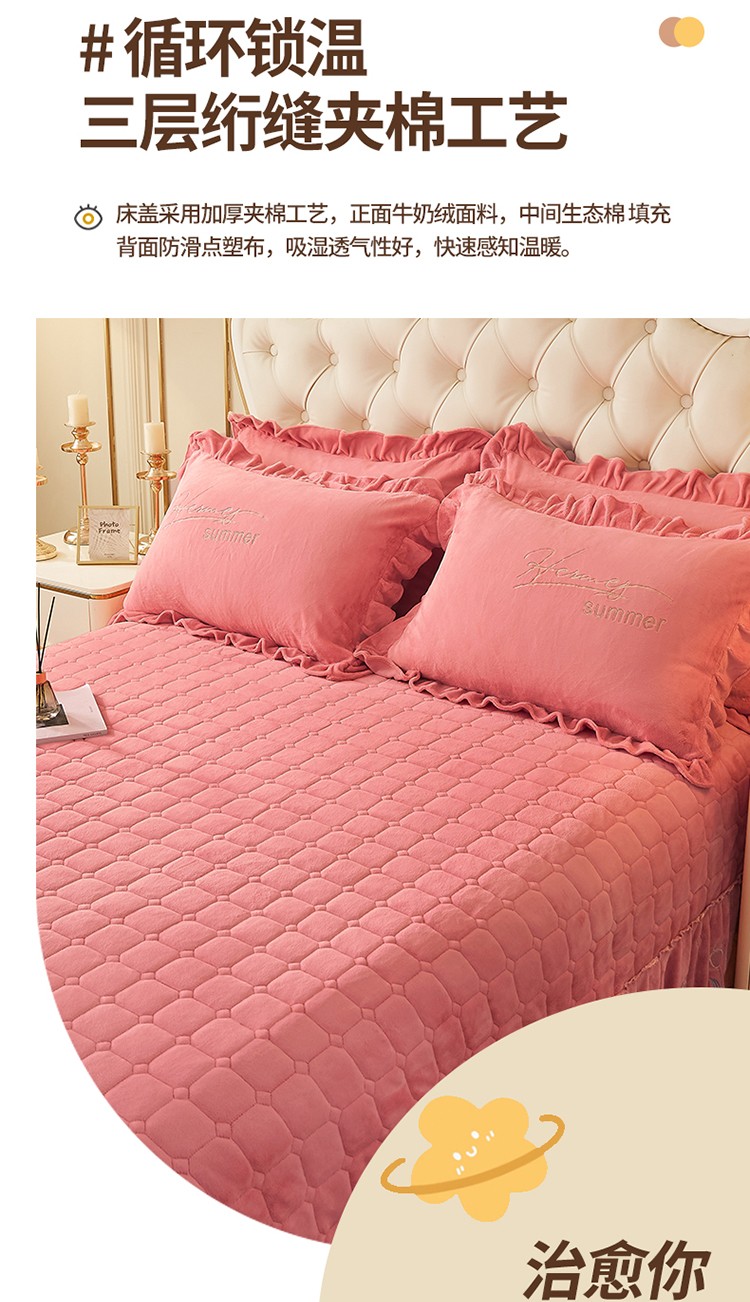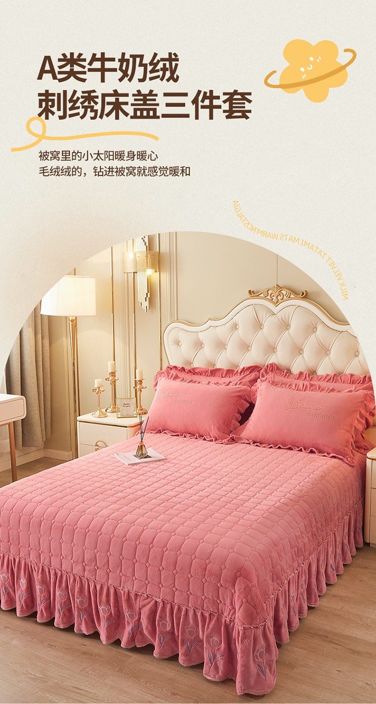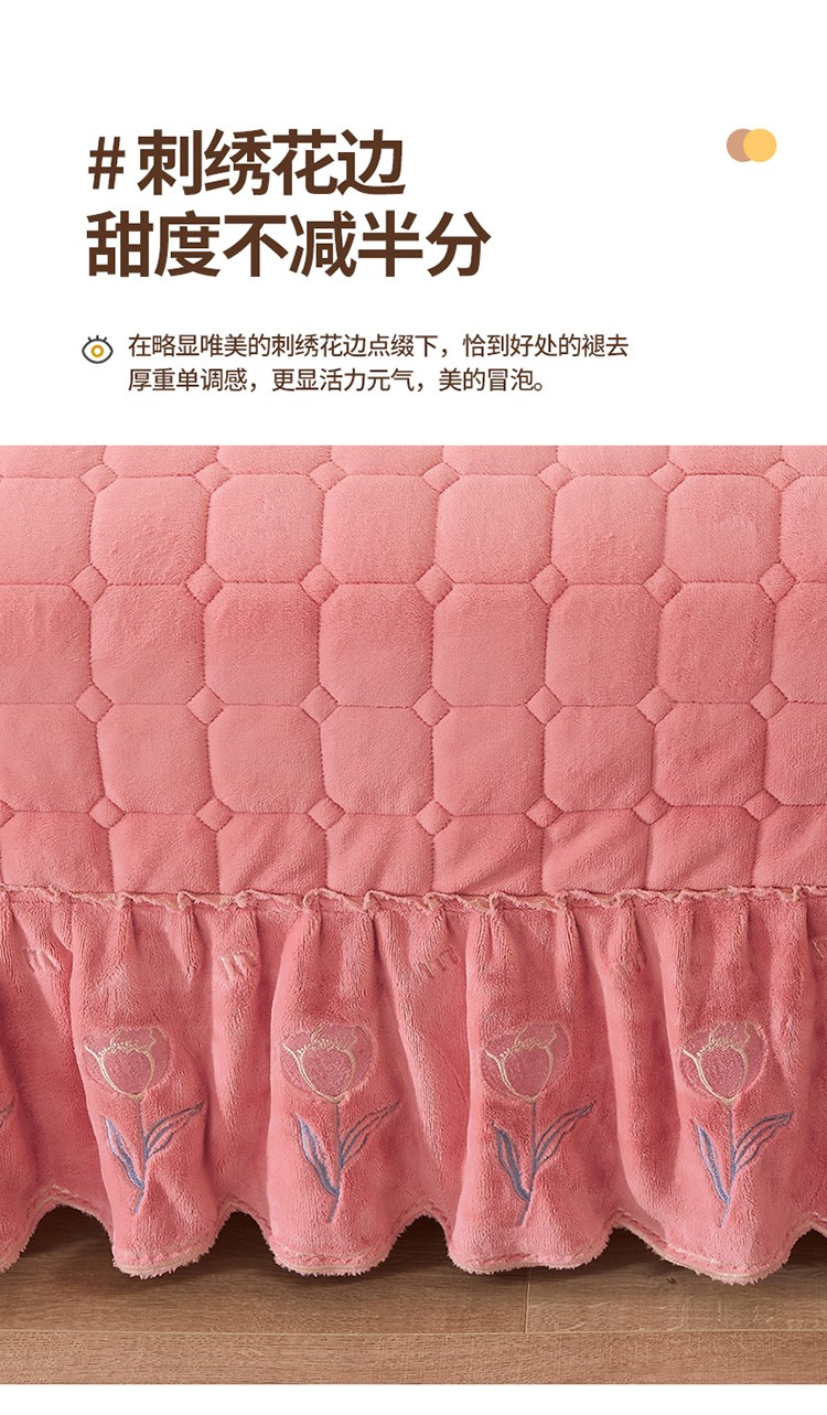 (总)恒爱家纺 2025新款牛奶绒贴布绣夹棉床裙四件套,豆沙红,浪漫紫,天空蓝,温馨粉,象牙白