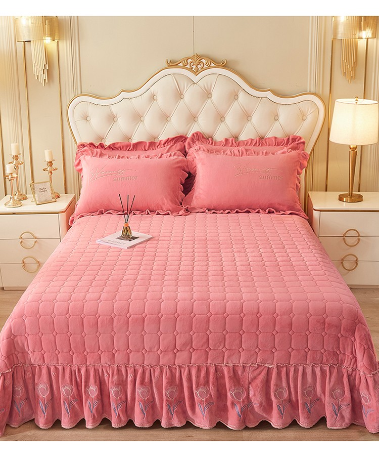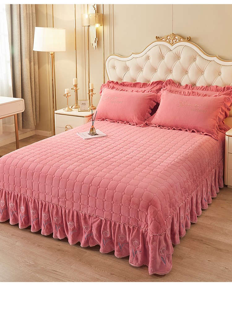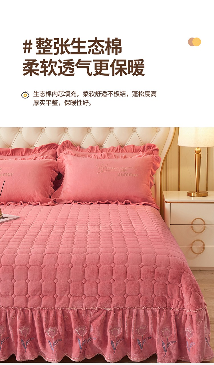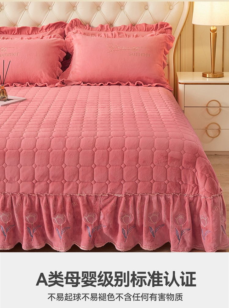 (总)恒爱 2022秋冬水晶绒翩翩花舞夹棉床裙四件套,大红色,豆沙红,橄榄绿,公主粉,桔色,咖啡色,孔雀绿,拉菲红,罗兰紫,玫红色,美人玉,米白色,米驼色,抹茶绿,浅灰色,紫色