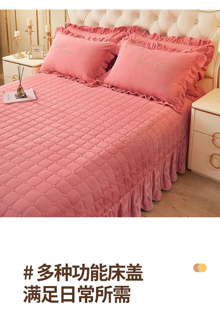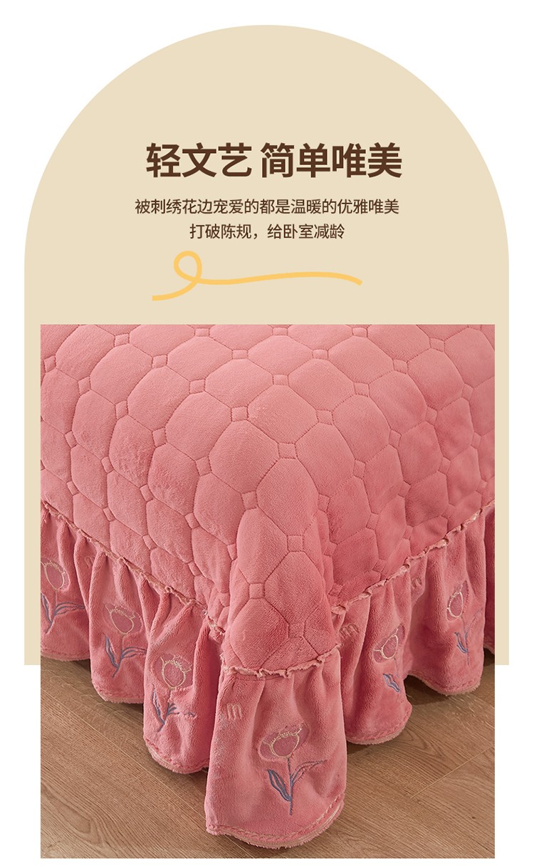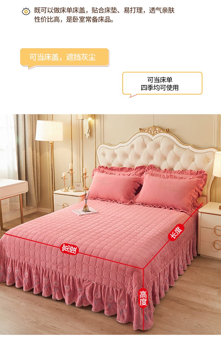 (总)恒爱 2022秋冬水晶绒翩翩花舞夹棉单床裙,大红色,豆沙红,橄榄绿,公主粉,桔色,咖啡色,孔雀绿,拉菲红,罗兰紫,玫红色,美人玉,米白色,米驼色,抹茶绿,浅灰色,紫色