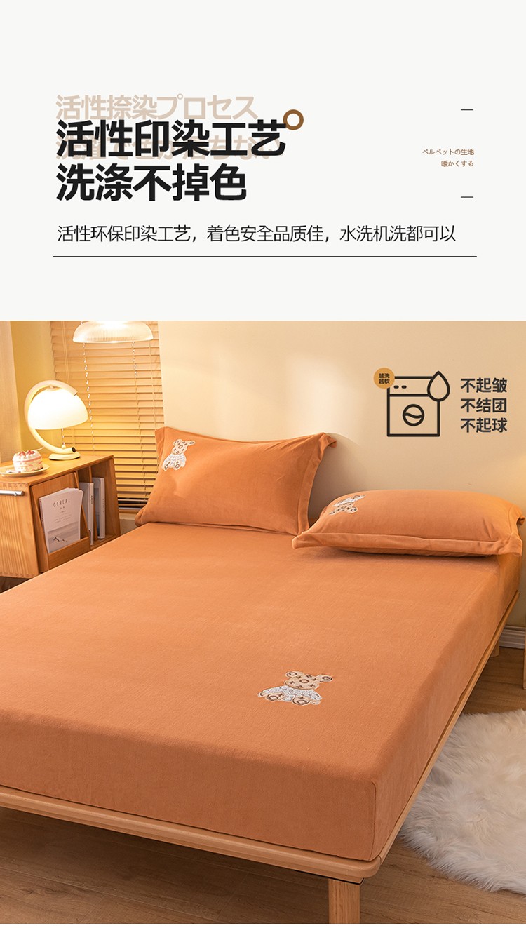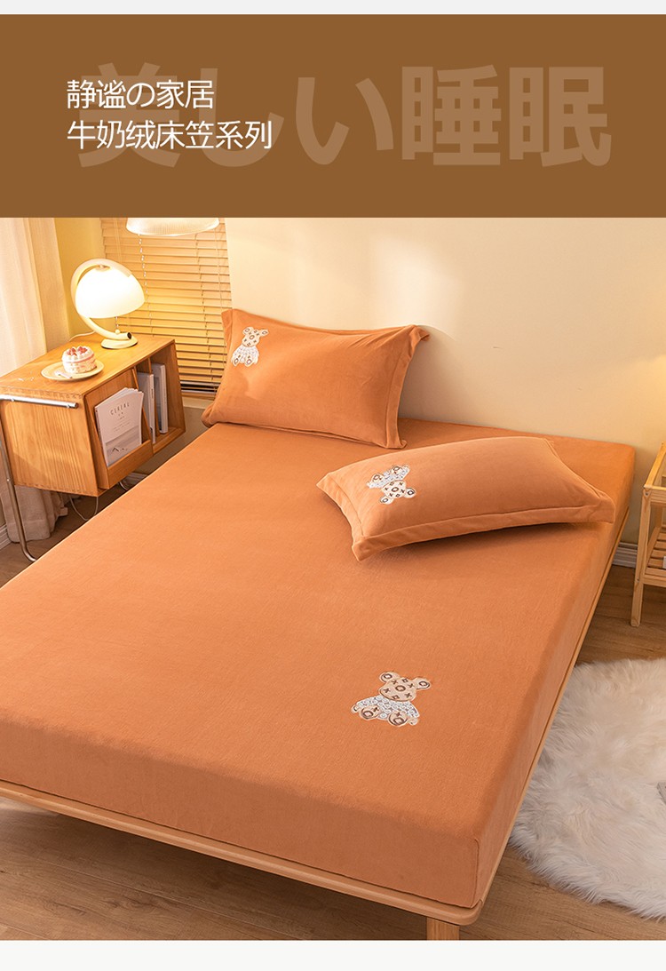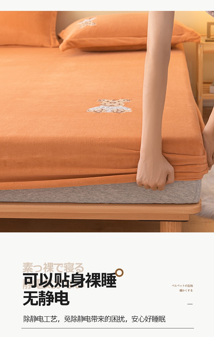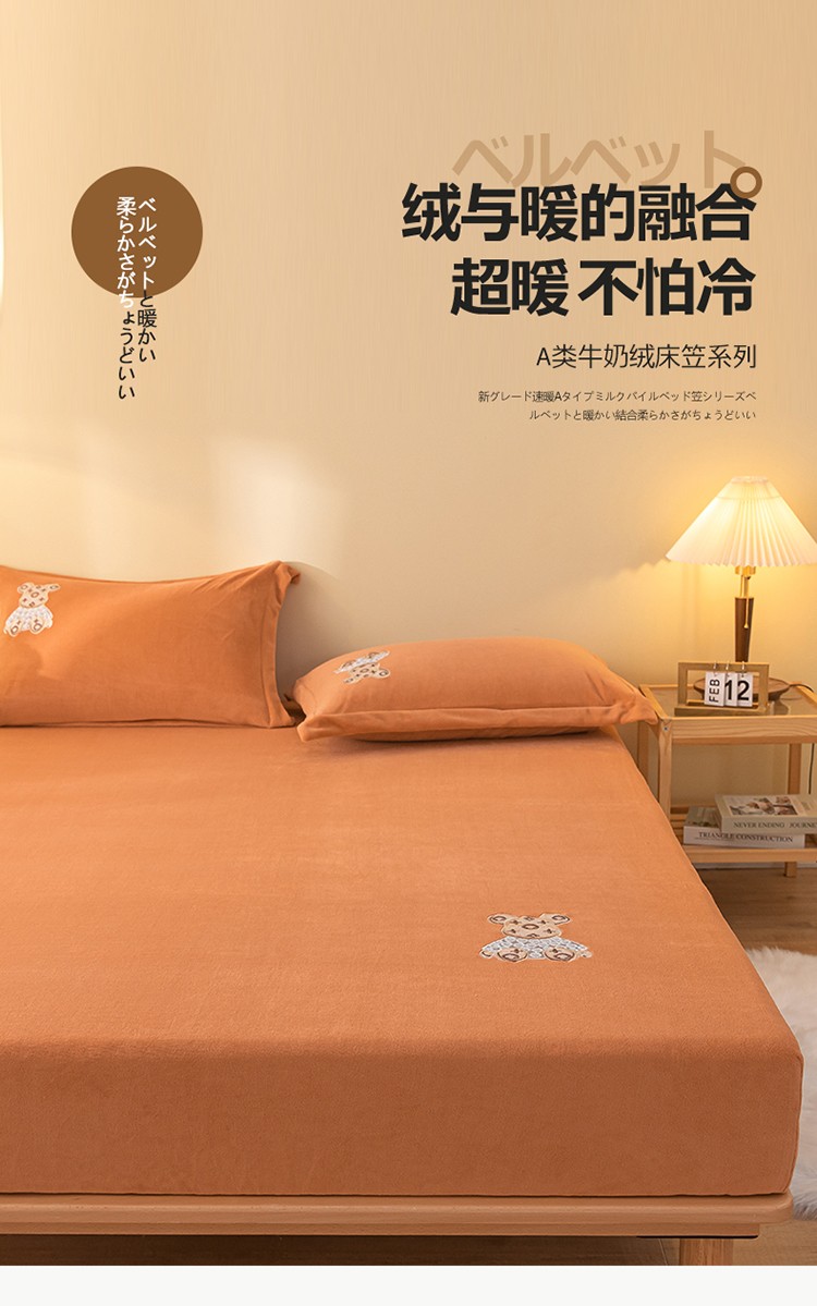 商品名称:蓝米卡夫 2024新款暴力熊A类牛奶绒保暖单床笠 南瓜桔