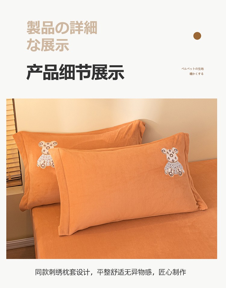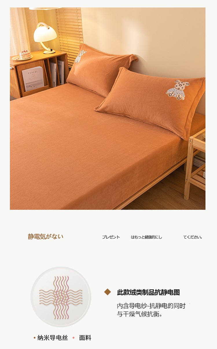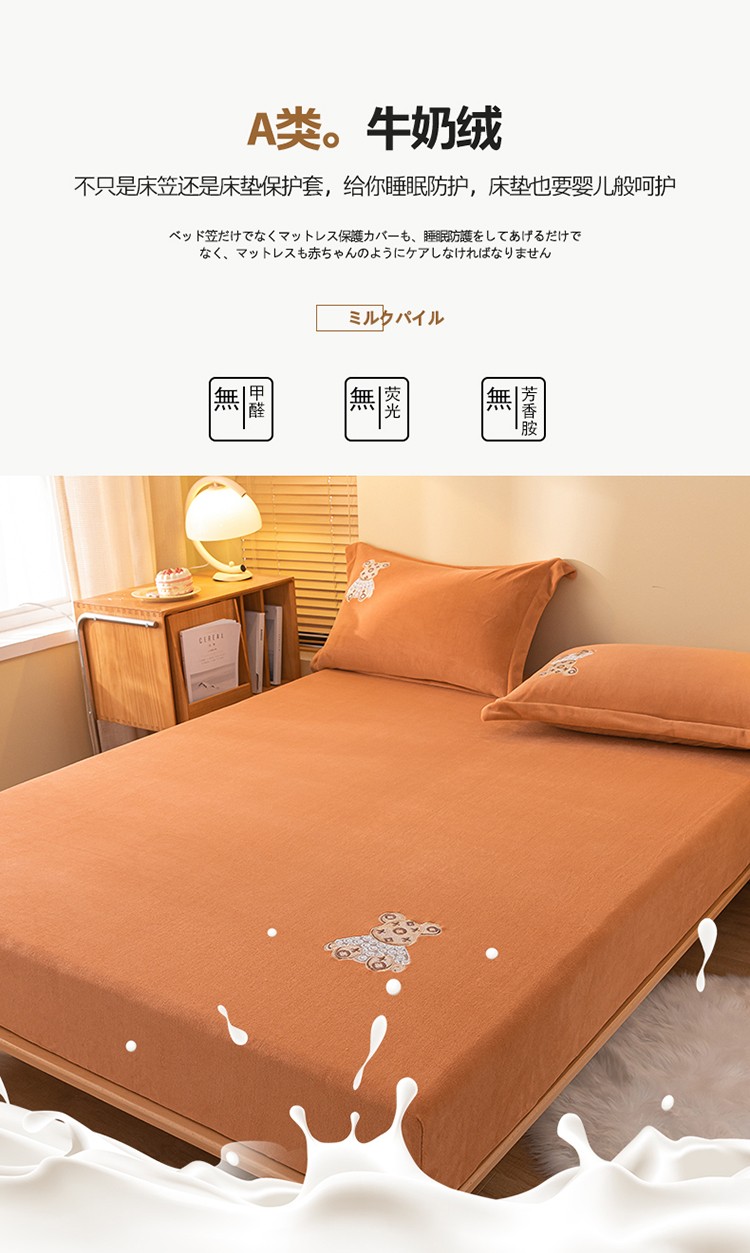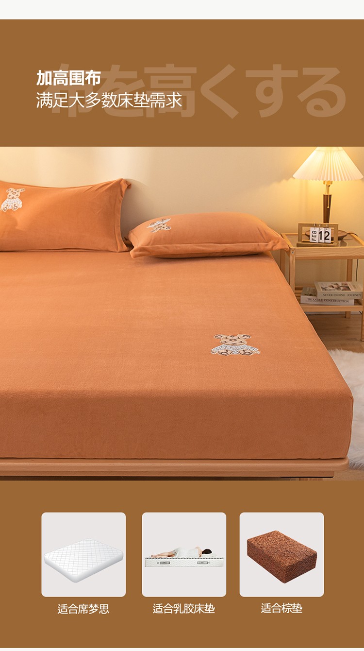 商品名称:蓝米卡夫 2024新款暴力熊A类牛奶绒保暖单床笠 南瓜桔