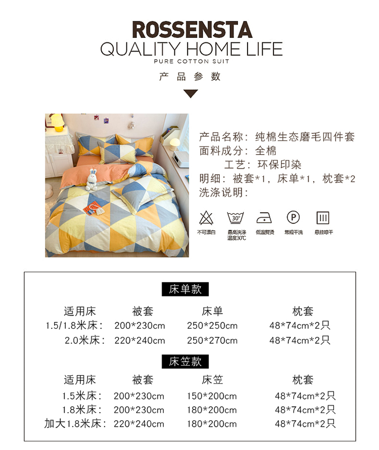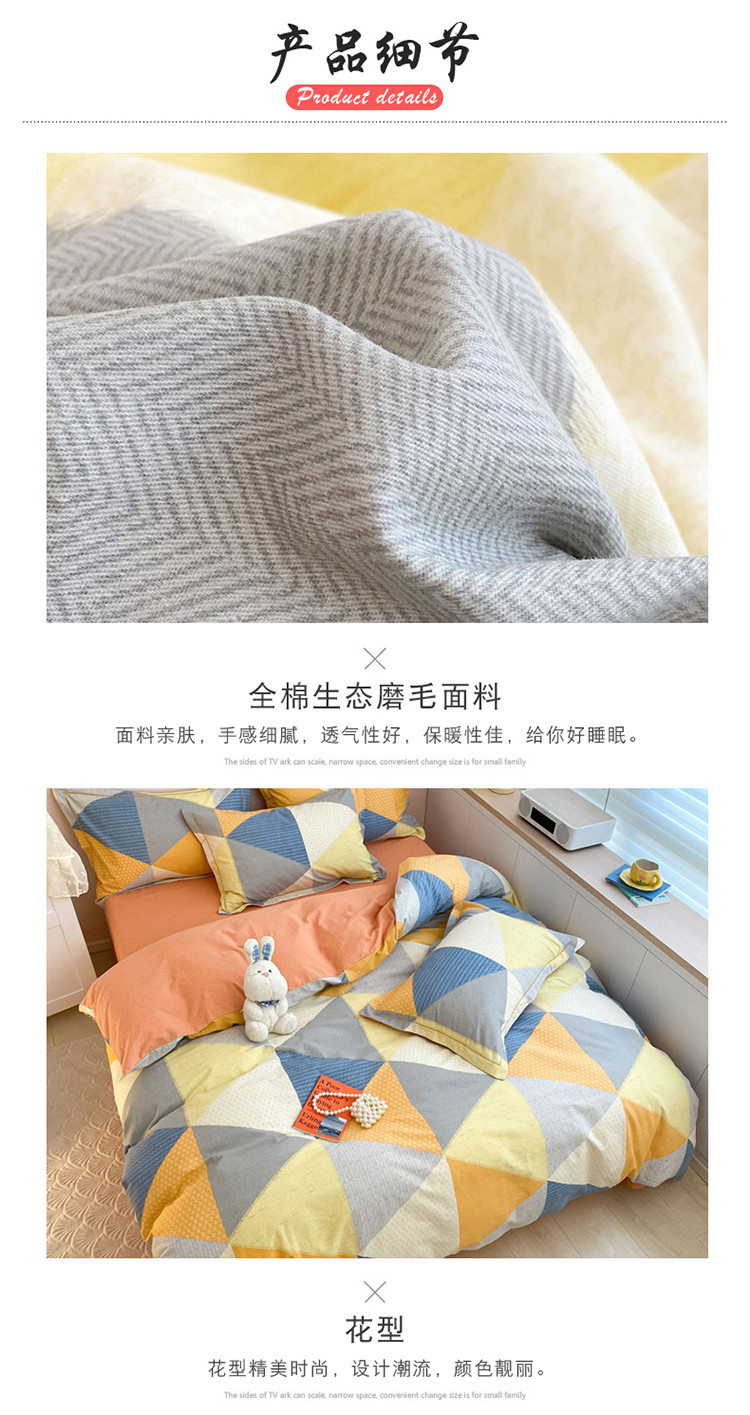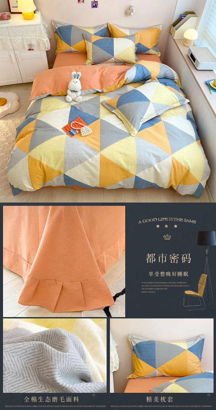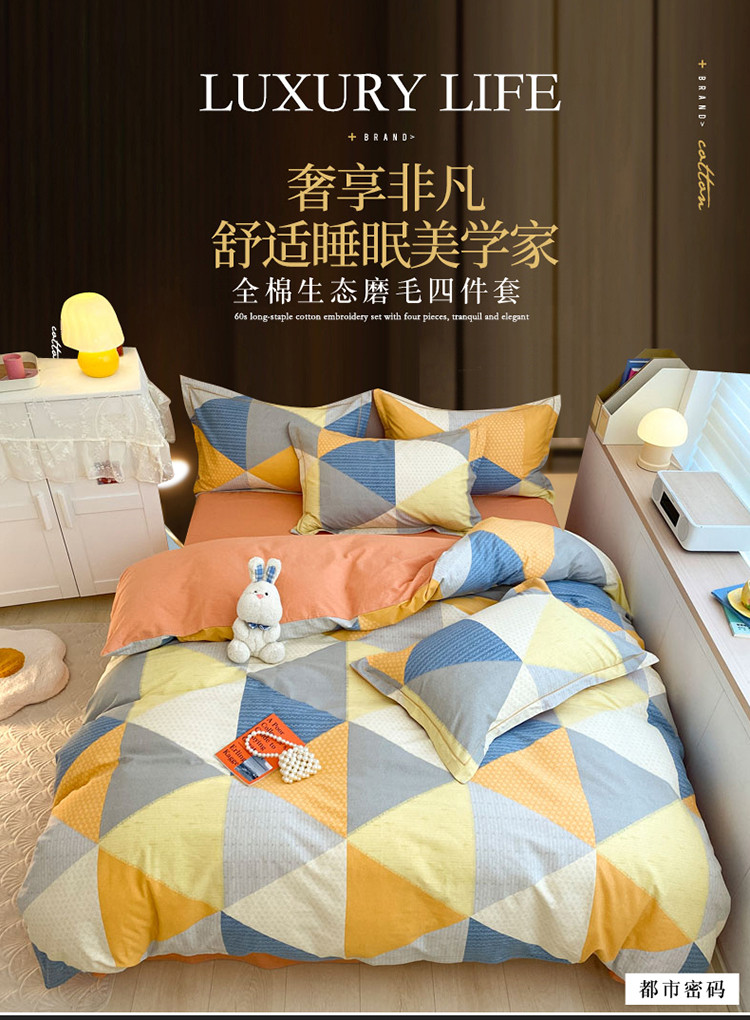 当前位置: 91家纺网 > 商品网购 > 床品套件 > 四件套 > 普通磨毛四件套 > 金爱家 2023新款全棉生态磨毛小清新四件套 都市密码