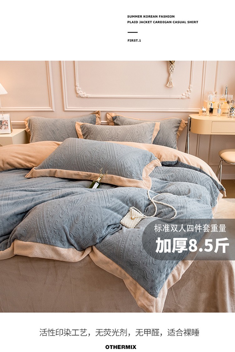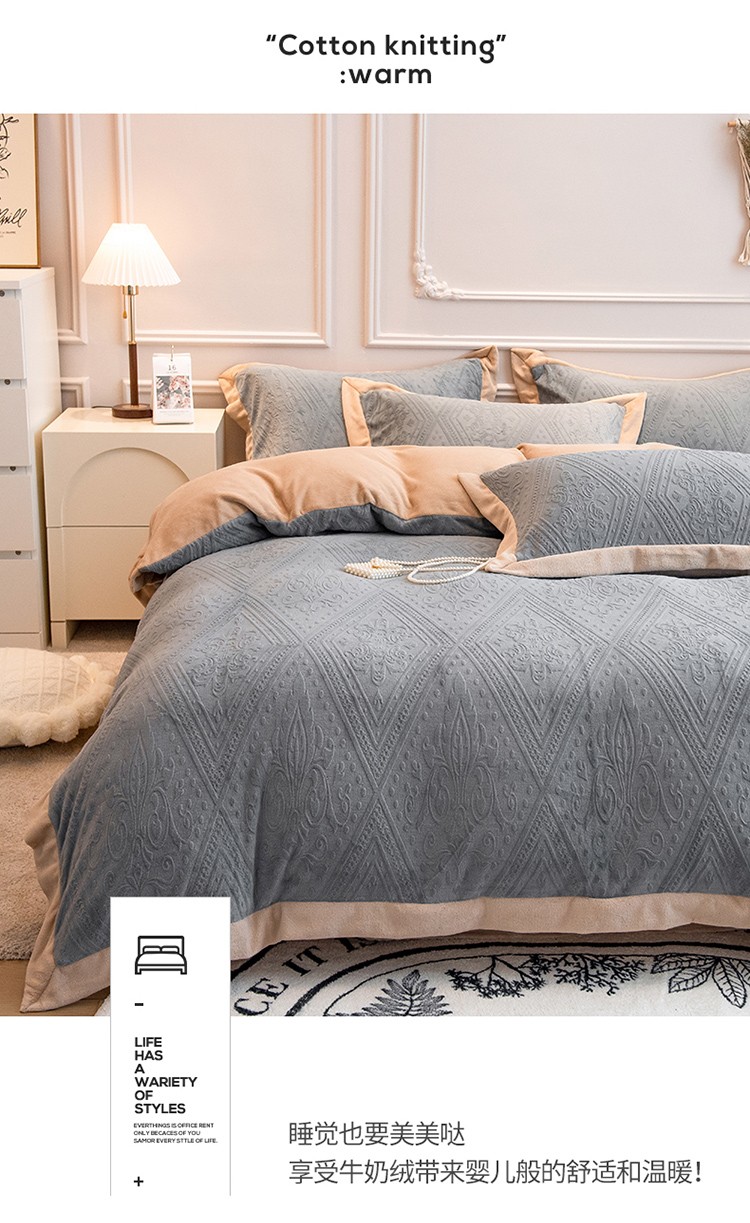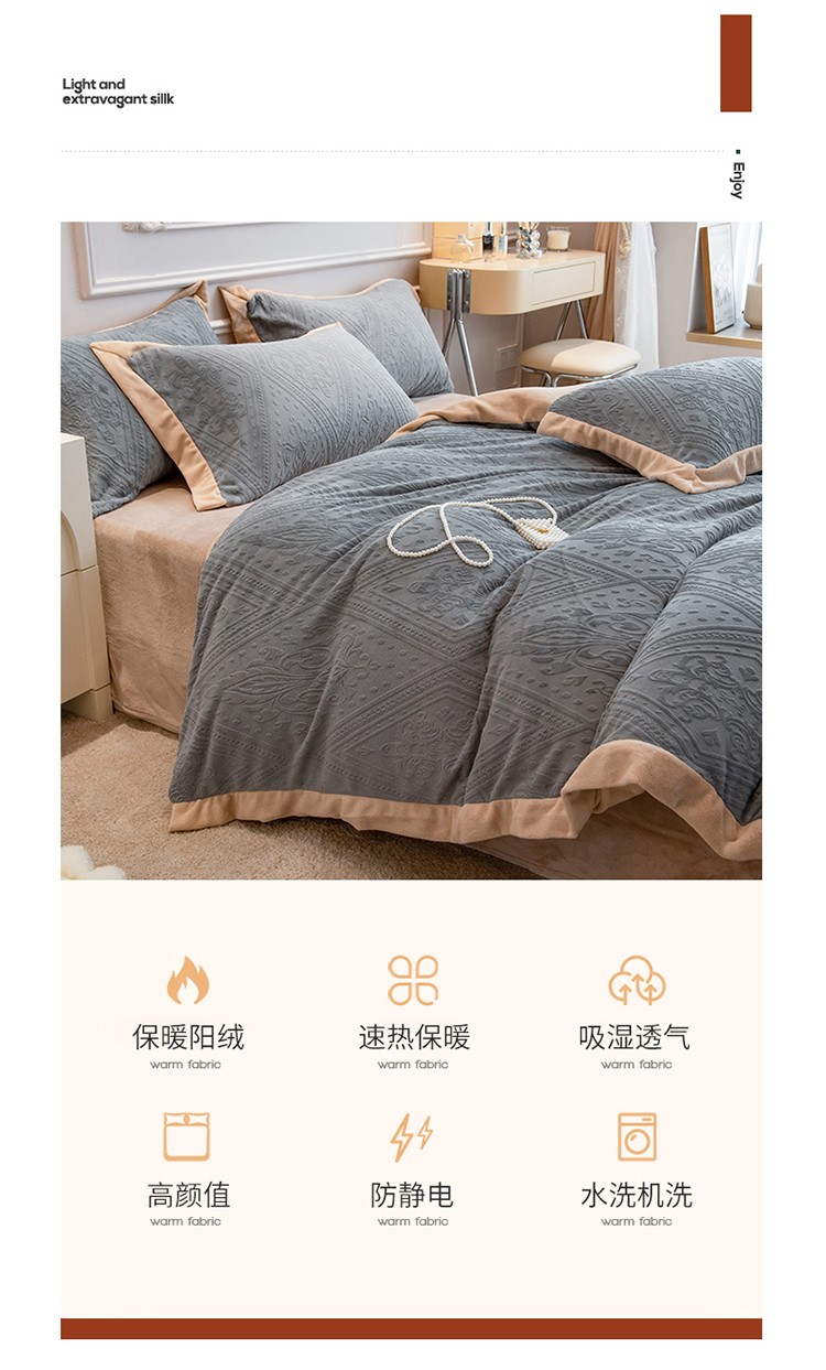 (总)丝幔家纺 2025新款A类暖绒提花雕花绒保暖四件套,爱马橙,火龙果红,克莱因蓝,梦幻灰,奶茶咖,奶咖,奶昔白,苔绿,星空灰,雅典粉