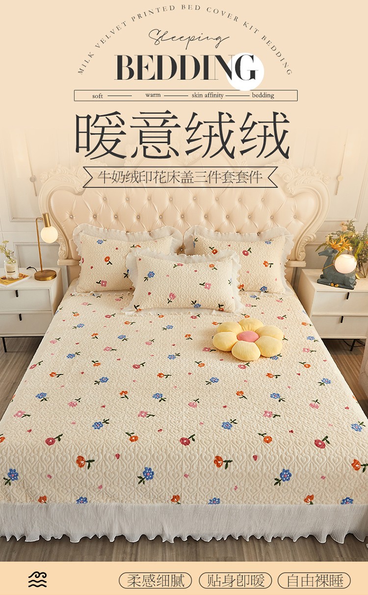 当前位置: 91家纺网 > 商品网购 > 床品套件 > 四件套 > 全棉普通四件套 > 宜凡 2022新款牛奶绒小清新床盖三四件套 小小碎花