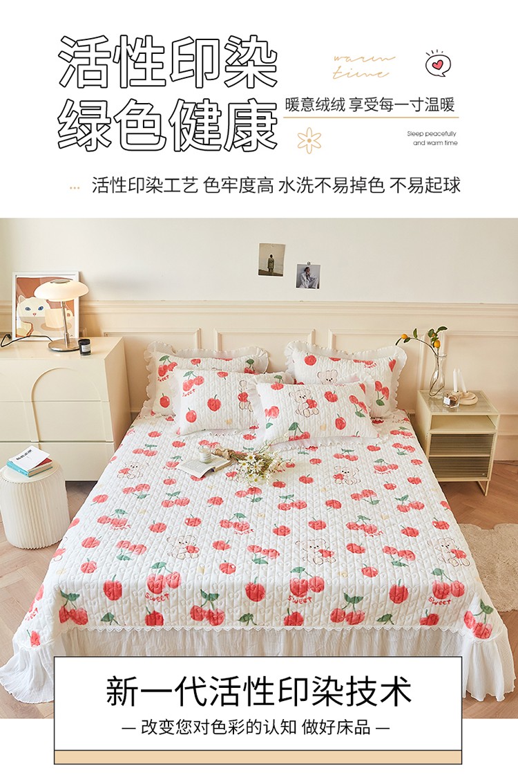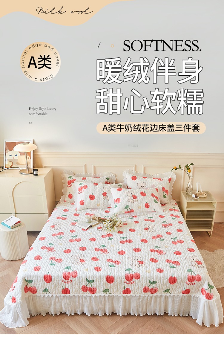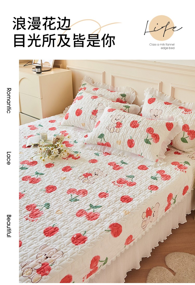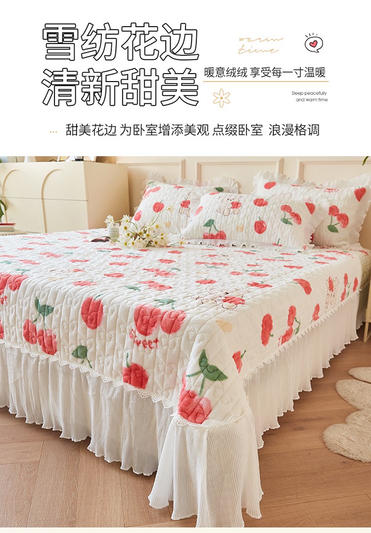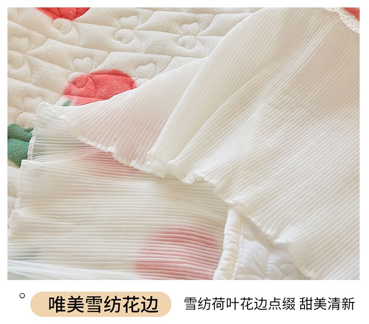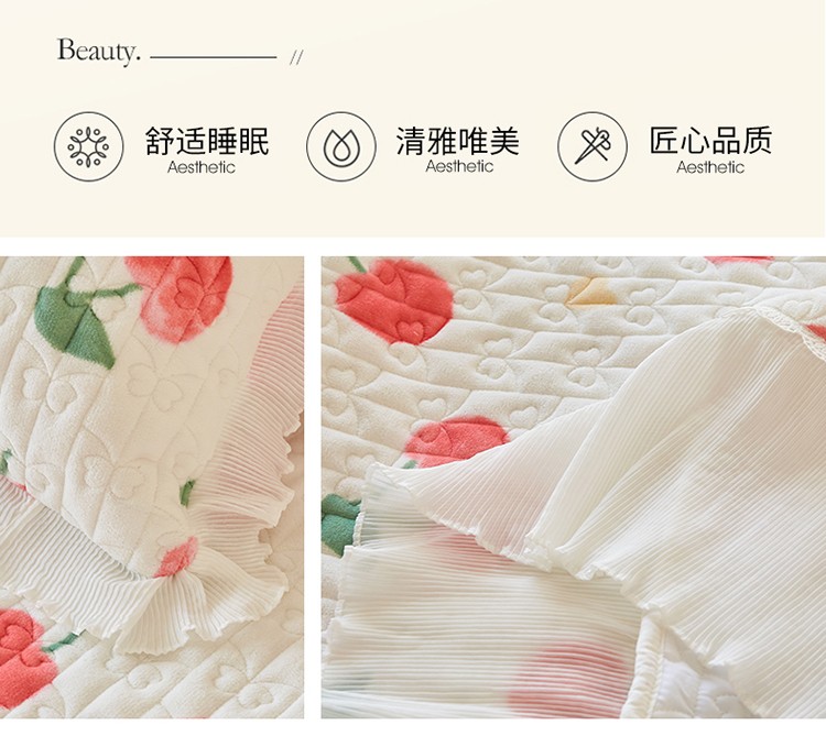 当前位置: 91家纺网 > 商品网购 > 床品套件 > 四件套 > 全棉普通四件套 > 宜凡2022秋冬新款A类牛奶绒印花花边床盖三四件套 甜甜蜜桃