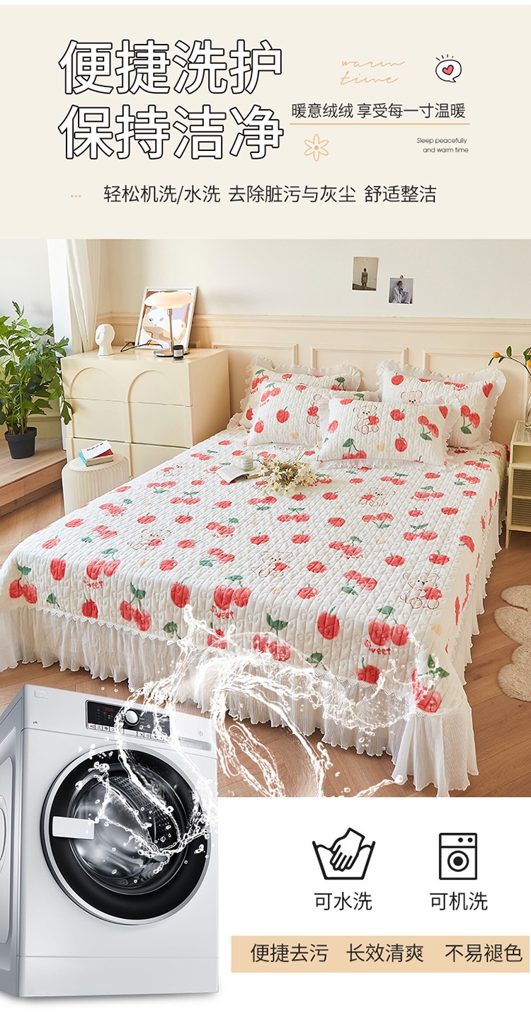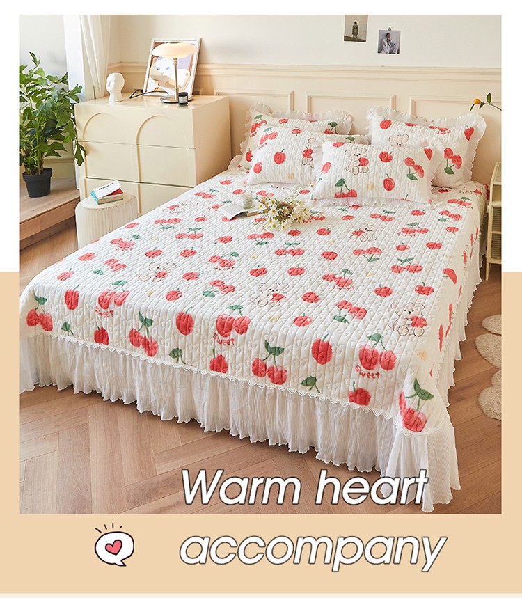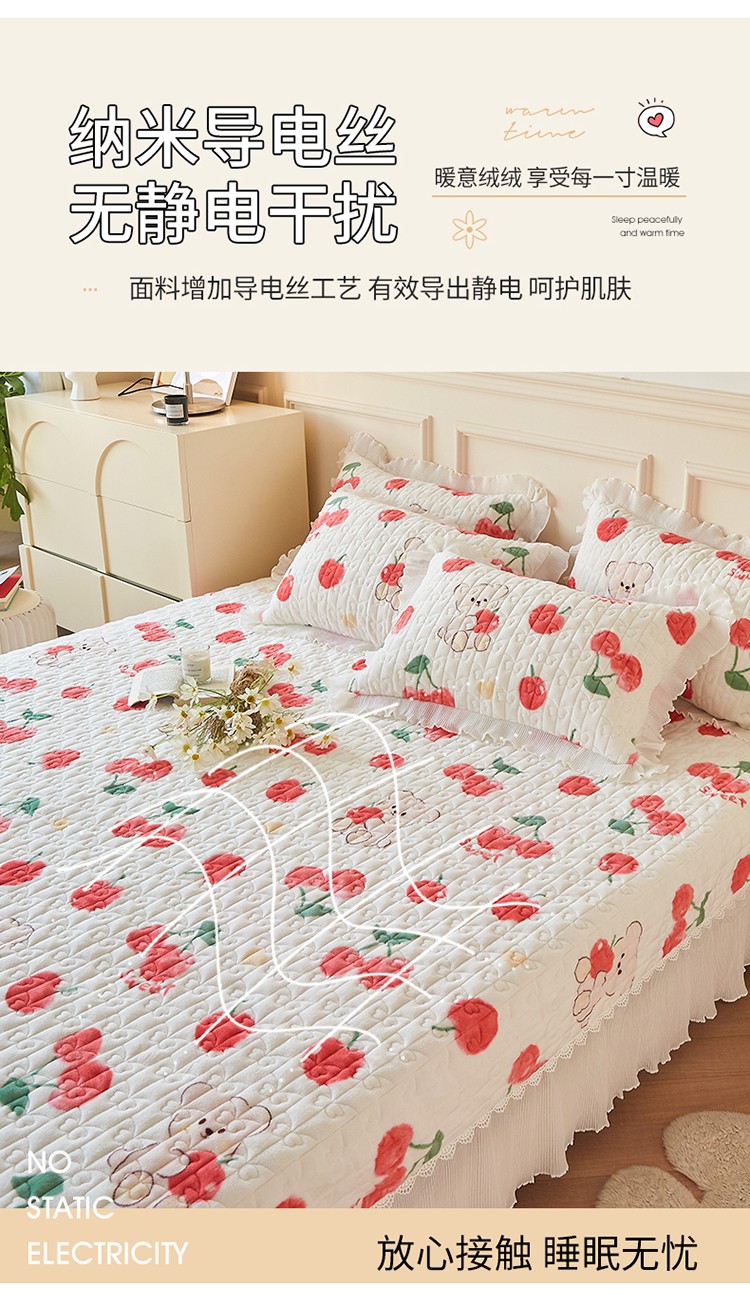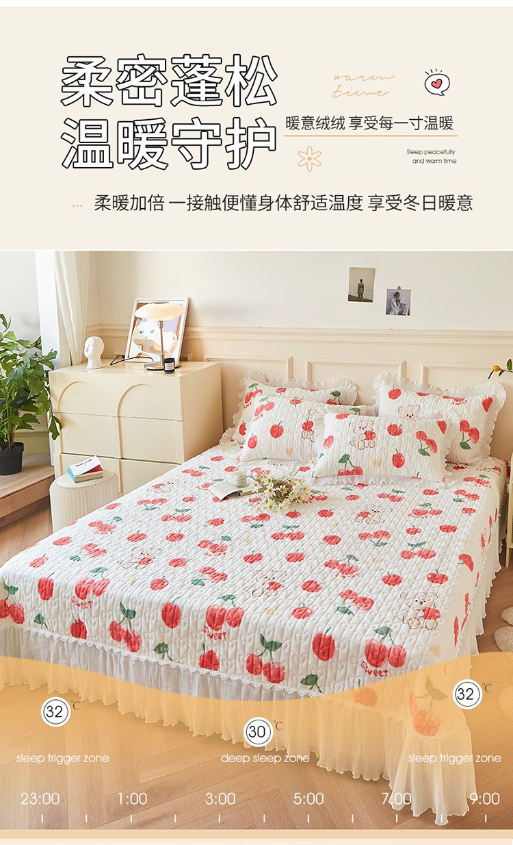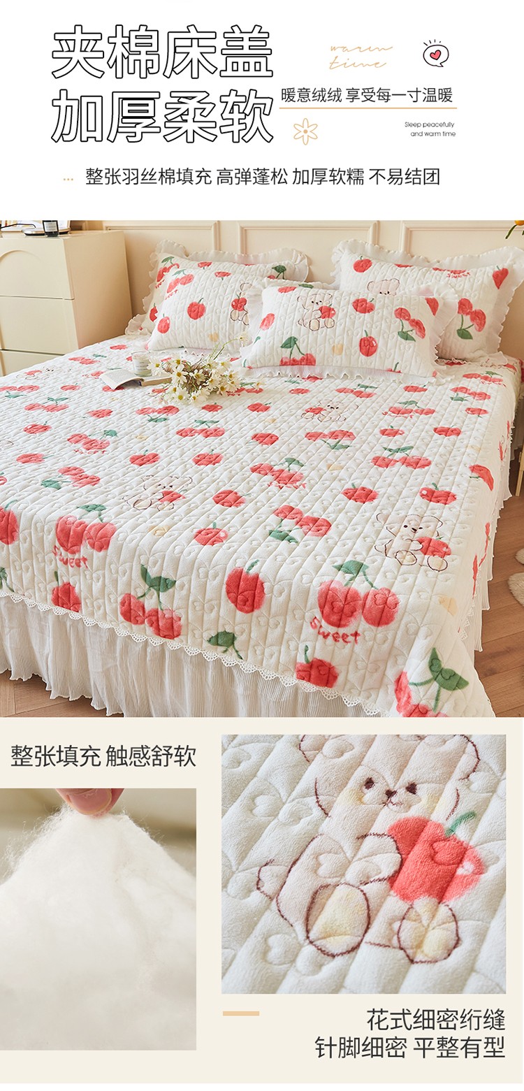 当前位置: 91家纺网 > 商品网购 > 床品套件 > 四件套 > 全棉普通四件套 > 宜凡2022秋冬新款A类牛奶绒印花花边床盖三四件套 甜甜蜜桃