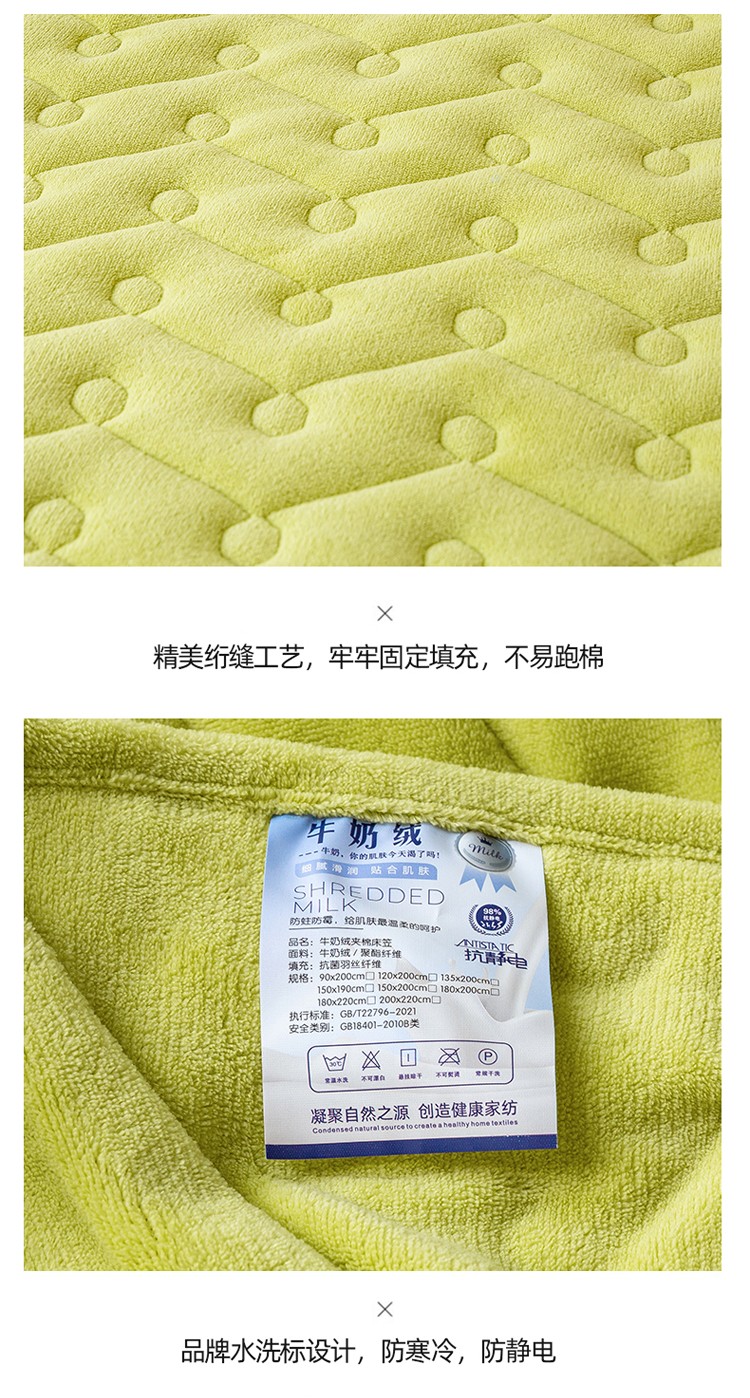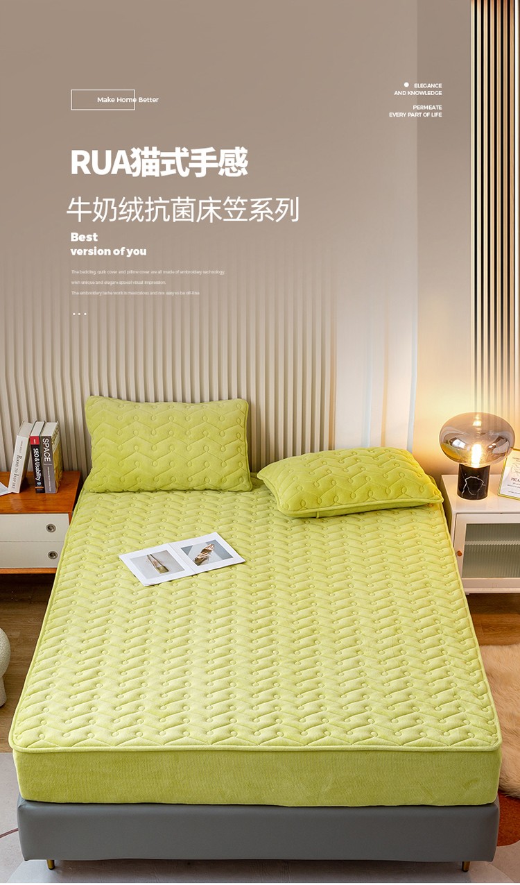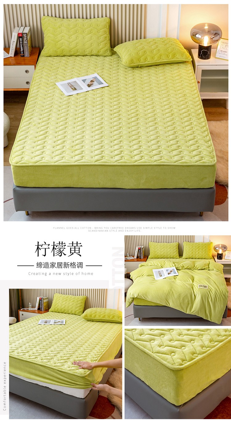 仟网汇 2022新款牛奶绒抗菌单品床笠系列 柠檬黄