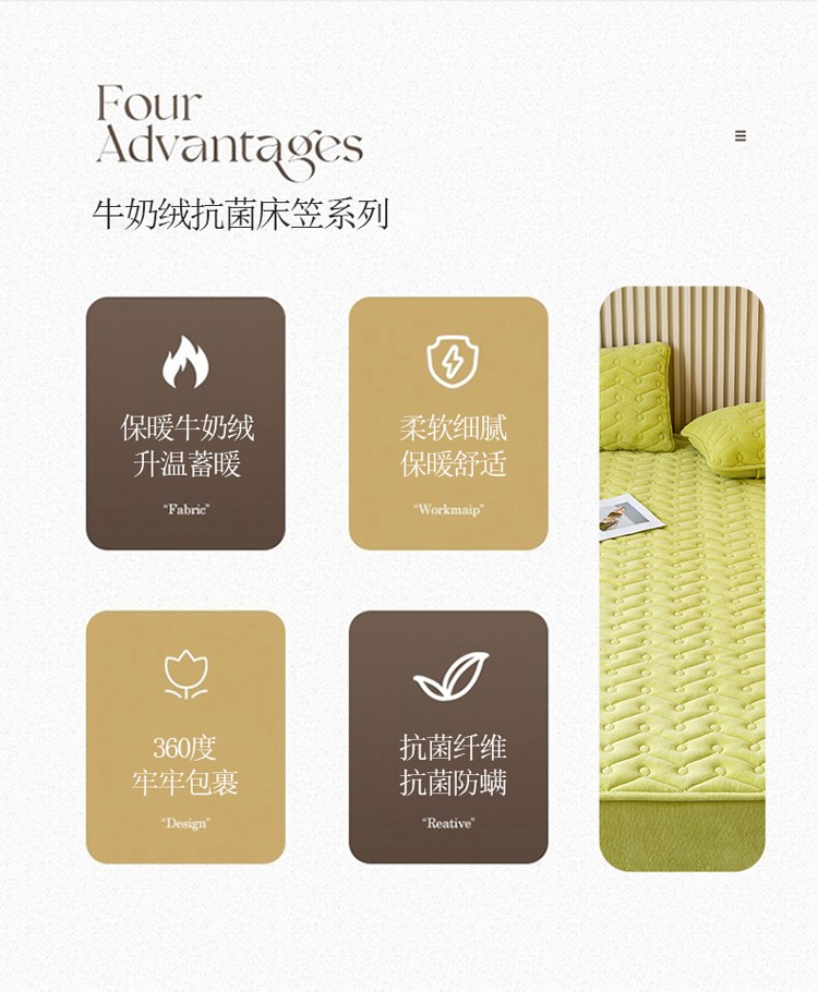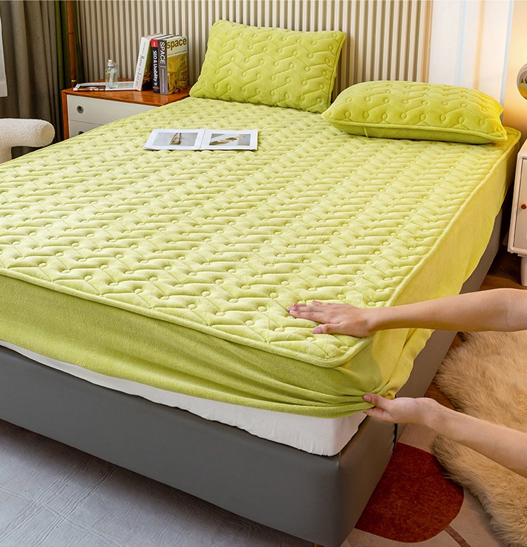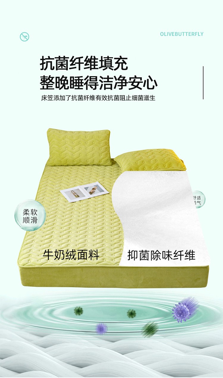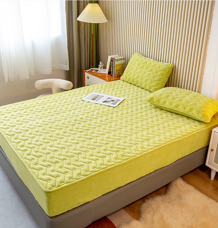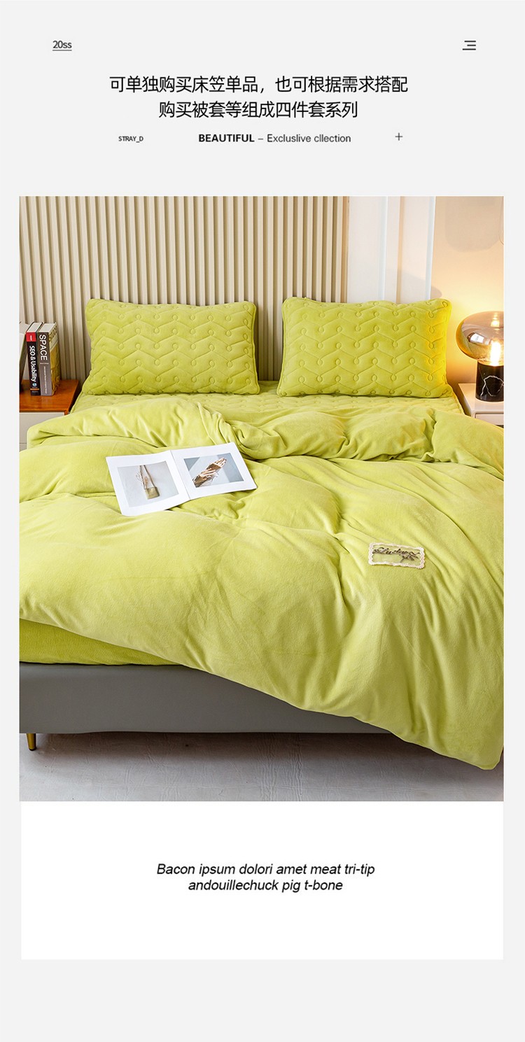 仟网汇 2022新款牛奶绒抗菌单品床笠系列 柠檬黄