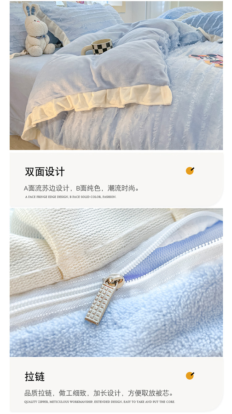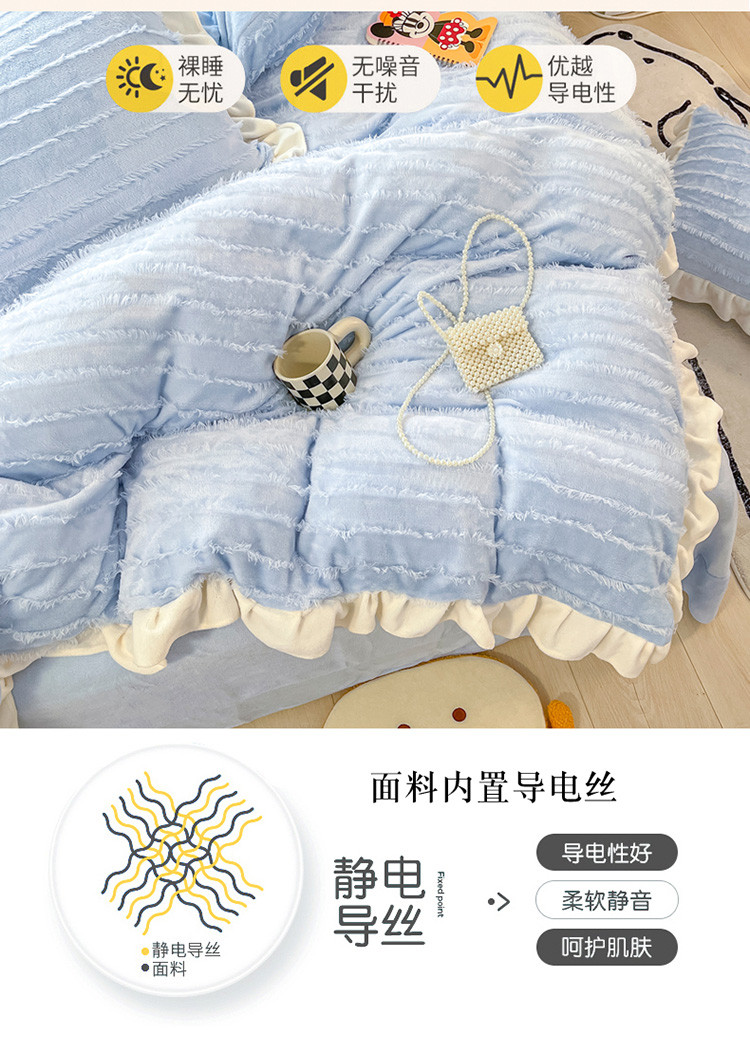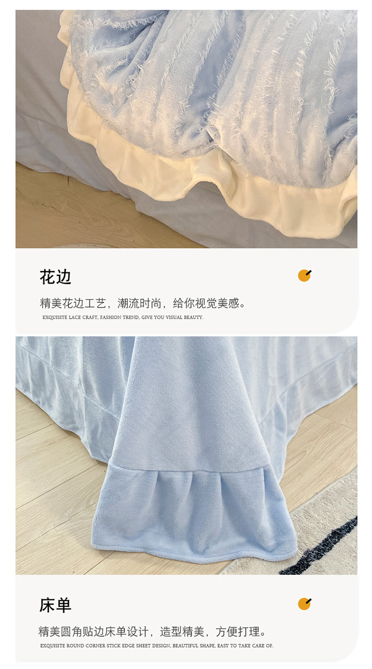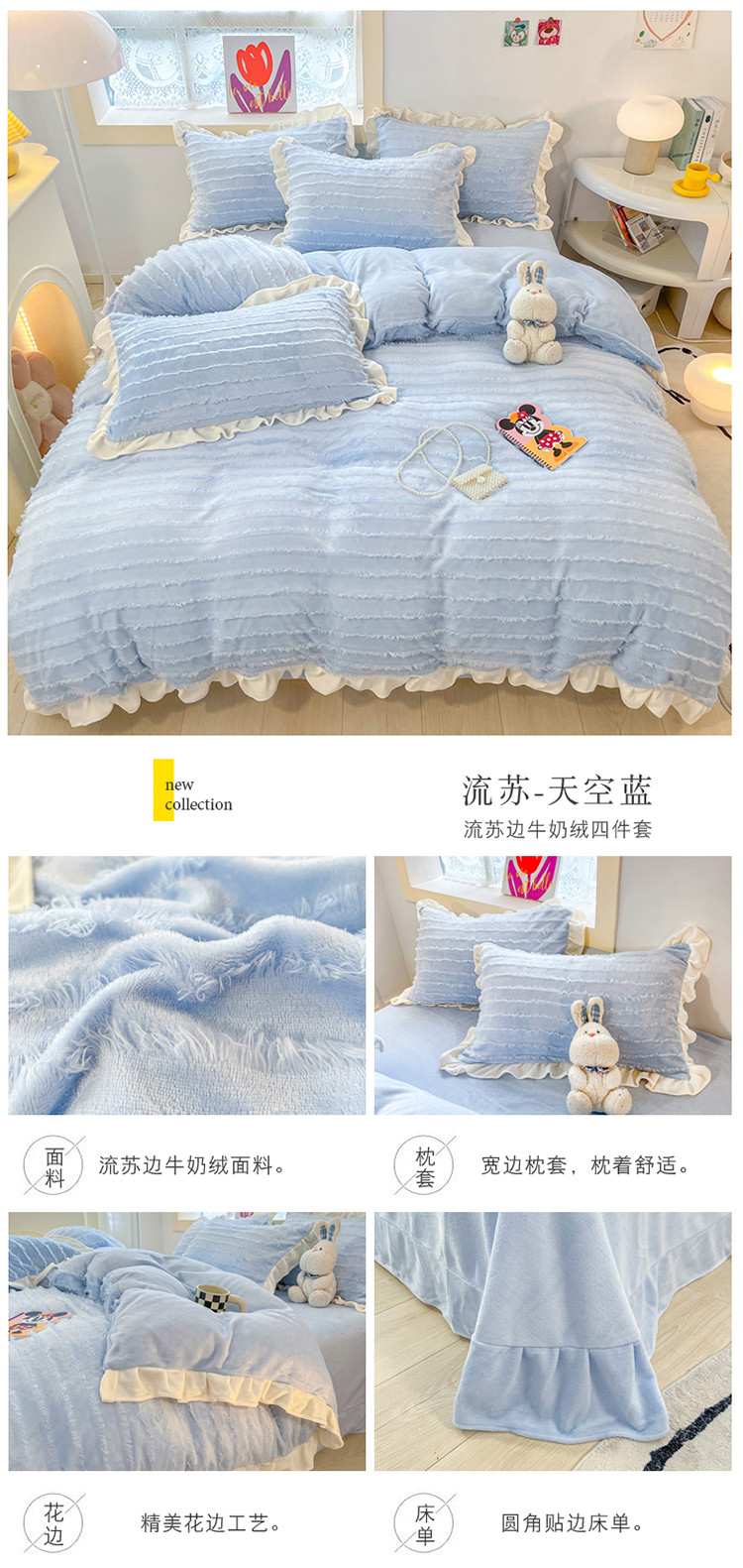 商品名称:金爱家 2023新款流苏牛奶绒四件套 流苏-天空蓝