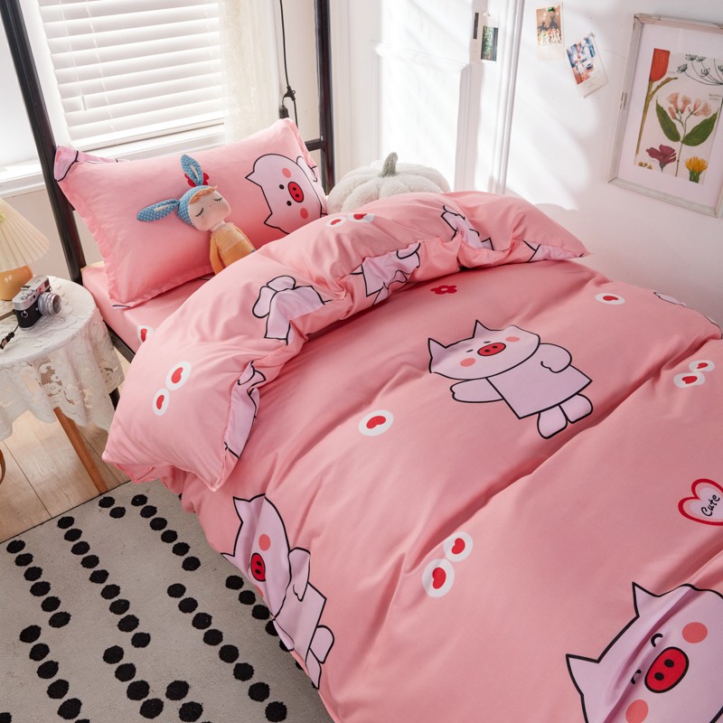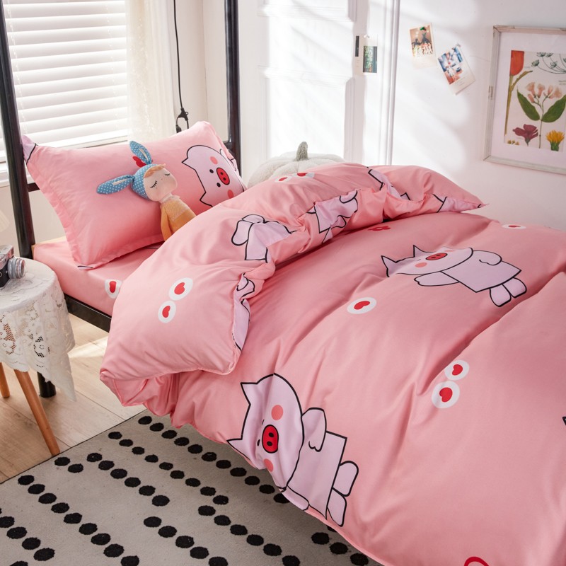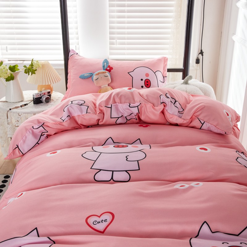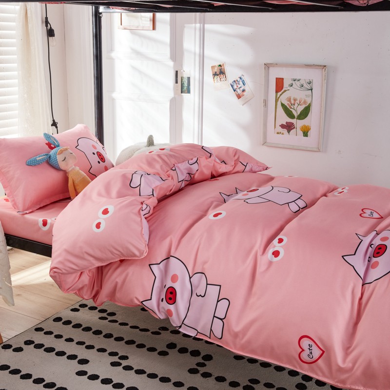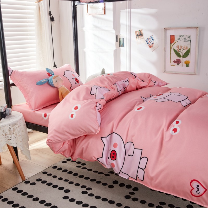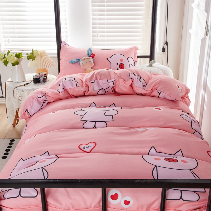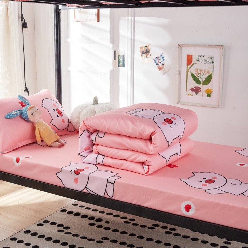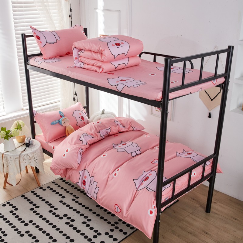 乐居坊 2022新款芦荟棉上下铺学生床三件套四件套 粉粉猪