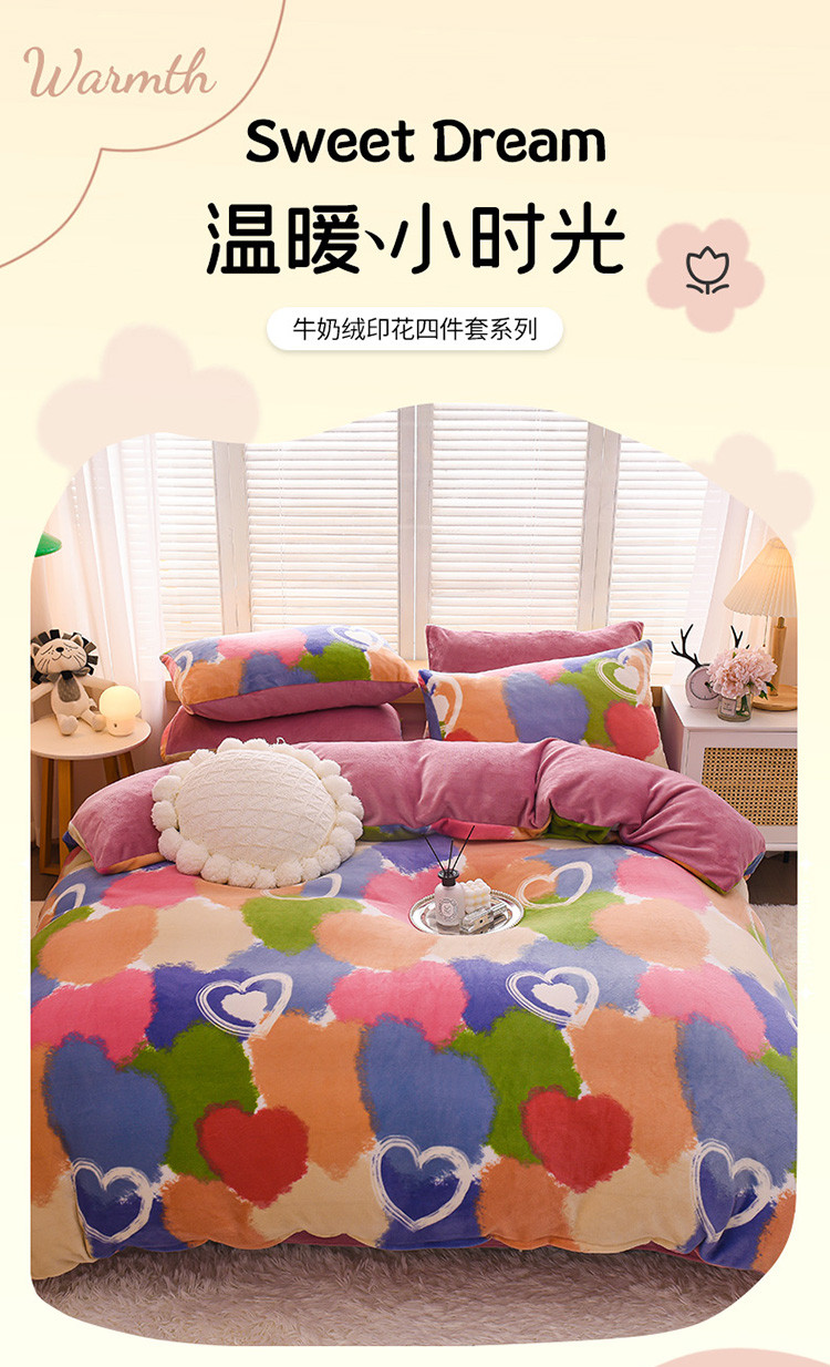 芃成 2022新款加厚双面牛奶绒印花床品系列-四件套 韵彩