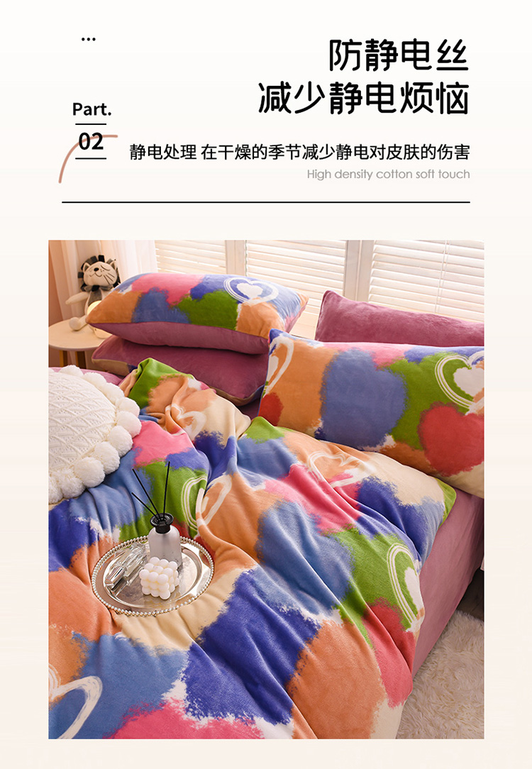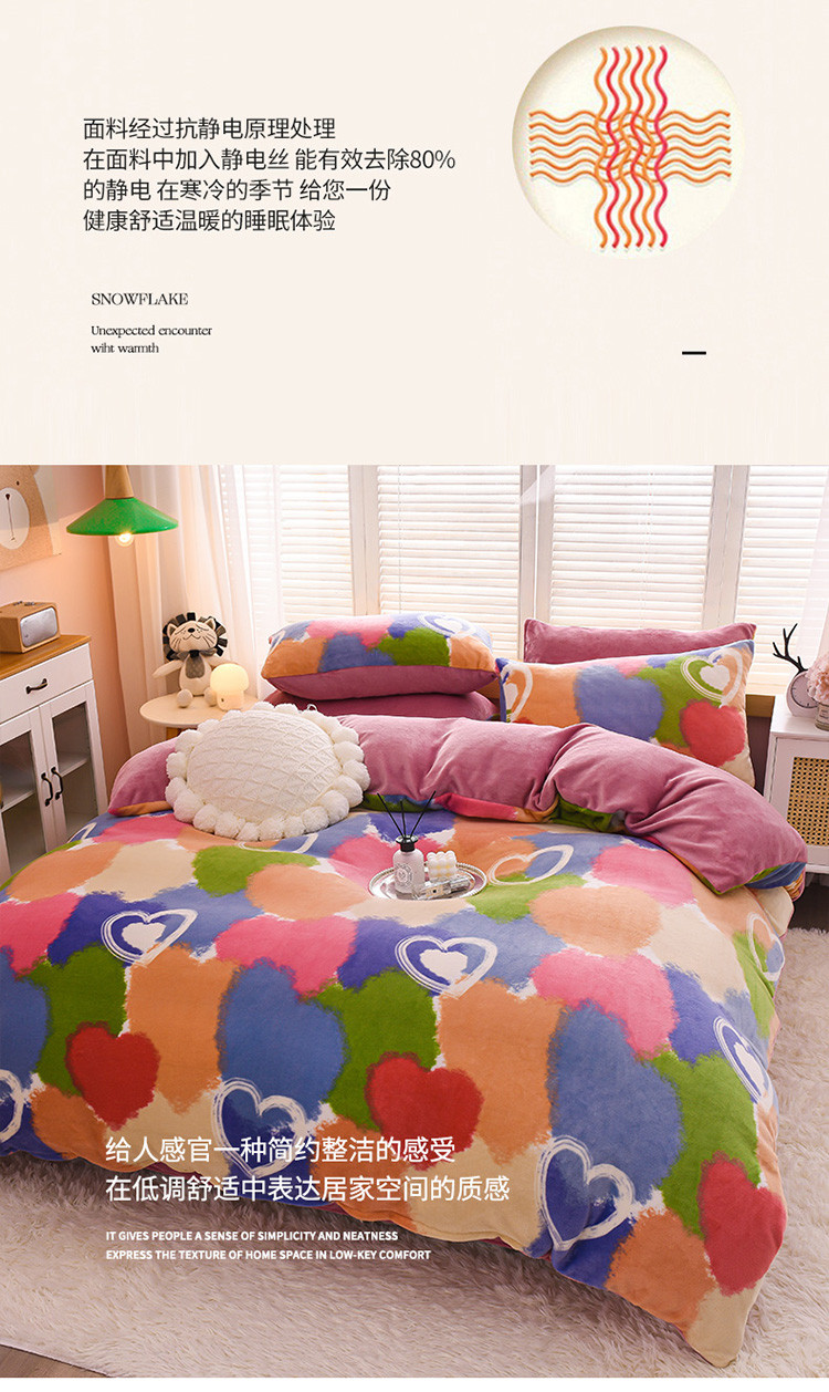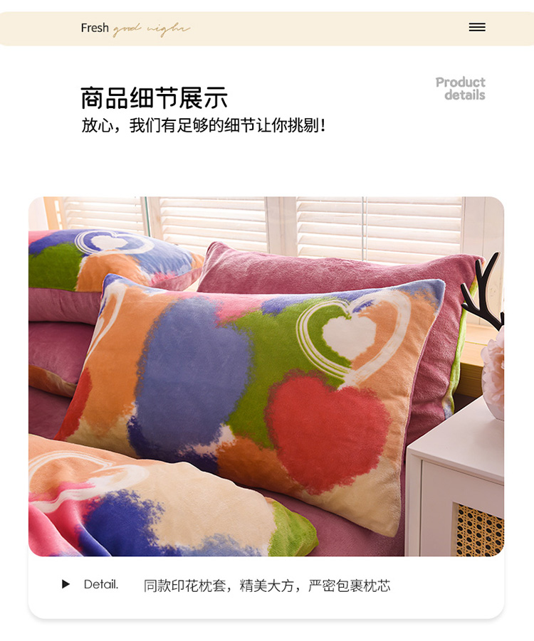 商品名称:芃成 2022新款加厚双面牛奶绒印花床品系列-四件套 韵彩