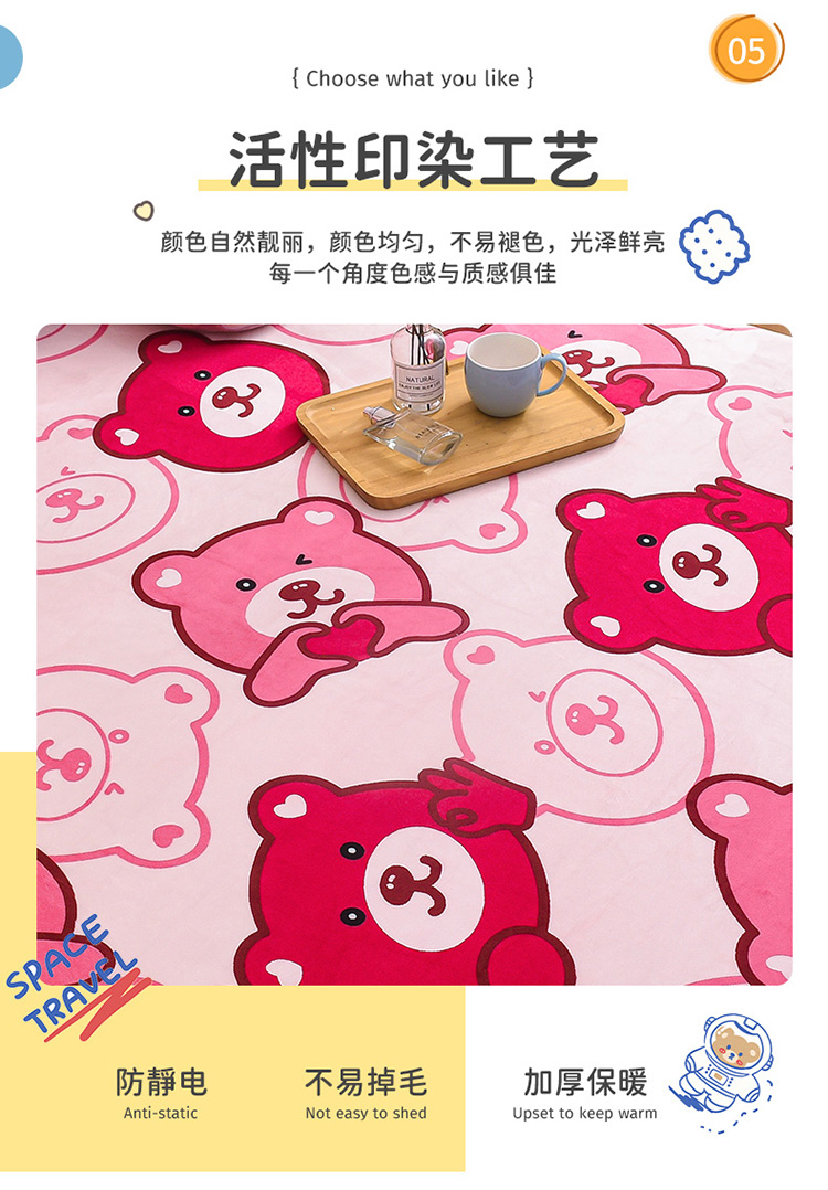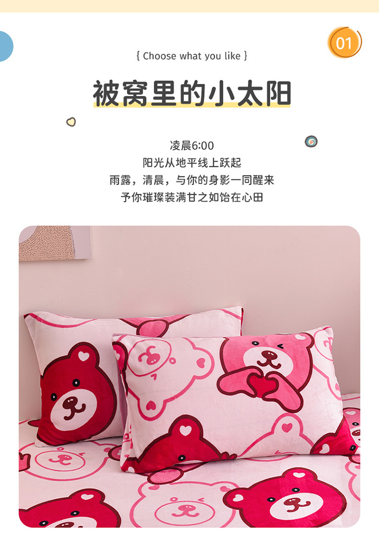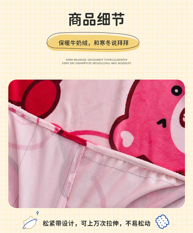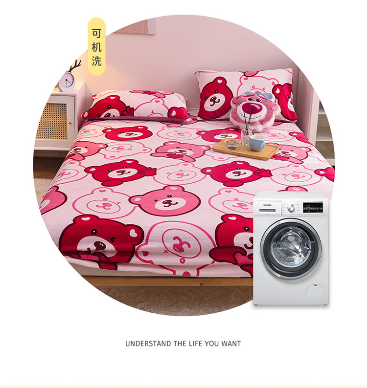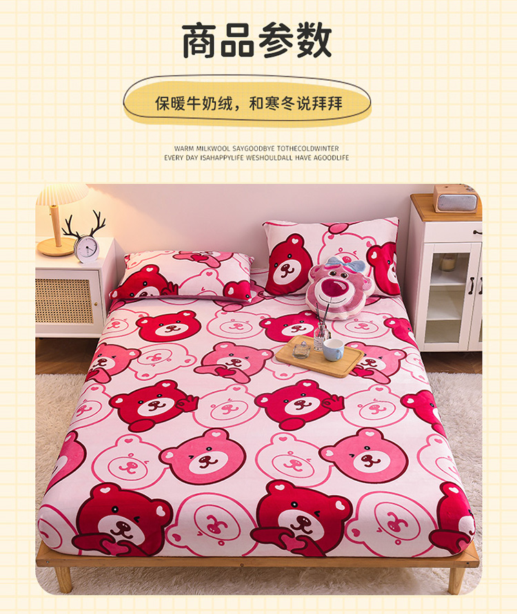 • 91家纺网 家纺一手货源 找家纺 芃成 2022新款加厚双面牛奶绒印花床品系列-单床笠 酷酷熊
