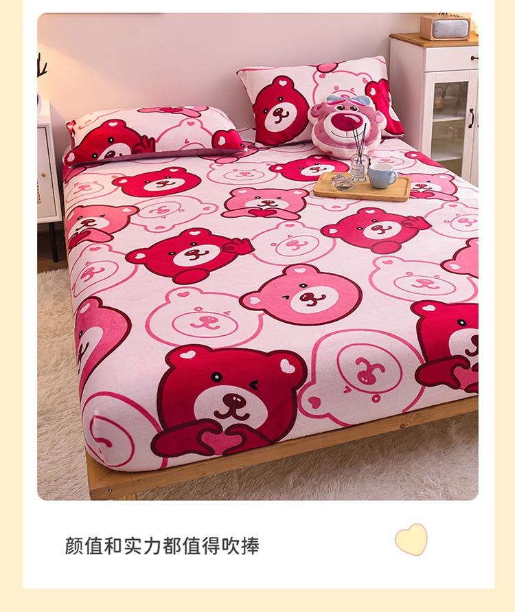 芃成 2022新款加厚双面牛奶绒印花床品系列-单床笠 酷酷熊